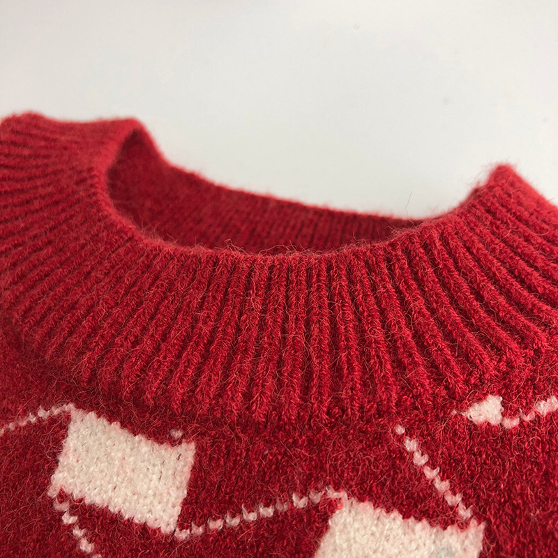 KY136TG-秋冬聖誕節韓版兒童針織印花格拜年背心上衣+短褲套