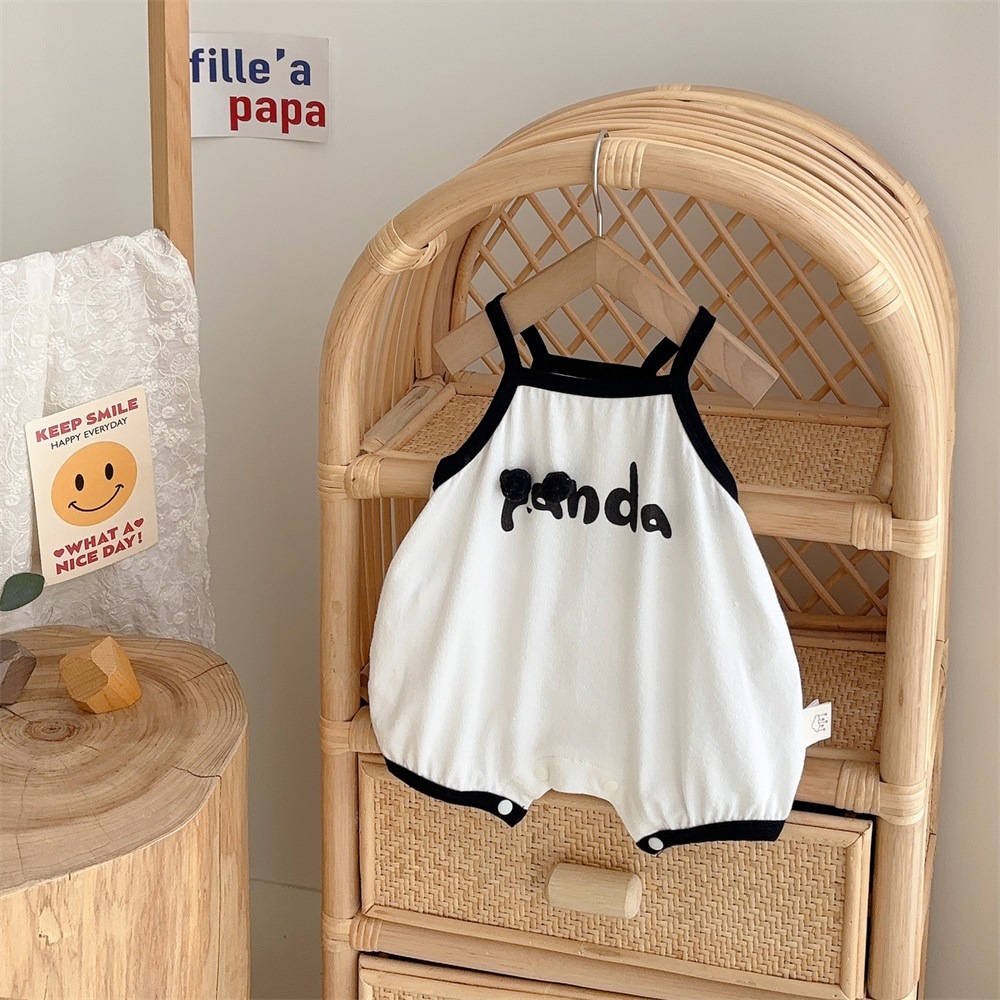 M2402724LS-夏季薄款無袖可愛卡通熊貓吊帶短爬服