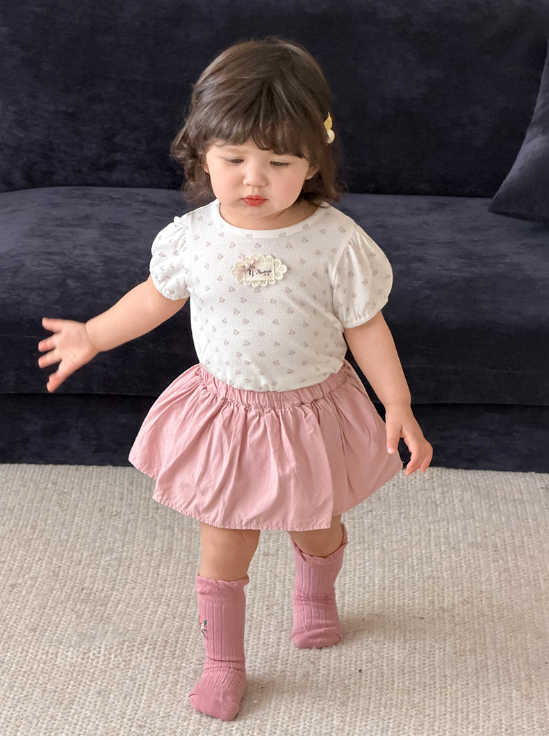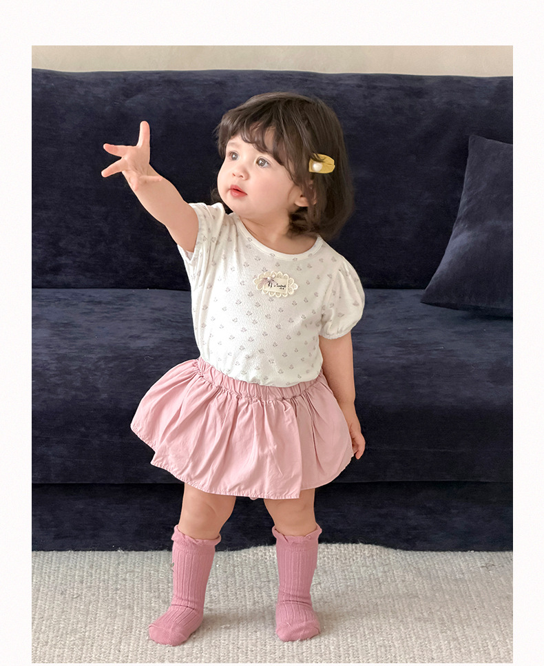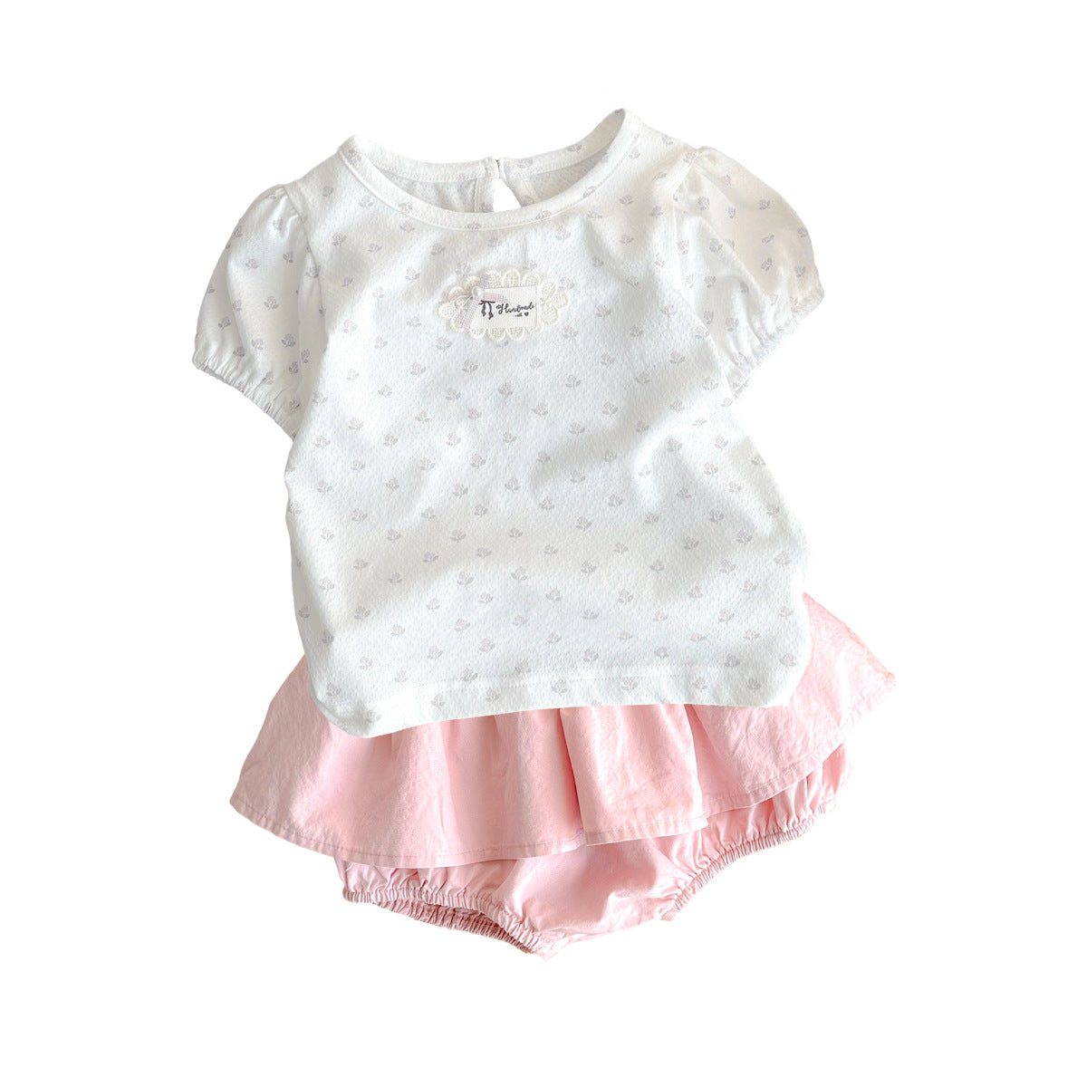 碎花泡泡袖+短褲 / 80cm