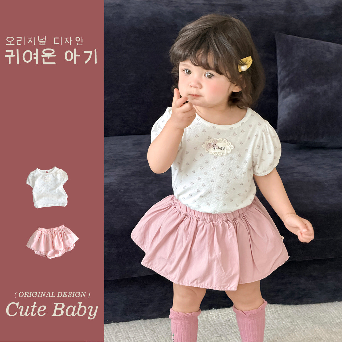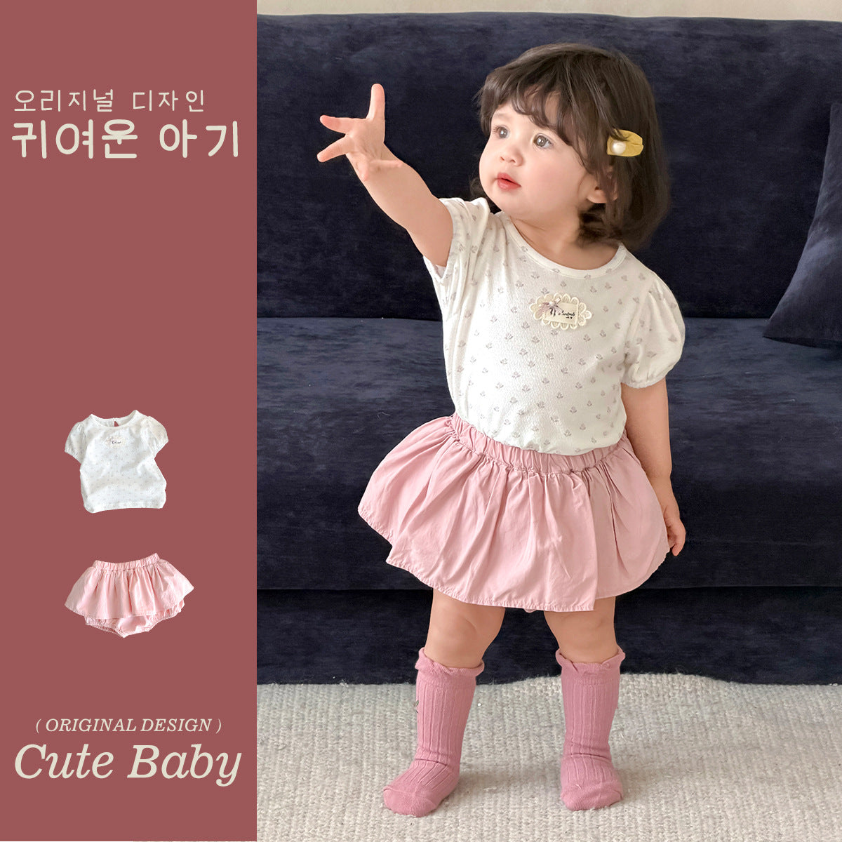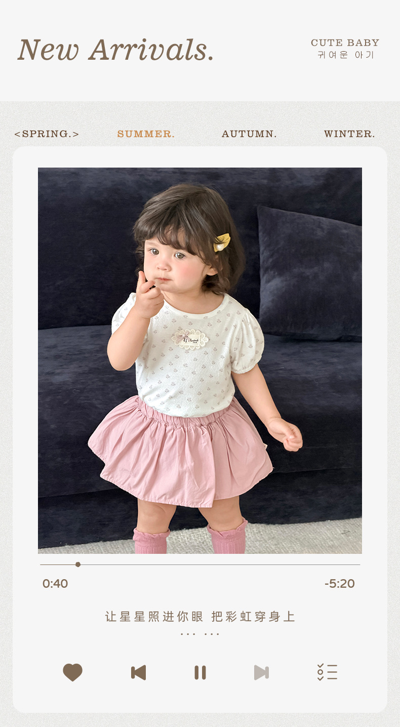碎花泡泡袖+短褲 / 80cm