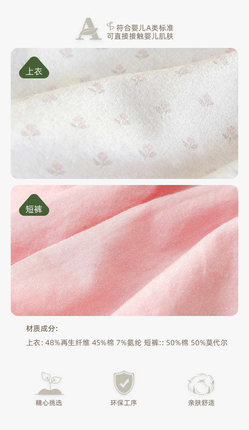 碎花泡泡袖+短褲 / 100cm