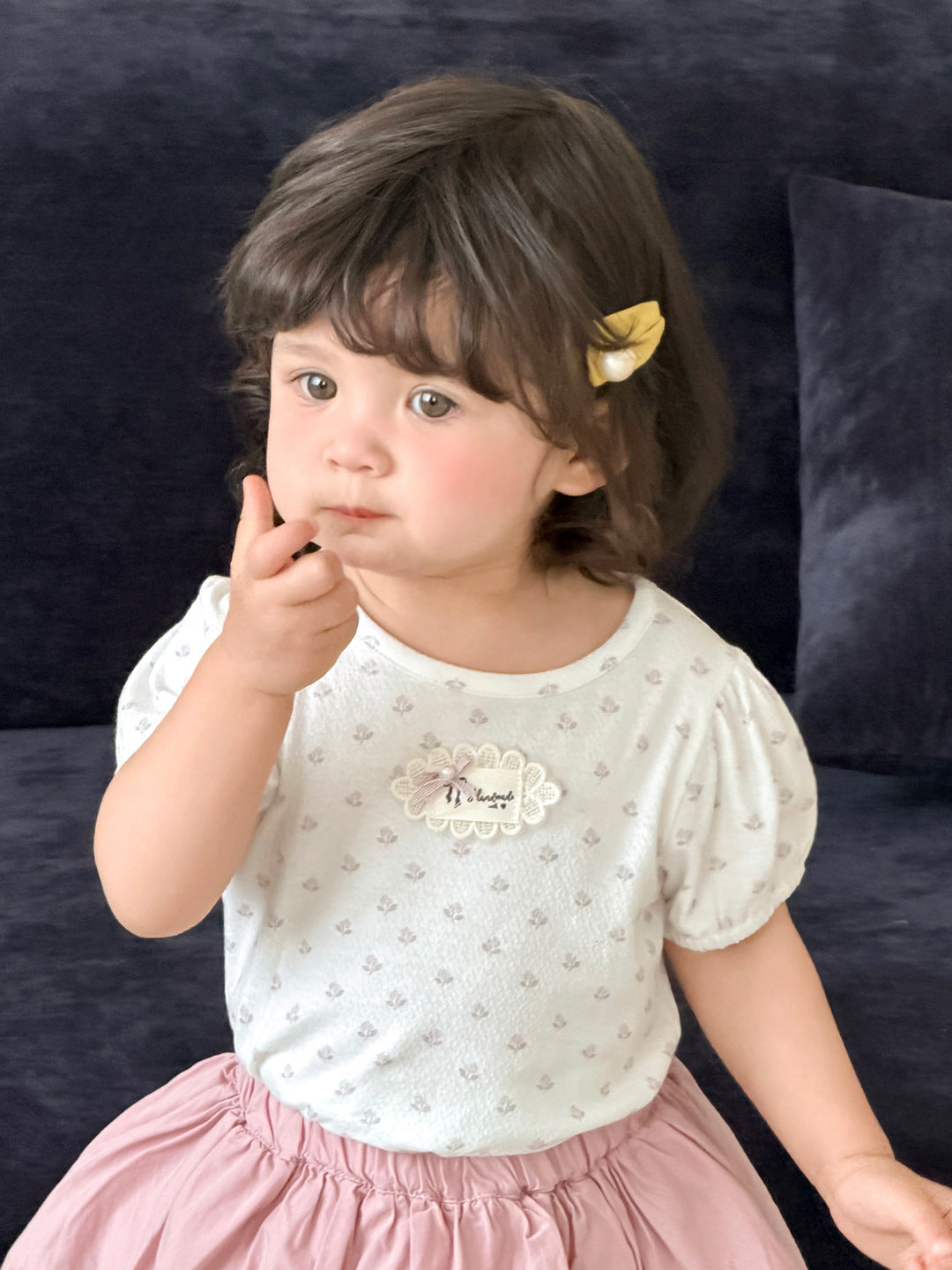 碎花泡泡袖+短褲 / 90cm