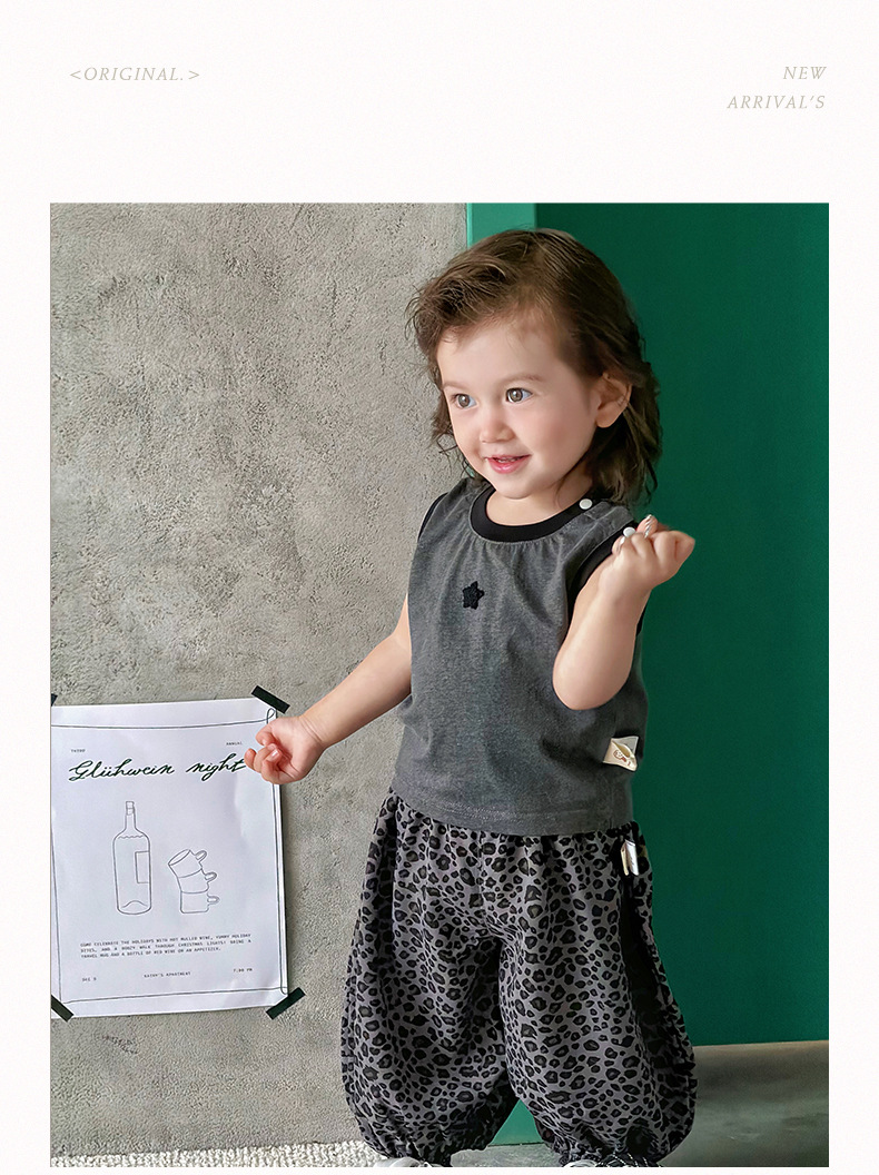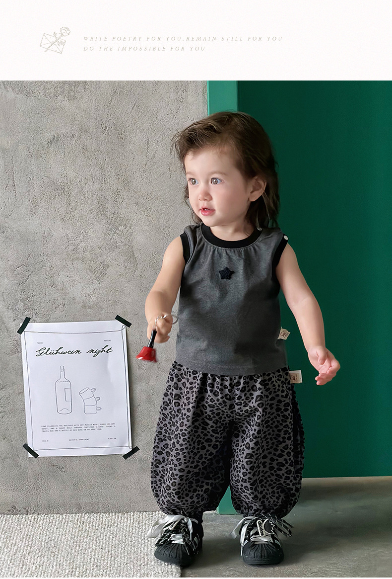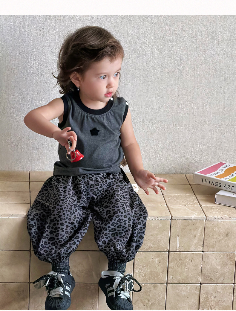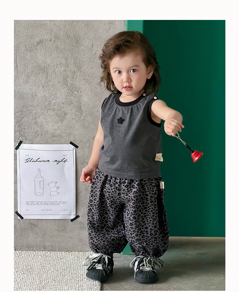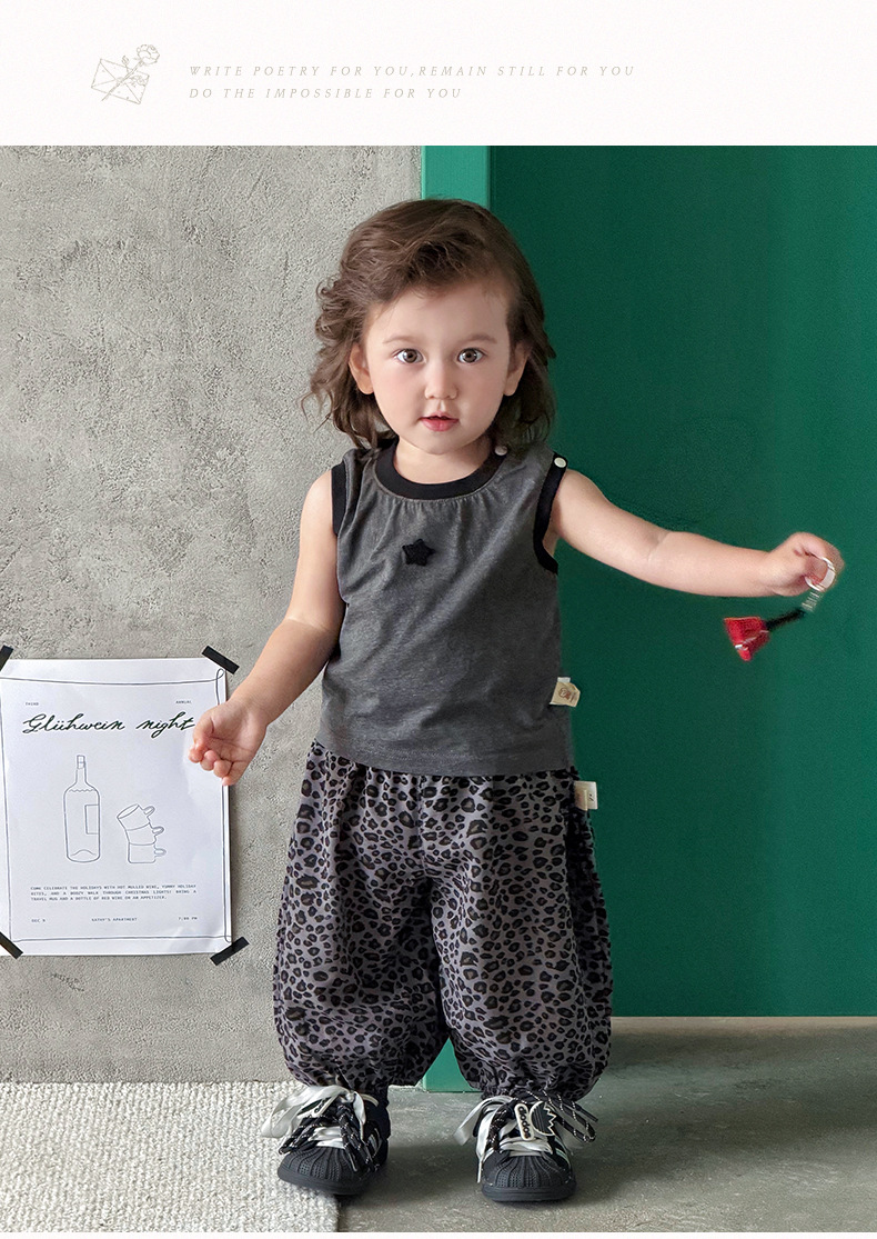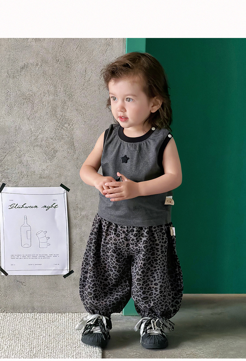 星星撞色背心+豹紋休閒褲 / 90cm