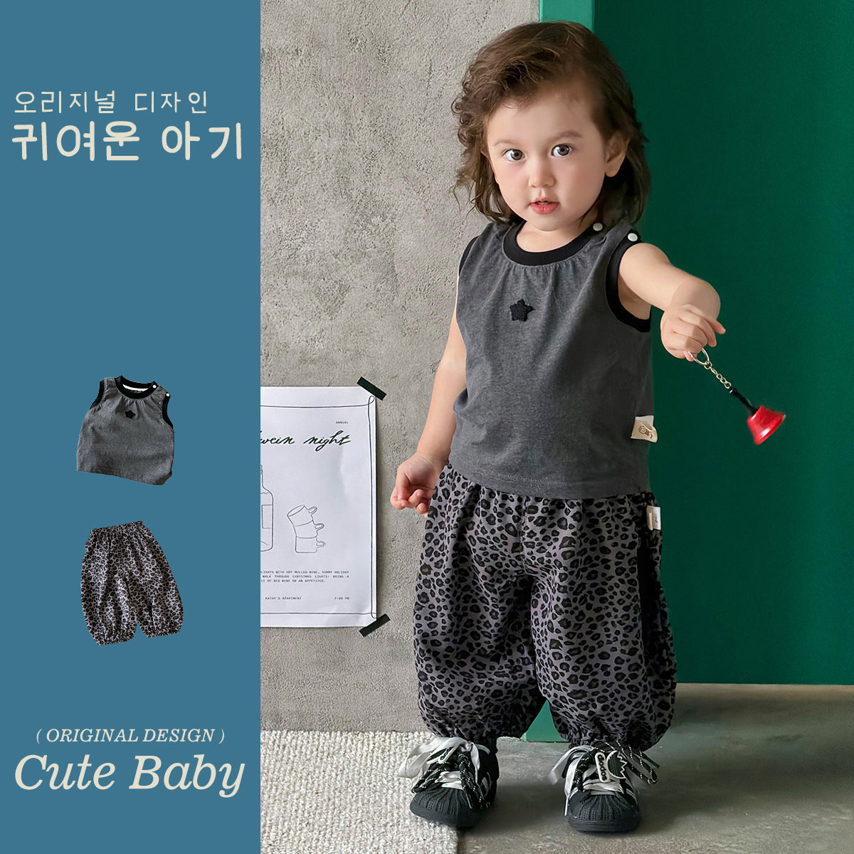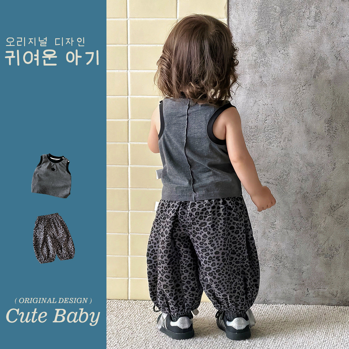 星星撞色背心+豹紋休閒褲 / 73CM