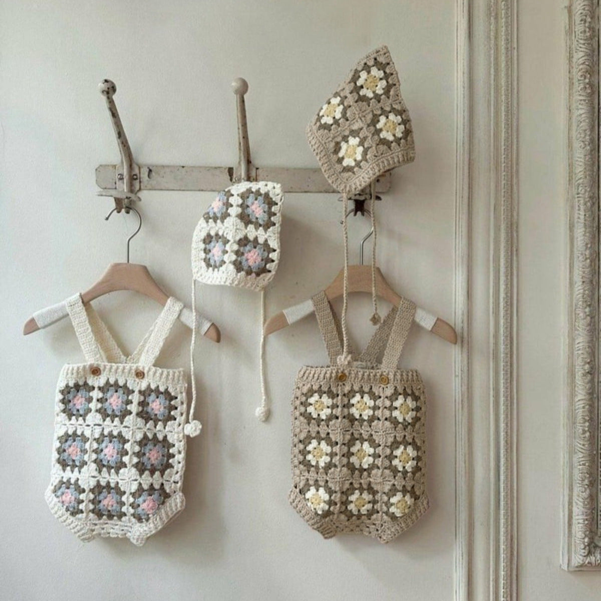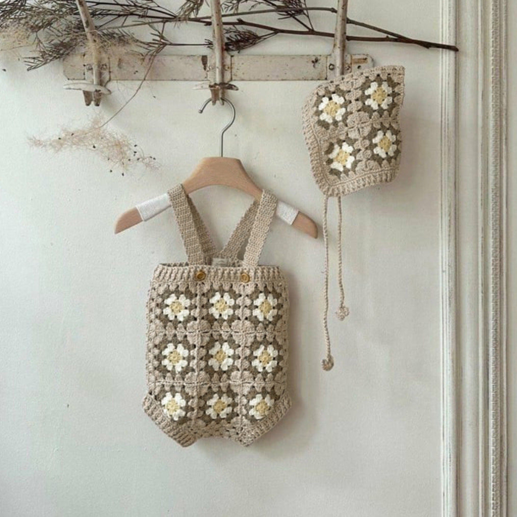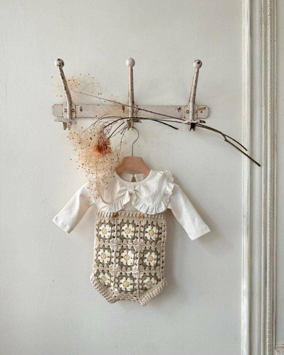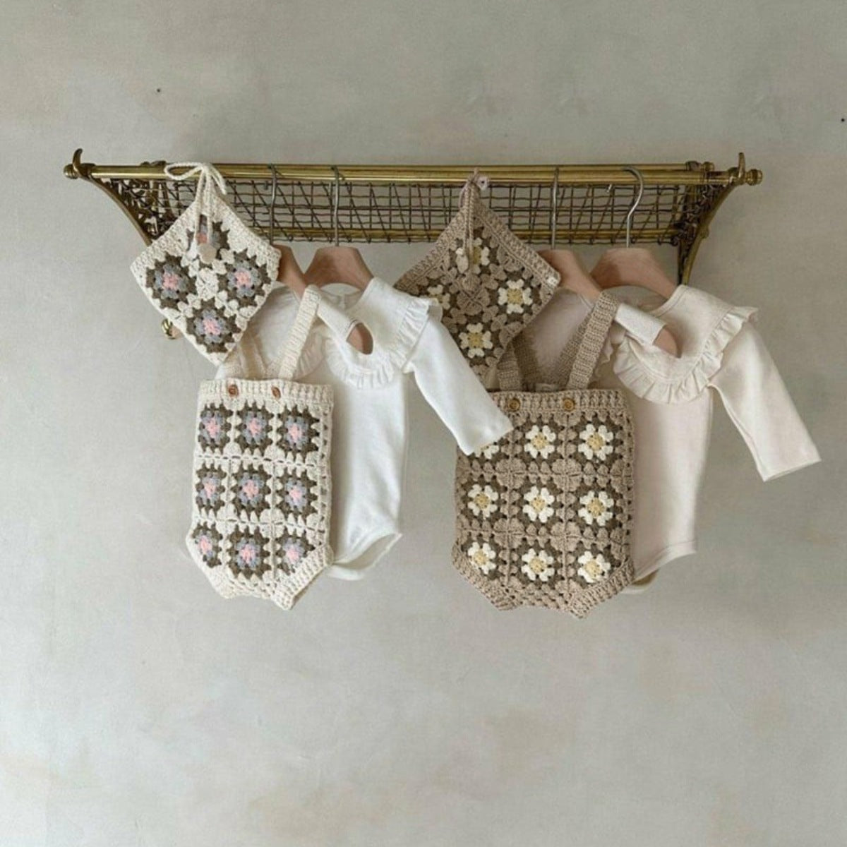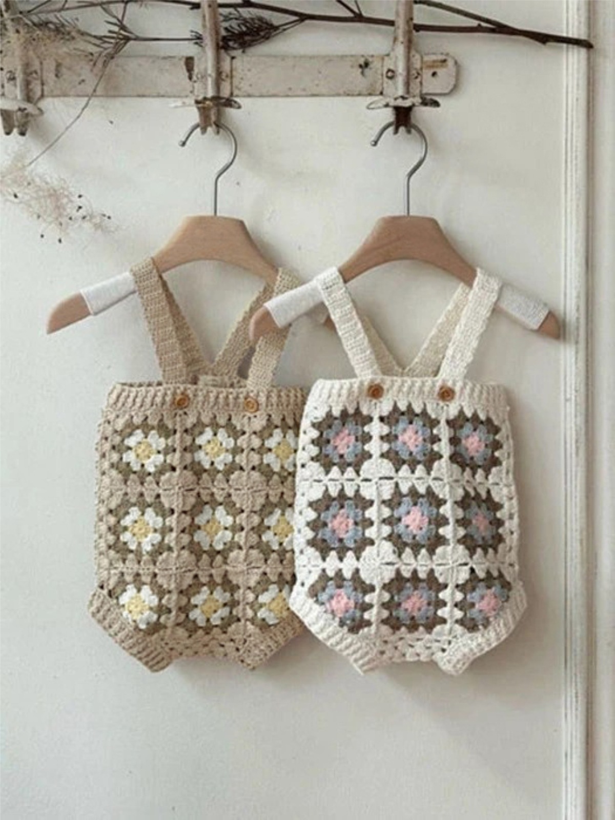MY9514LS-秋冬季韓版嬰兒復古手工勾花針織背心連身褲兩件套