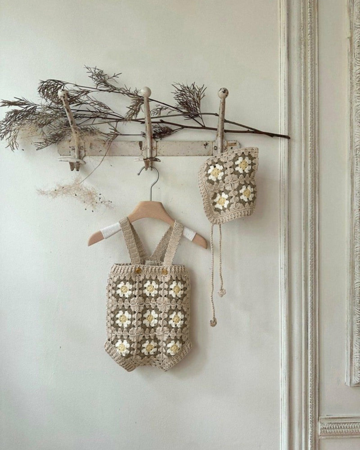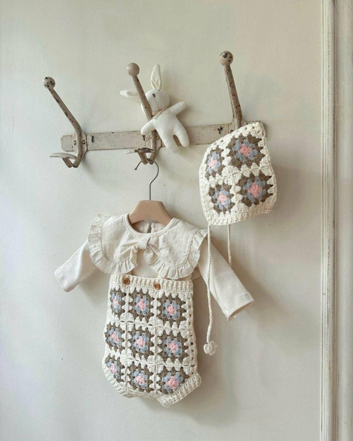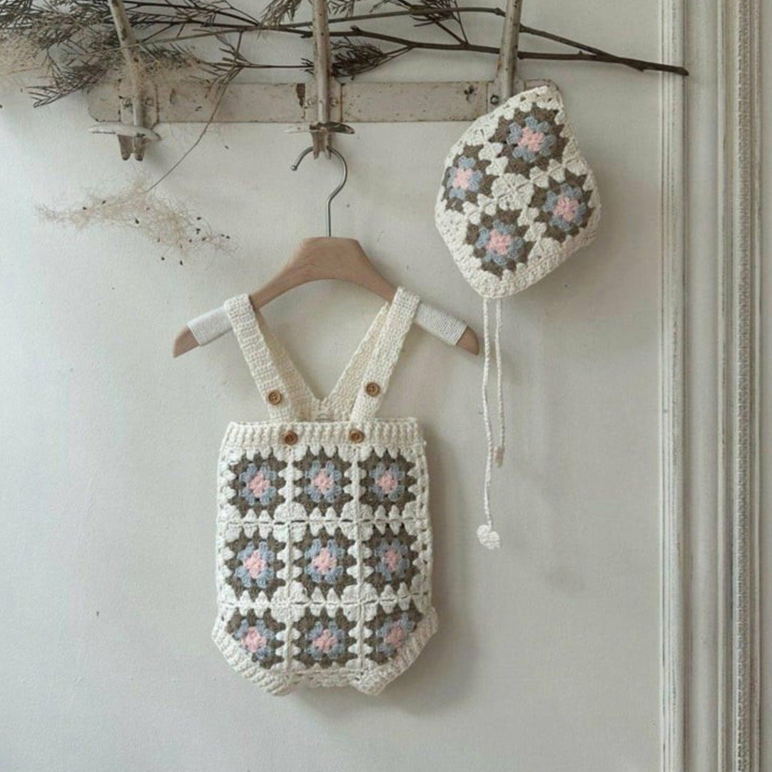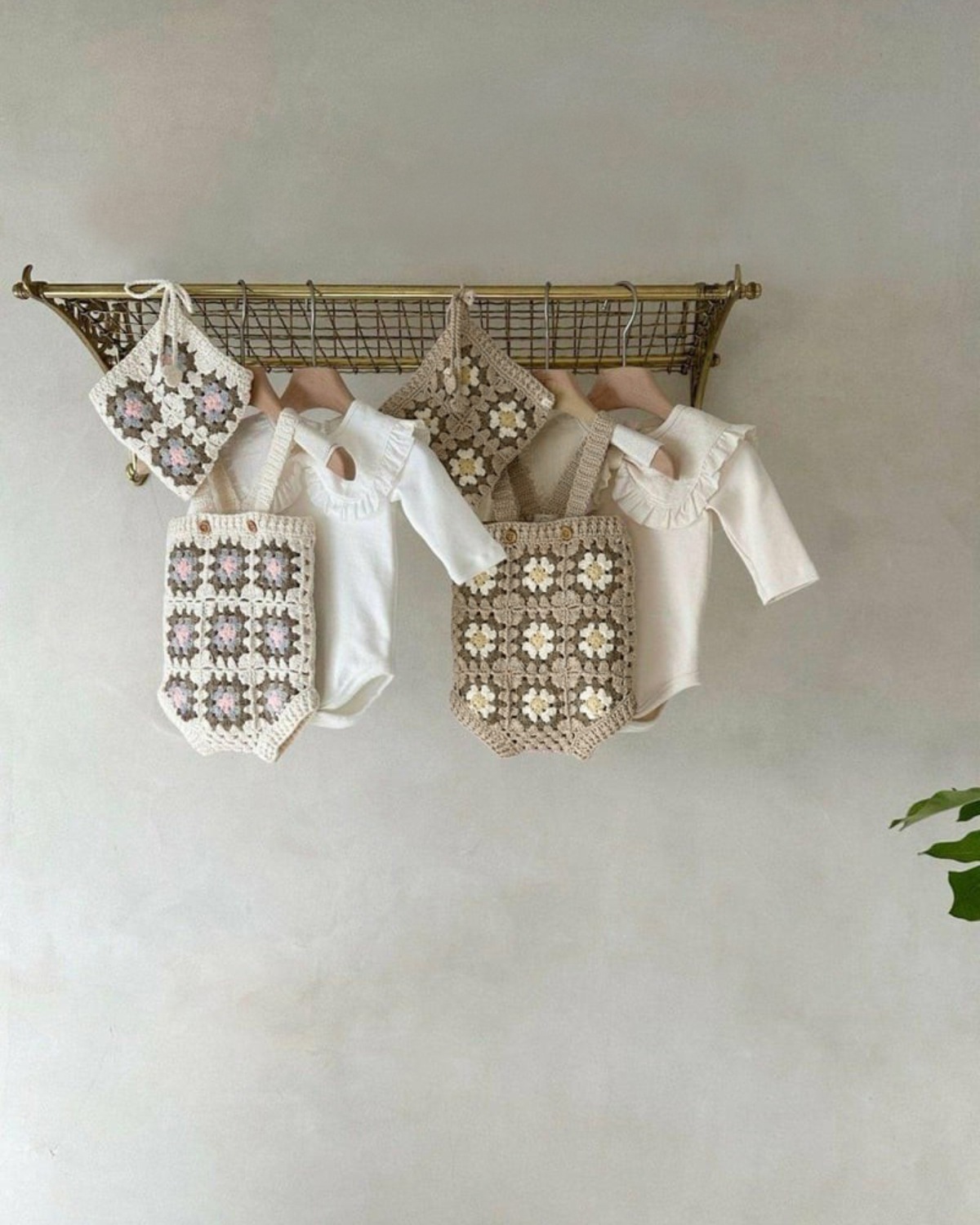 MY9514LS-秋冬季韓版嬰兒復古手工勾花針織背心連身褲兩件套