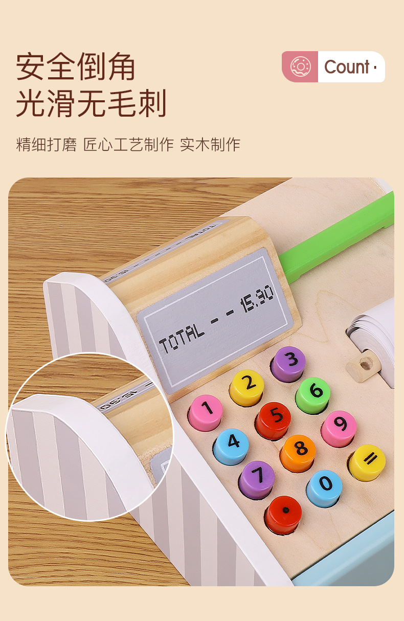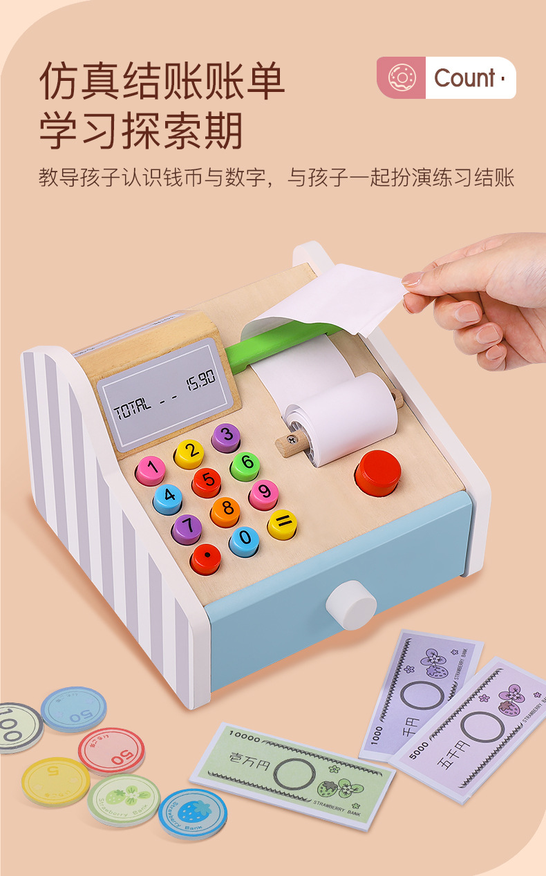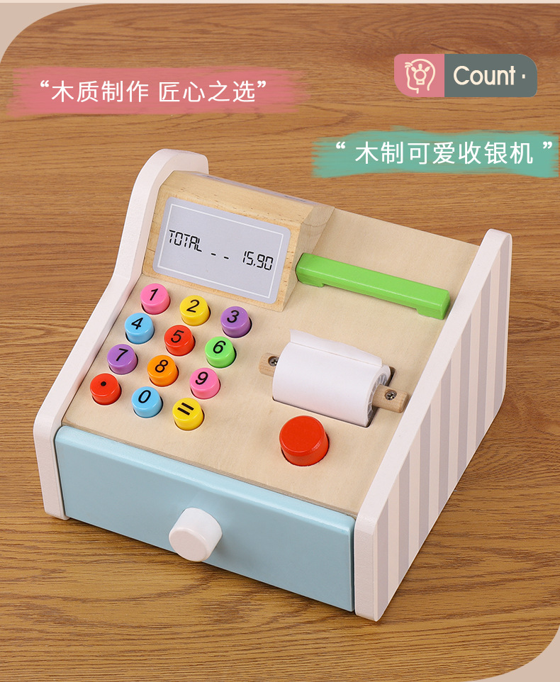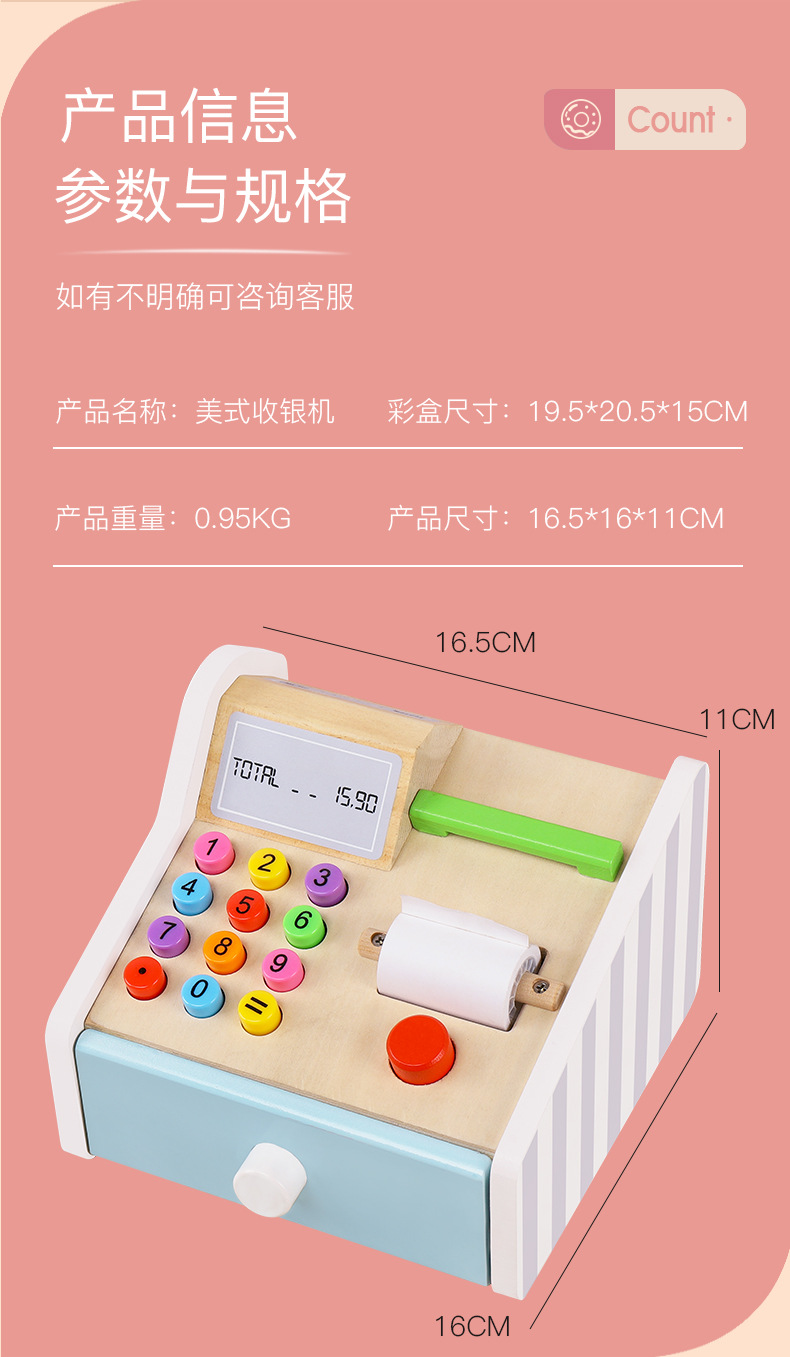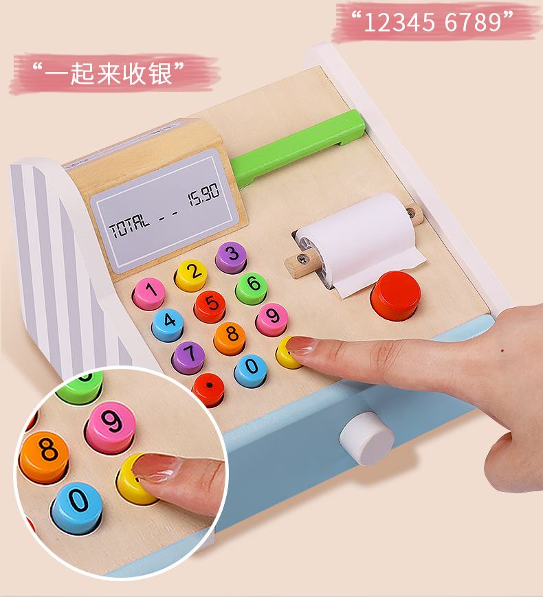 QY281AC-木製益智認知數字仿真美式收銀機玩具