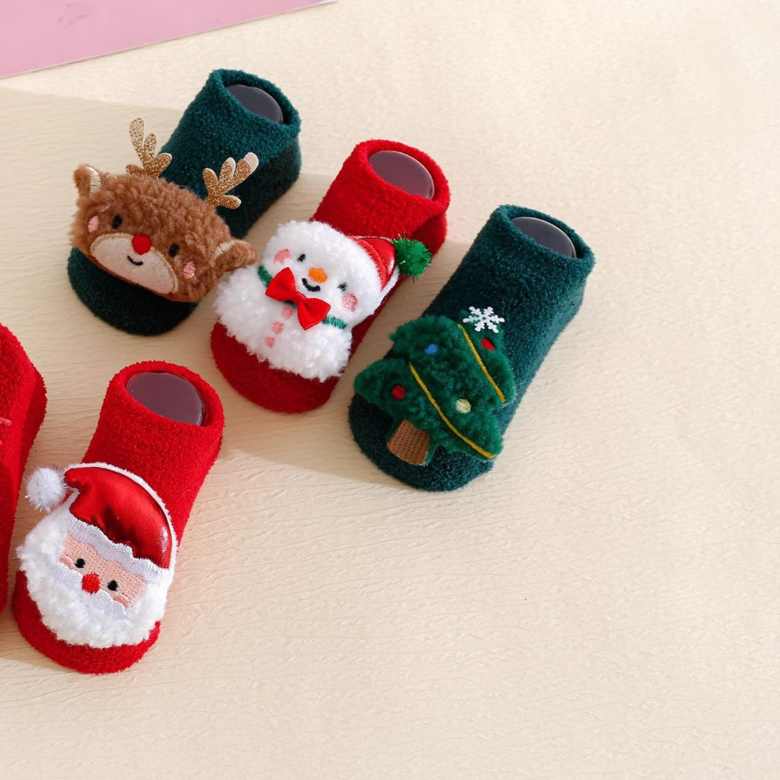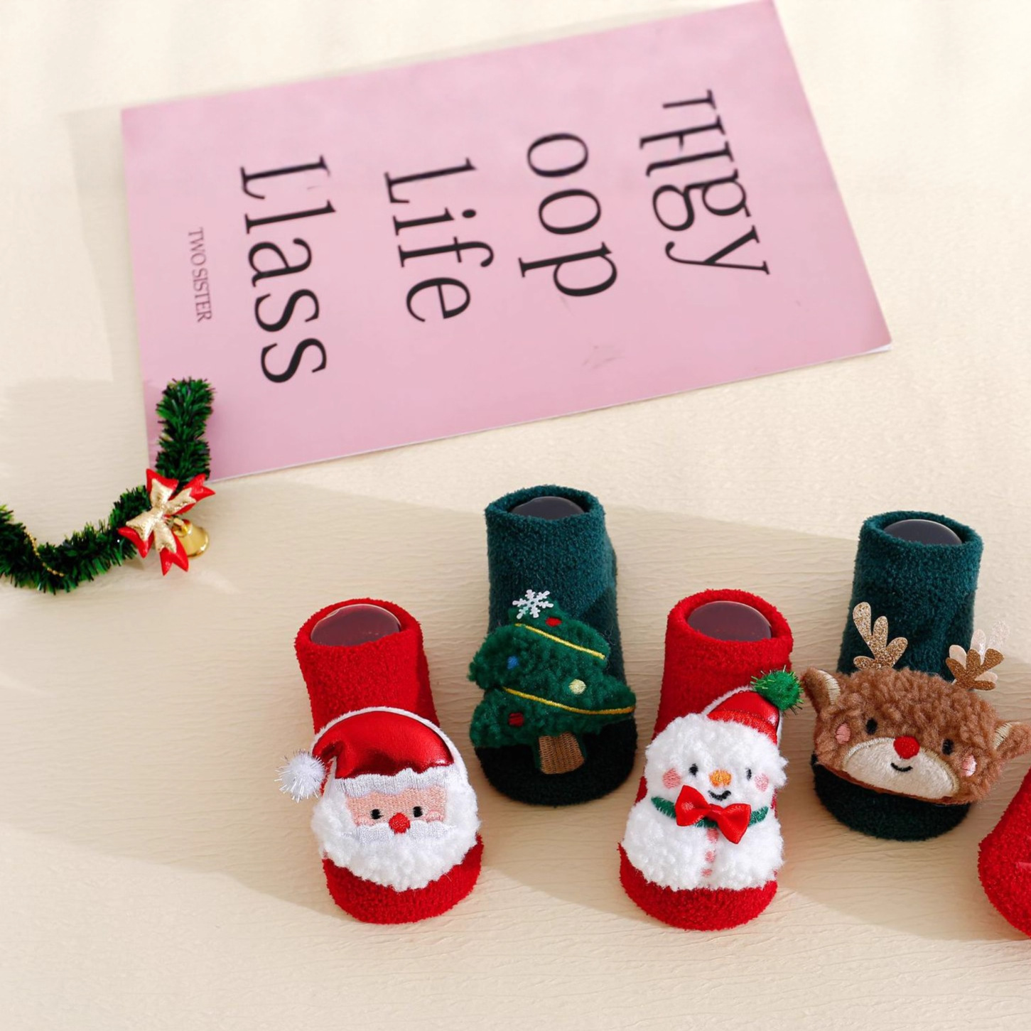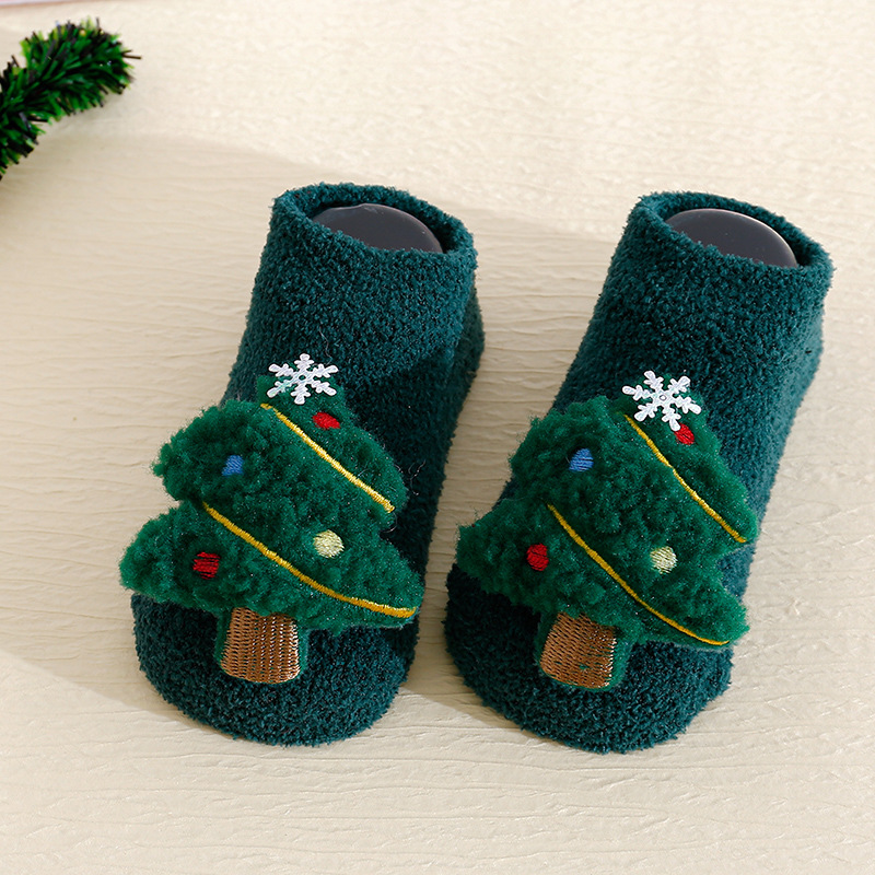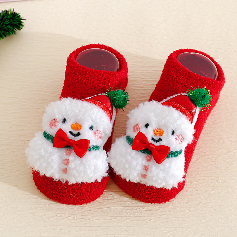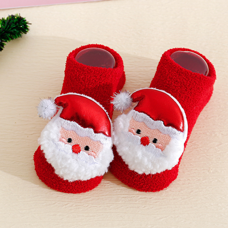 S017AC-秋冬季聖誕寶寶珊瑚絨學步防滑地板襪 (三雙起批)