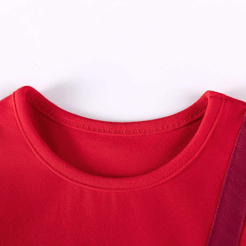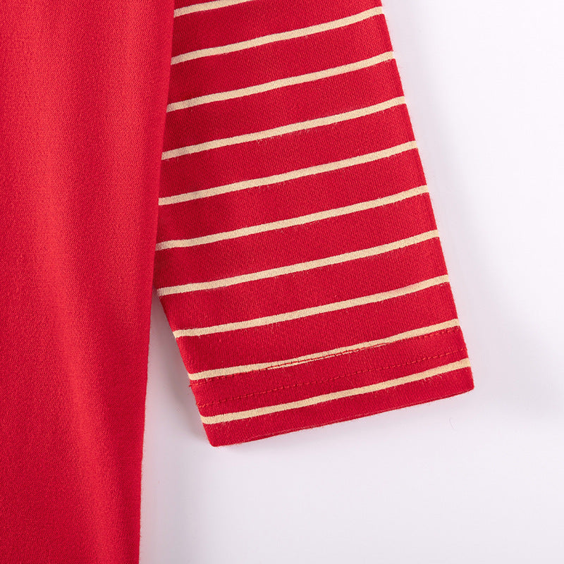 S3119LS-Little maven聖誕條紋拼袖長袖連衣裙