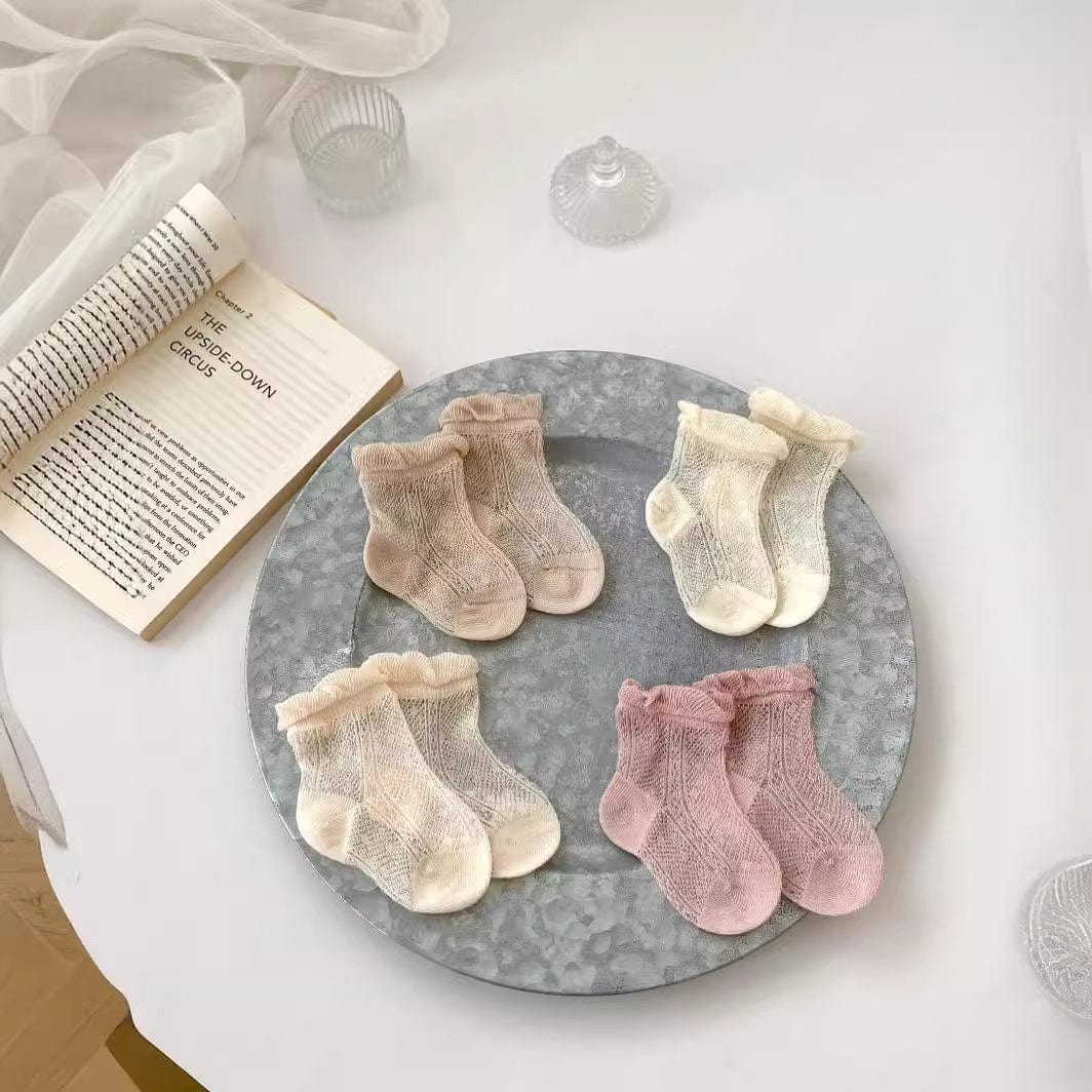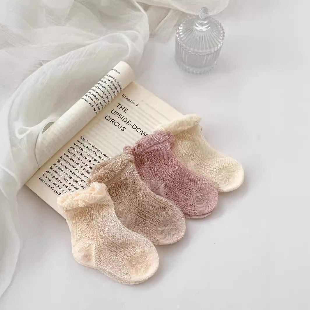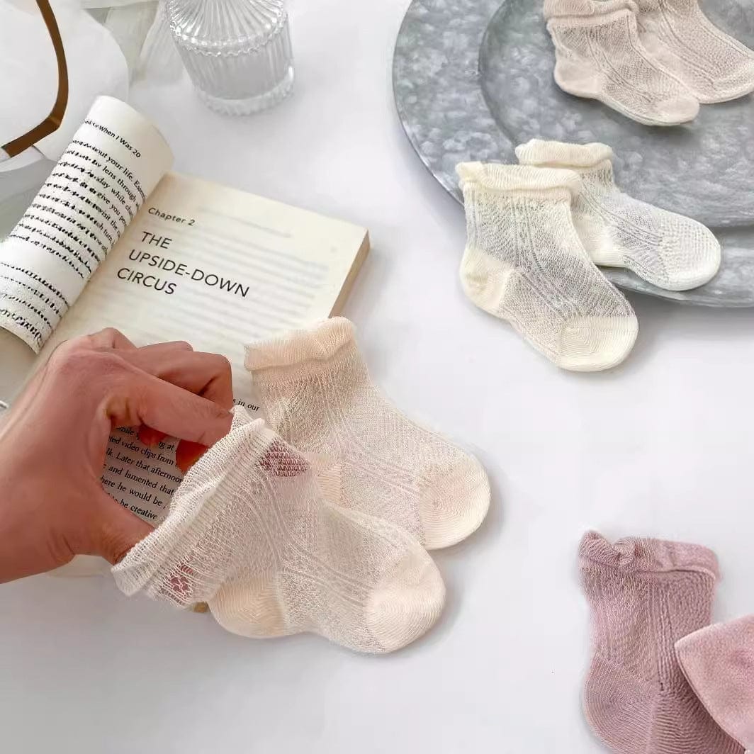 W019AC-夏天純色超薄透氣精梳棉中筒無骨網眼襪