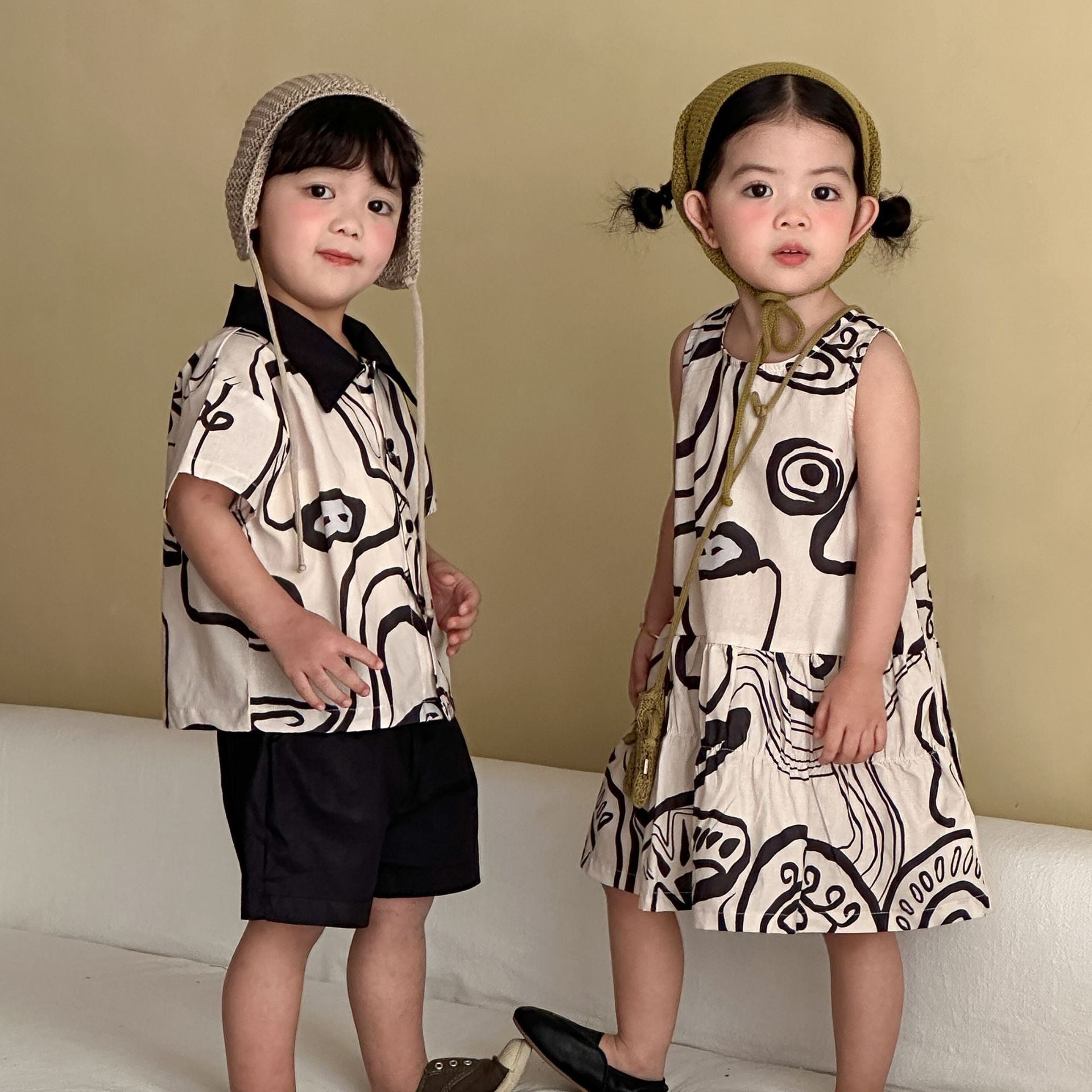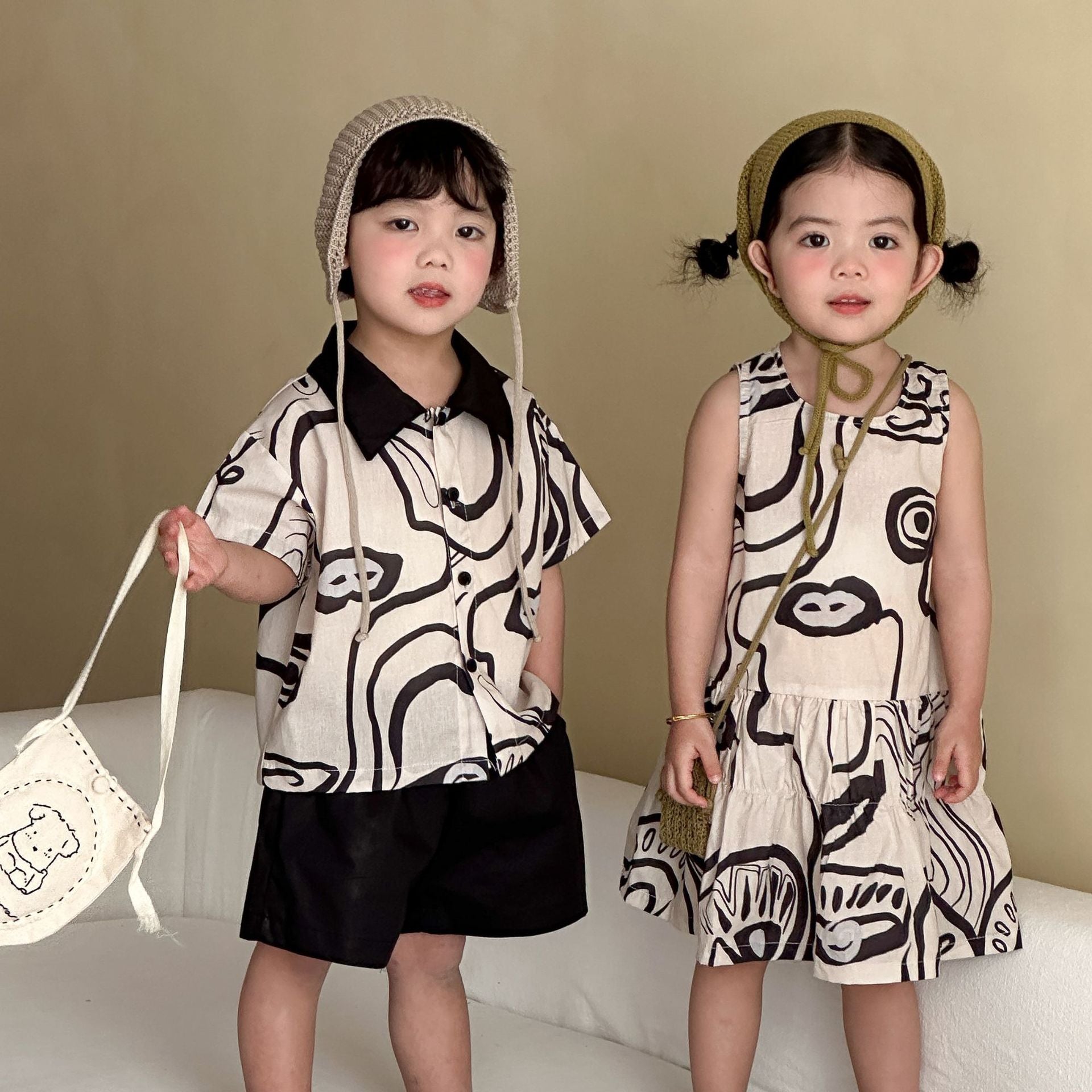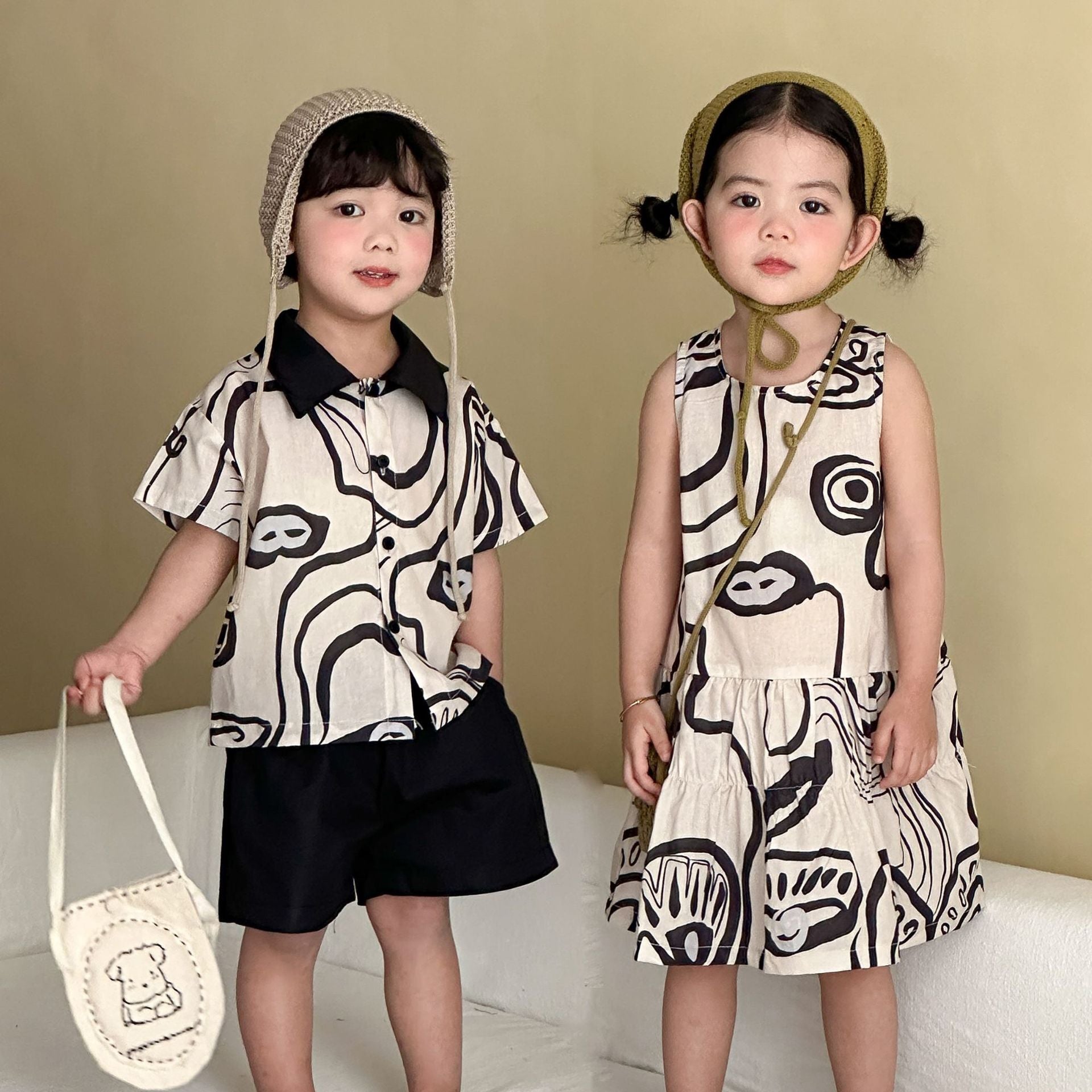 XQ260753TG-夏季襯衫背心兄妹套裝