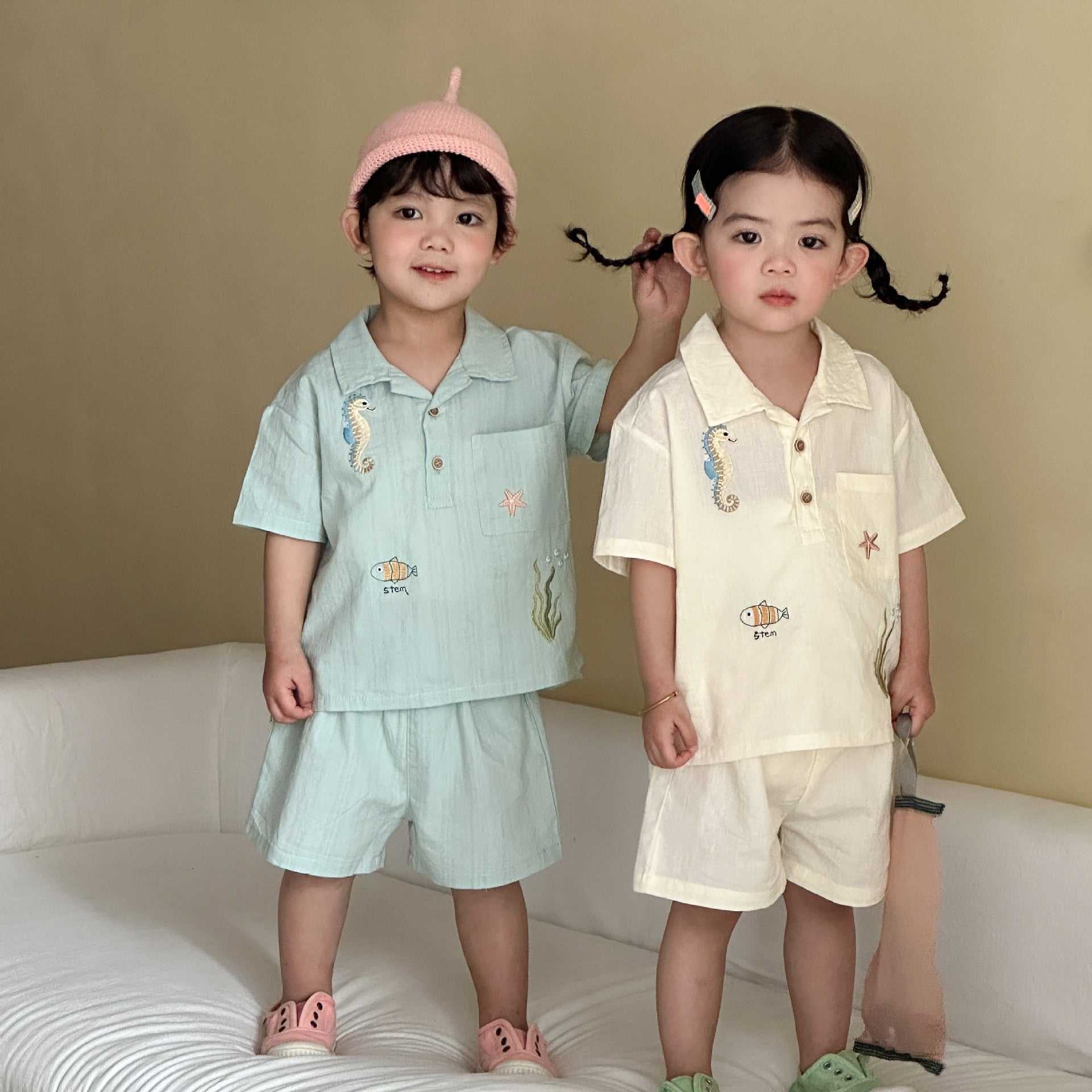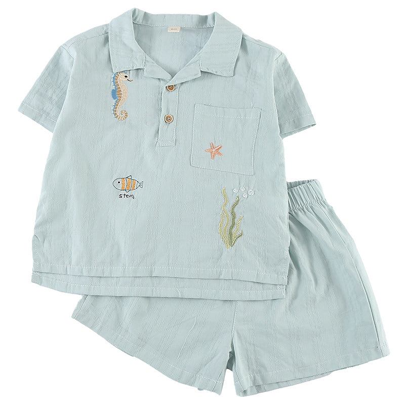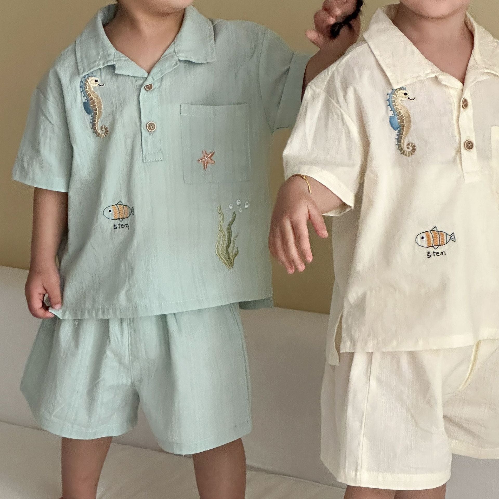 XZ260871TG-夏季純棉襯衫兄妹套裝
