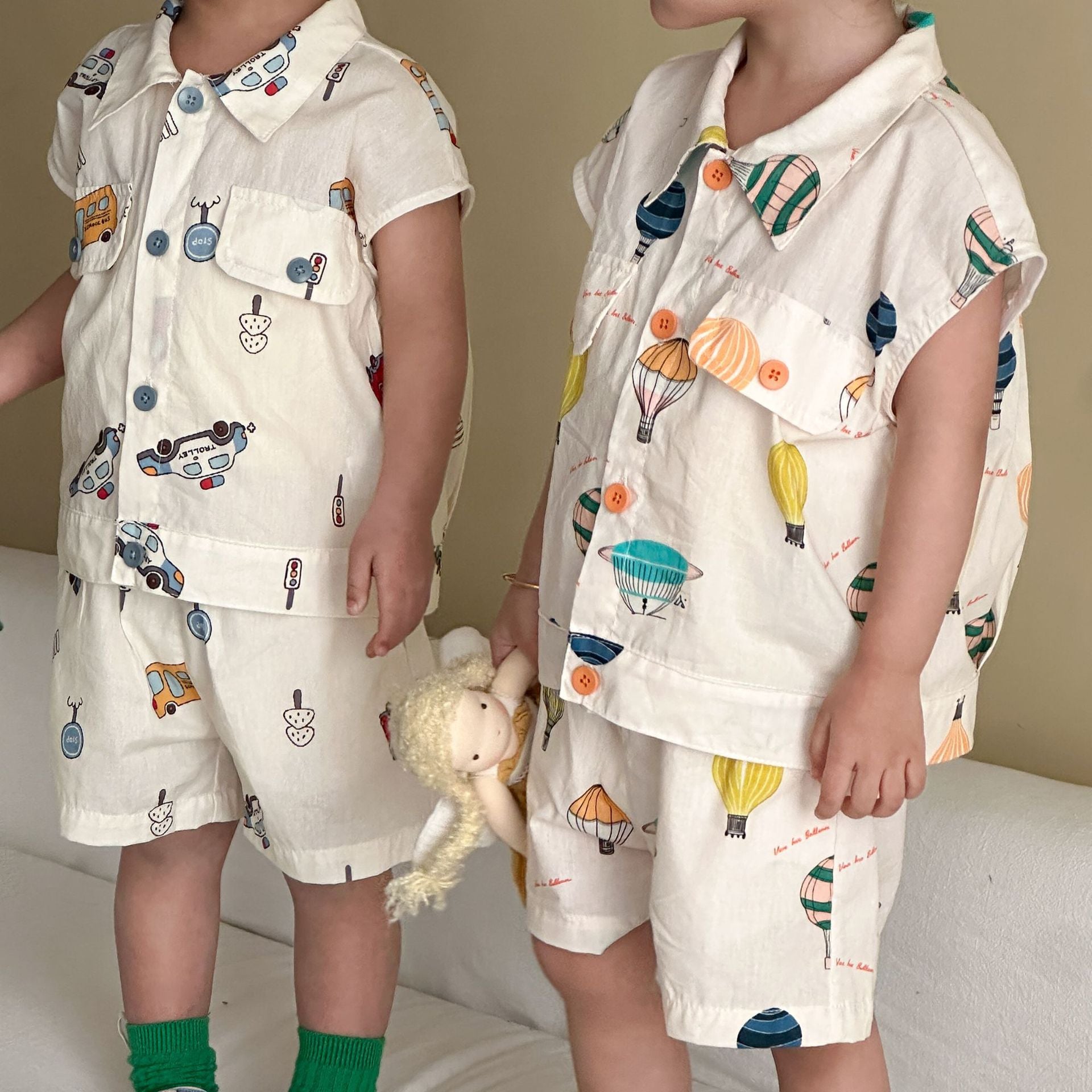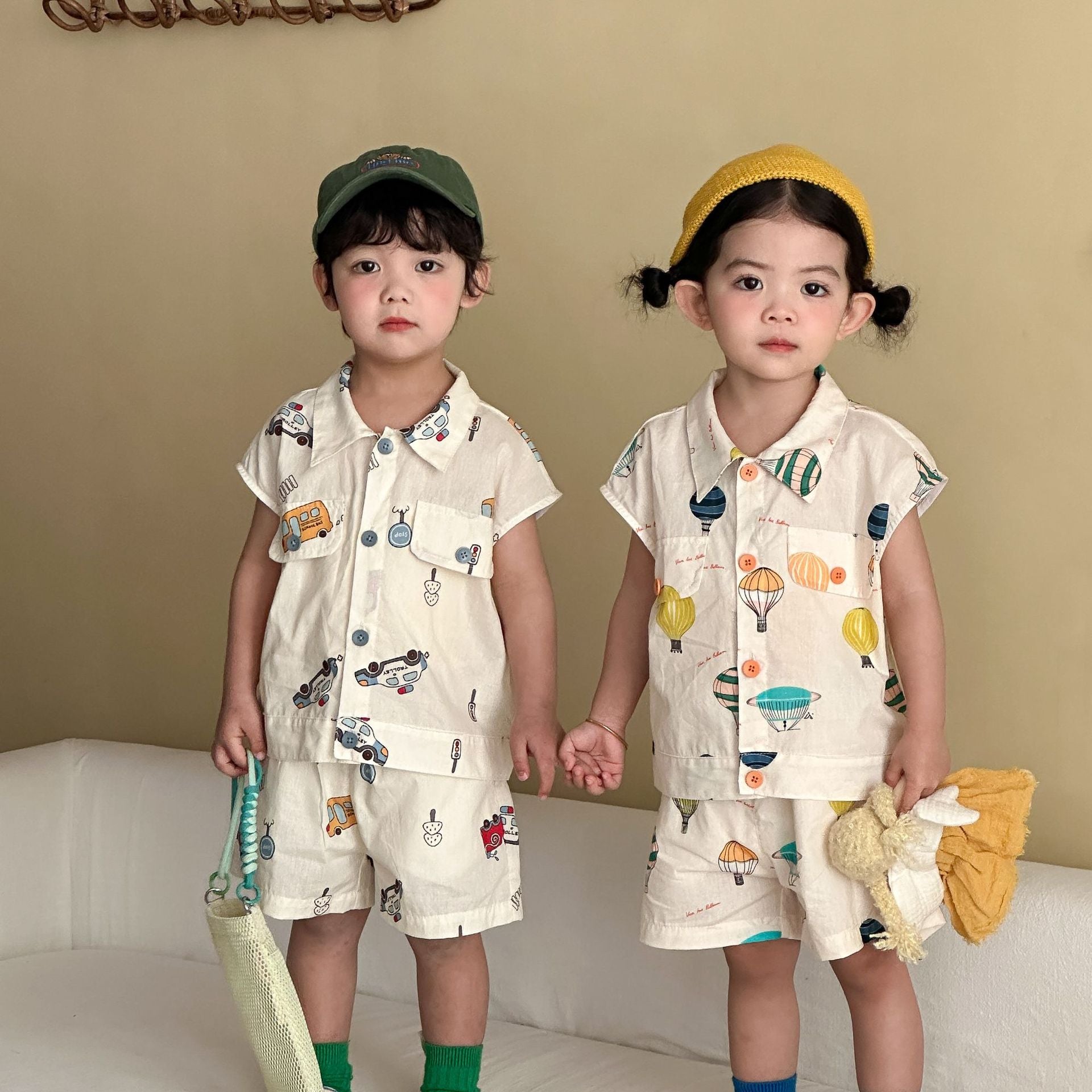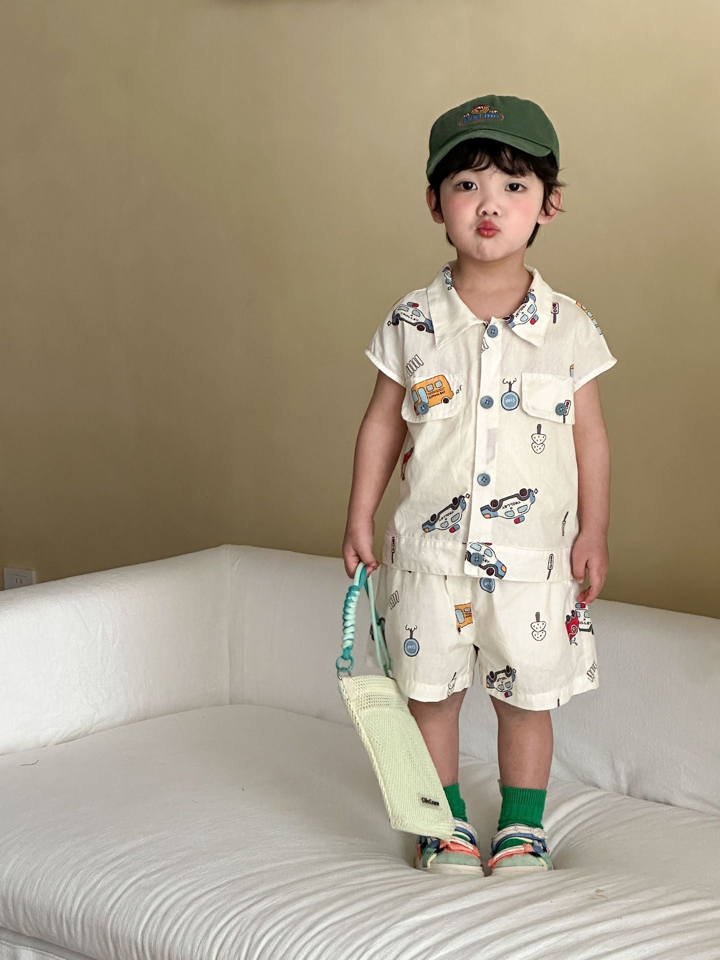 XZ260923TG-夏季純棉襯衫短褲套裝