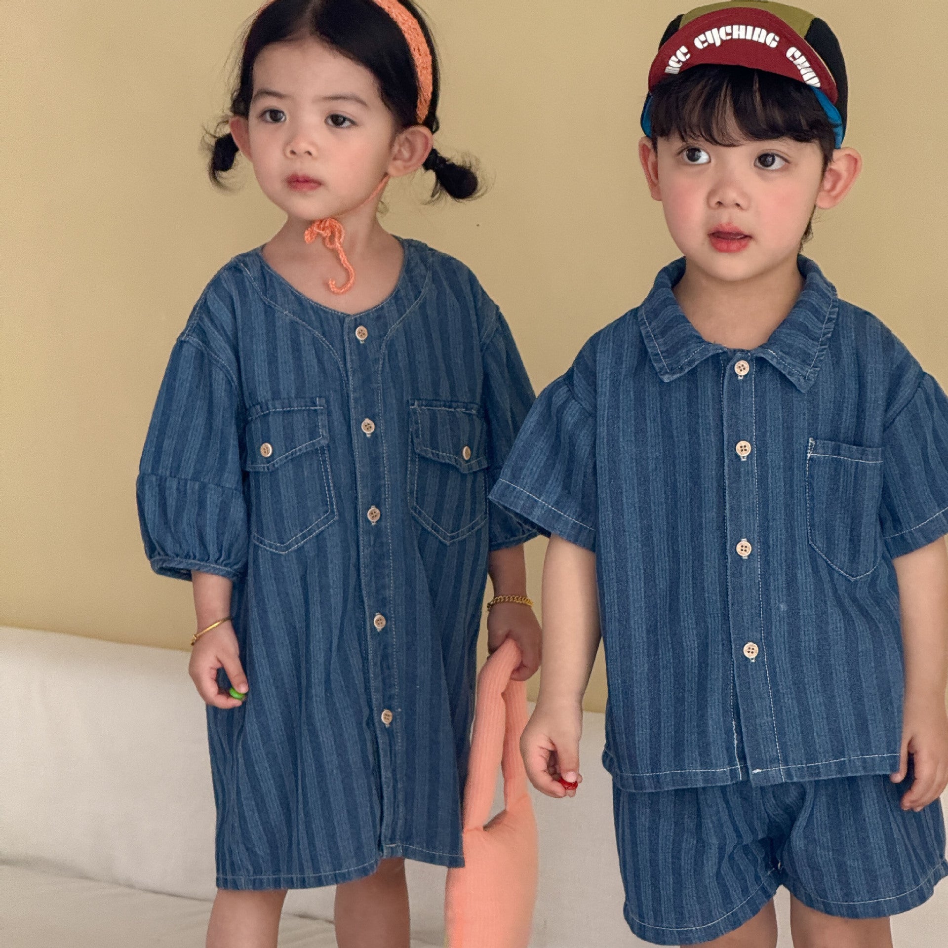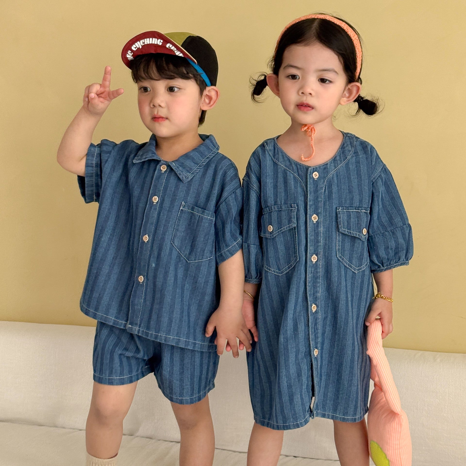 XZ260936TG-夏季|牛仔條紋|兄妹套裝