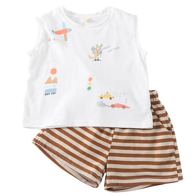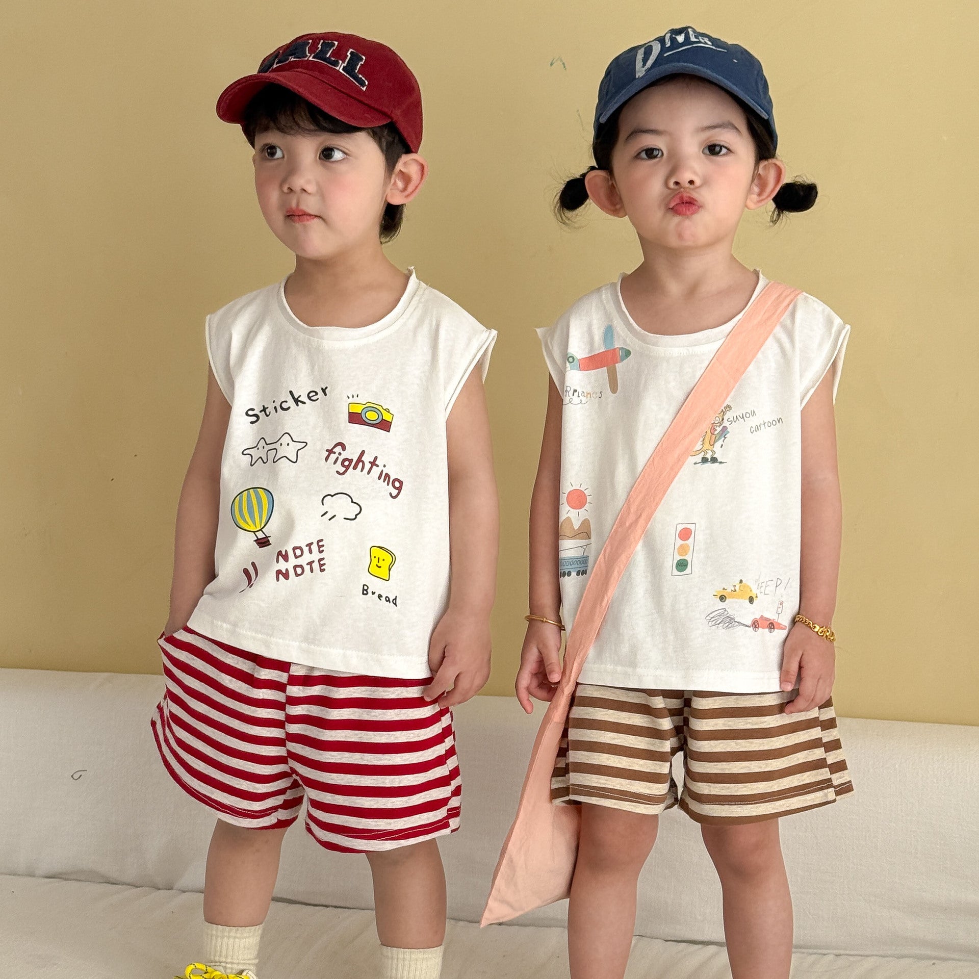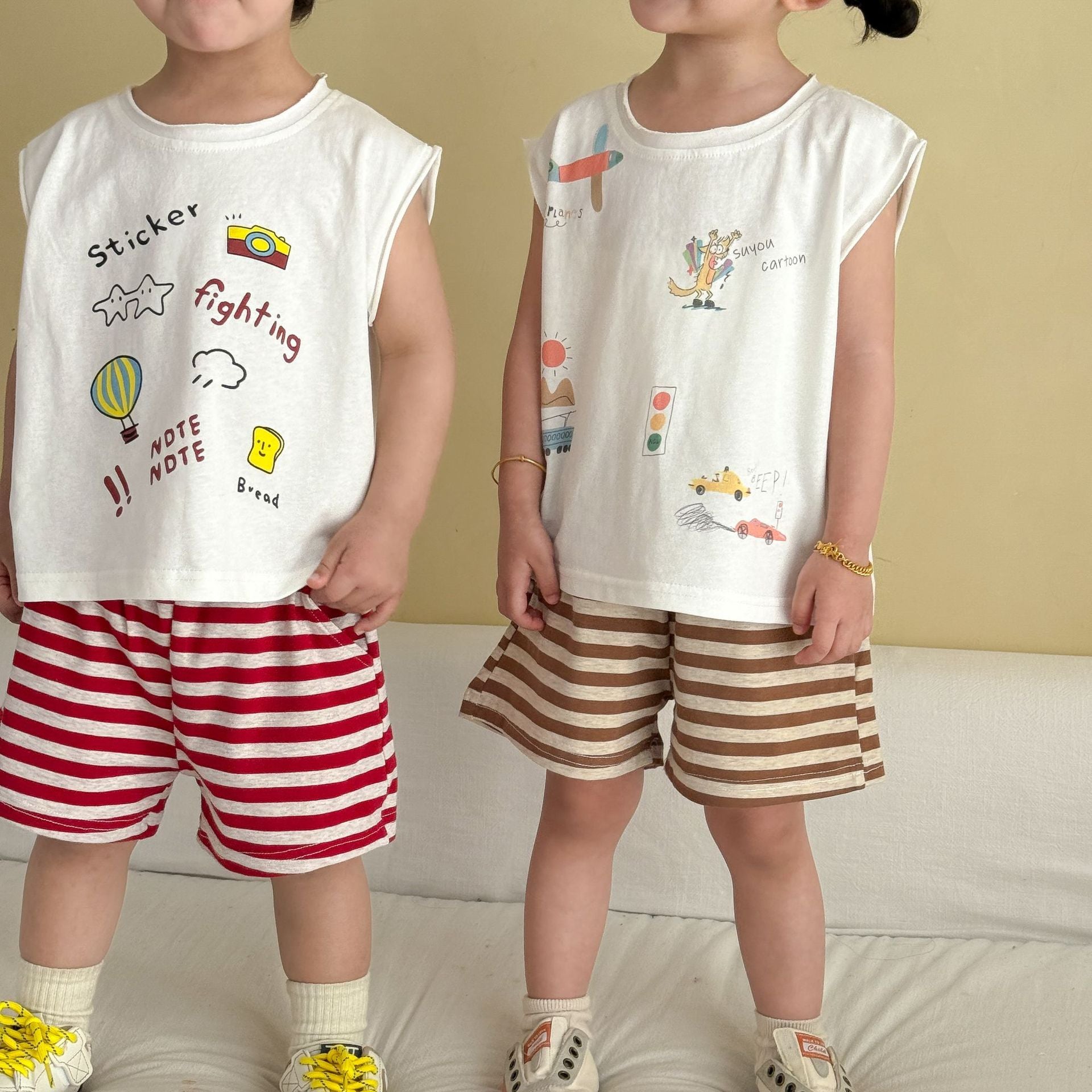 XZ260944TG-夏季|純棉條紋|背心短褲套裝