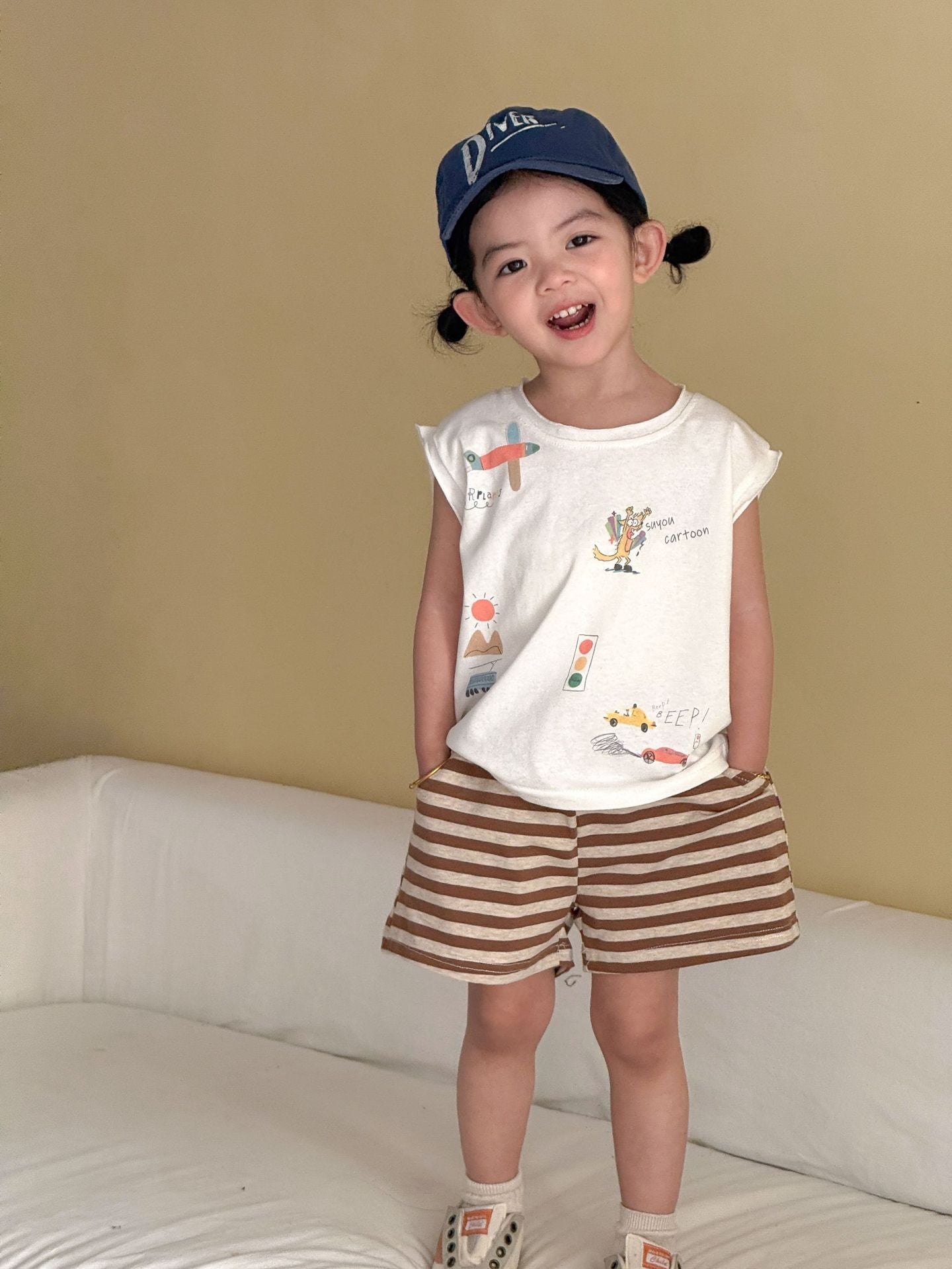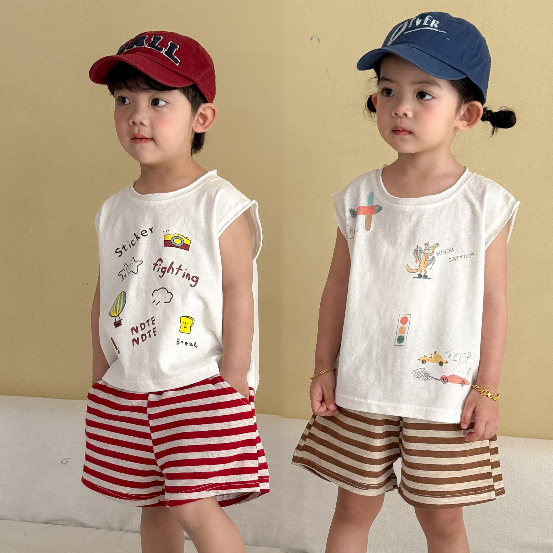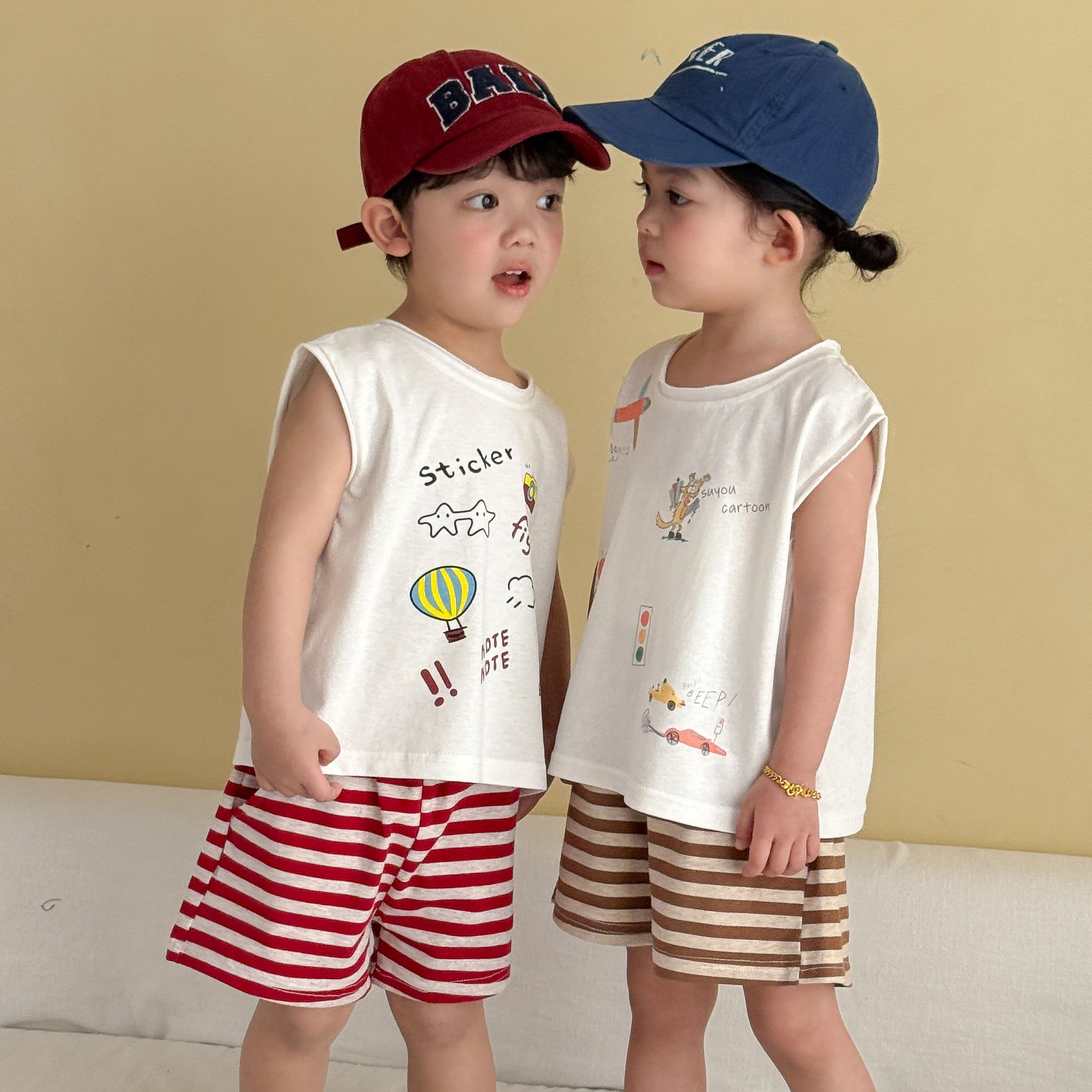 XZ260944TG-夏季|純棉條紋|背心短褲套裝
