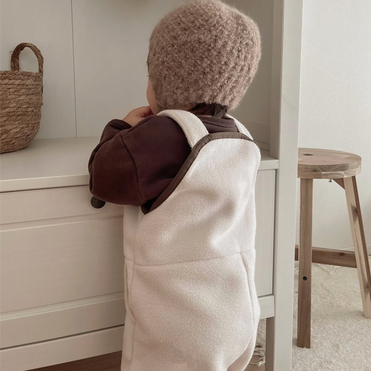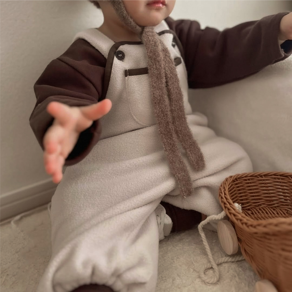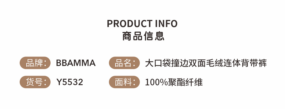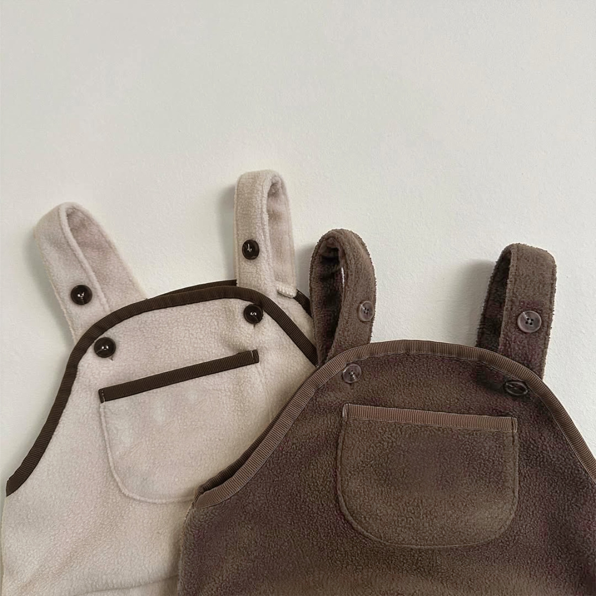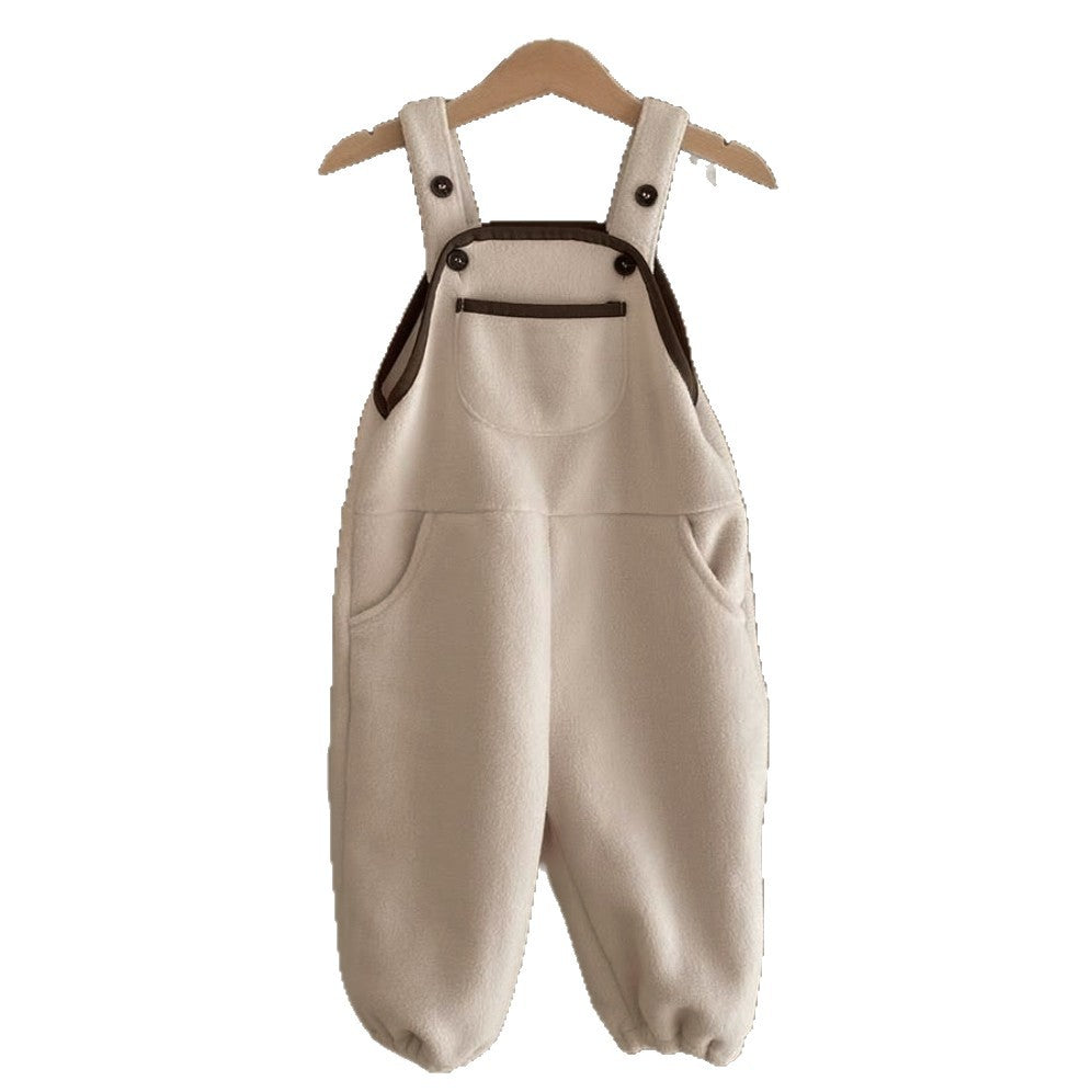 Y5532LS-秋冬雙面毛絨背帶褲|大口袋撞邊