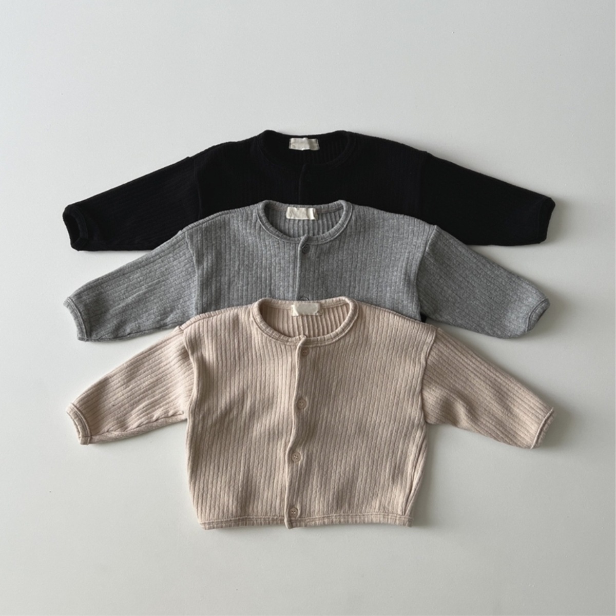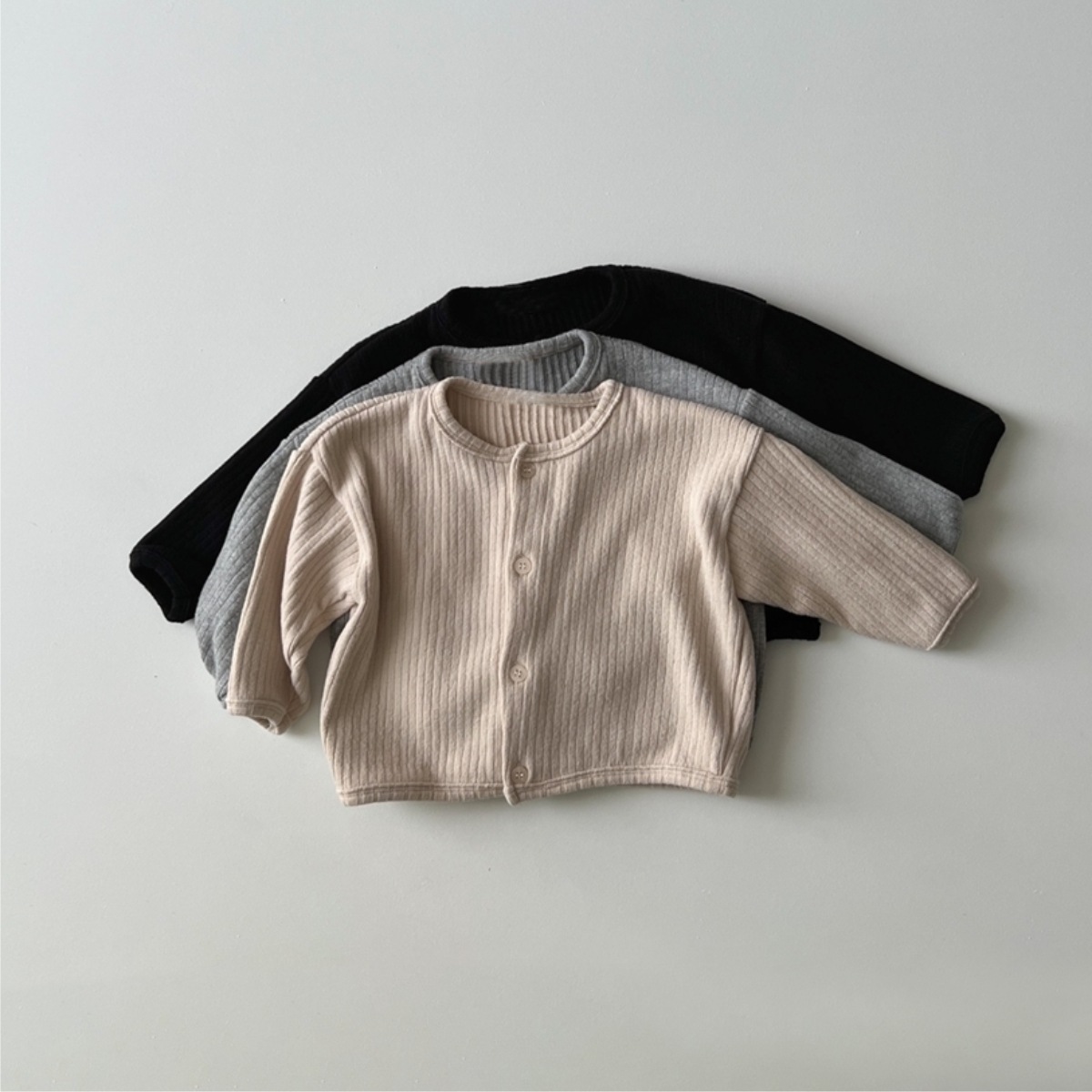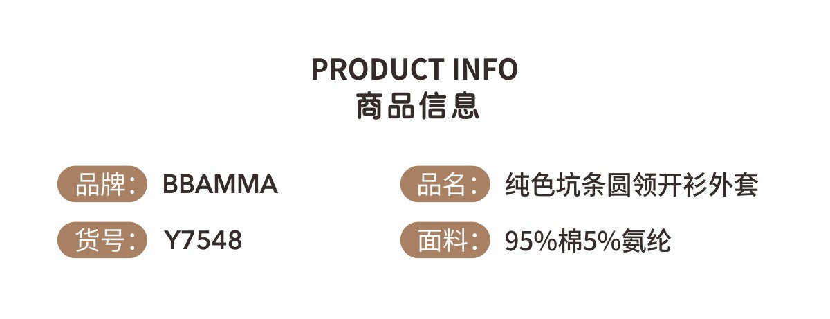 Y7548SE-秋冬坑條針織外套|純色圓領款