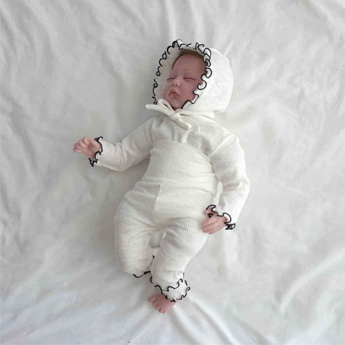 米白色三件套(連體衣+褲子+帽子) / 66cm