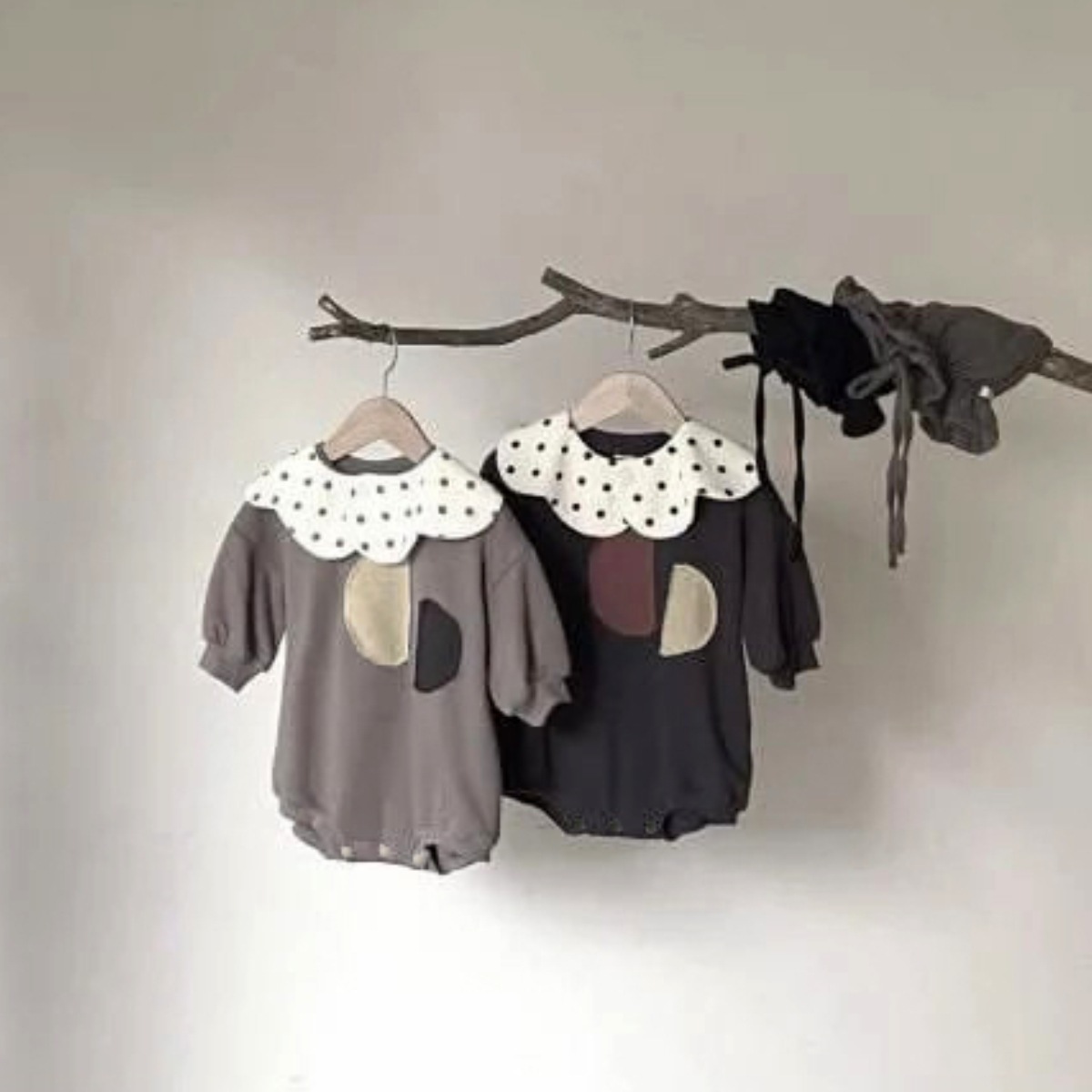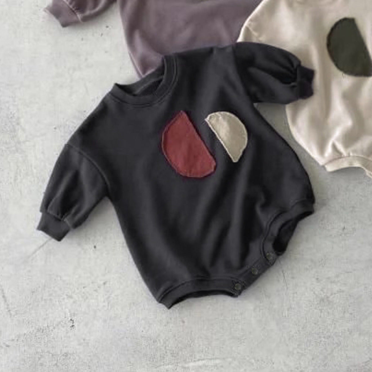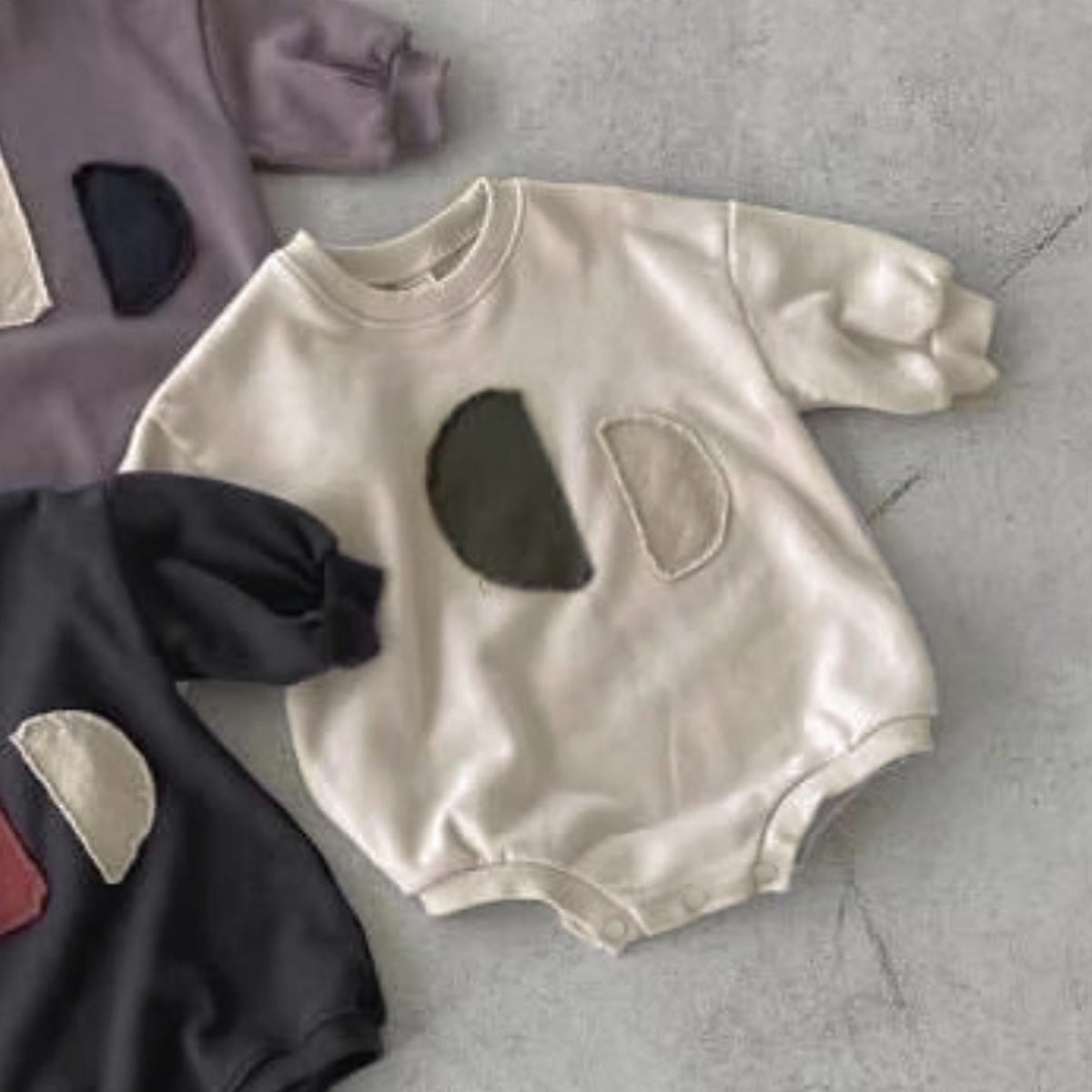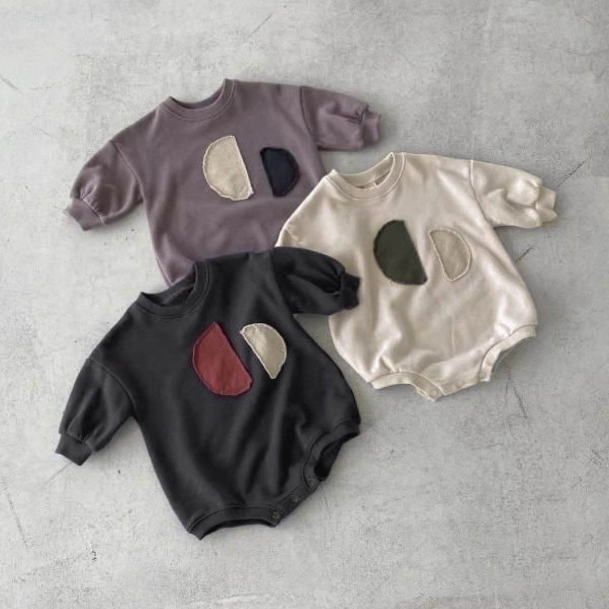Y95107LS-春秋圓領貼布包屁衣