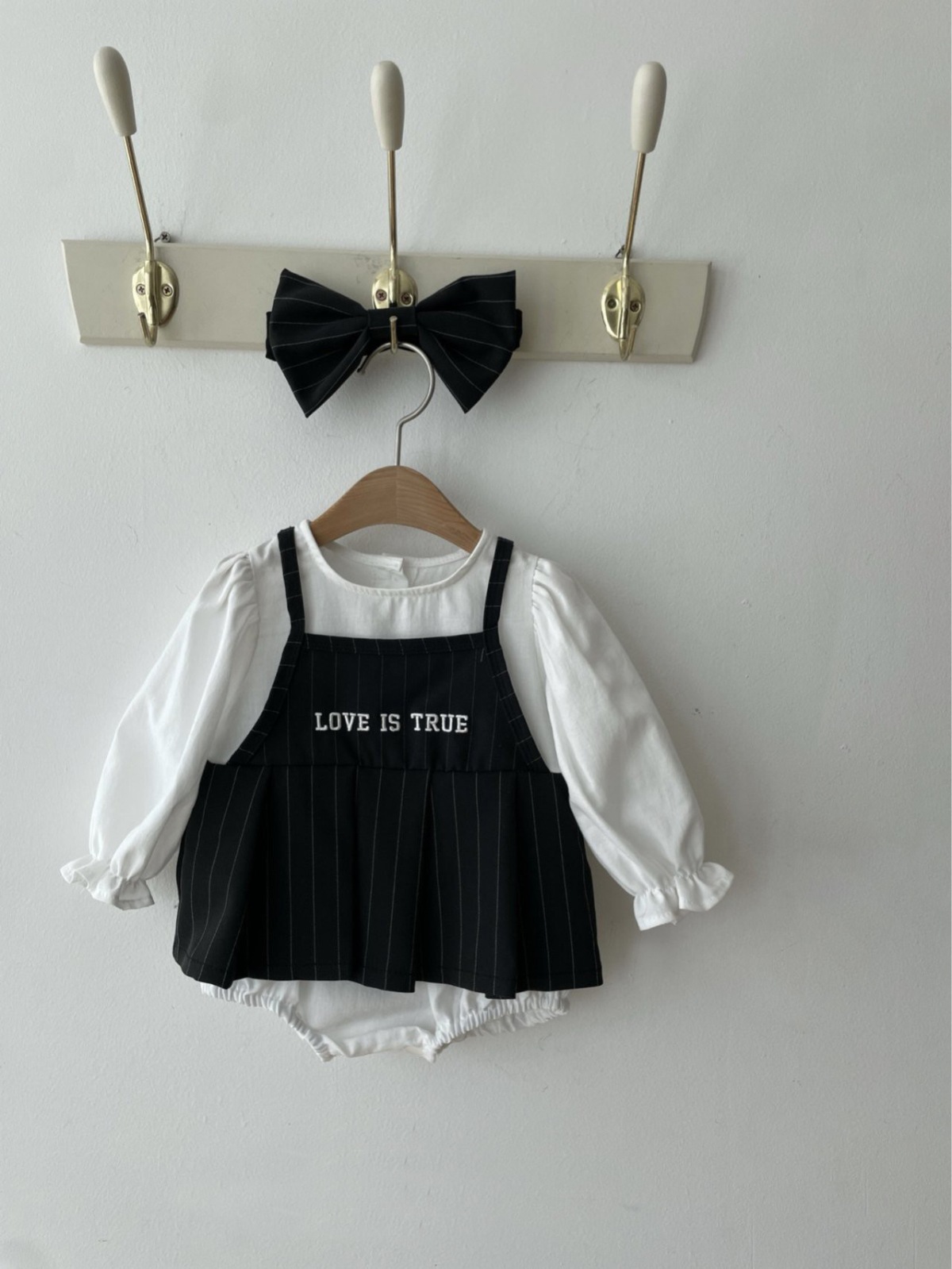 米白色套裝(連體衣+黑髮帶) / 90cm