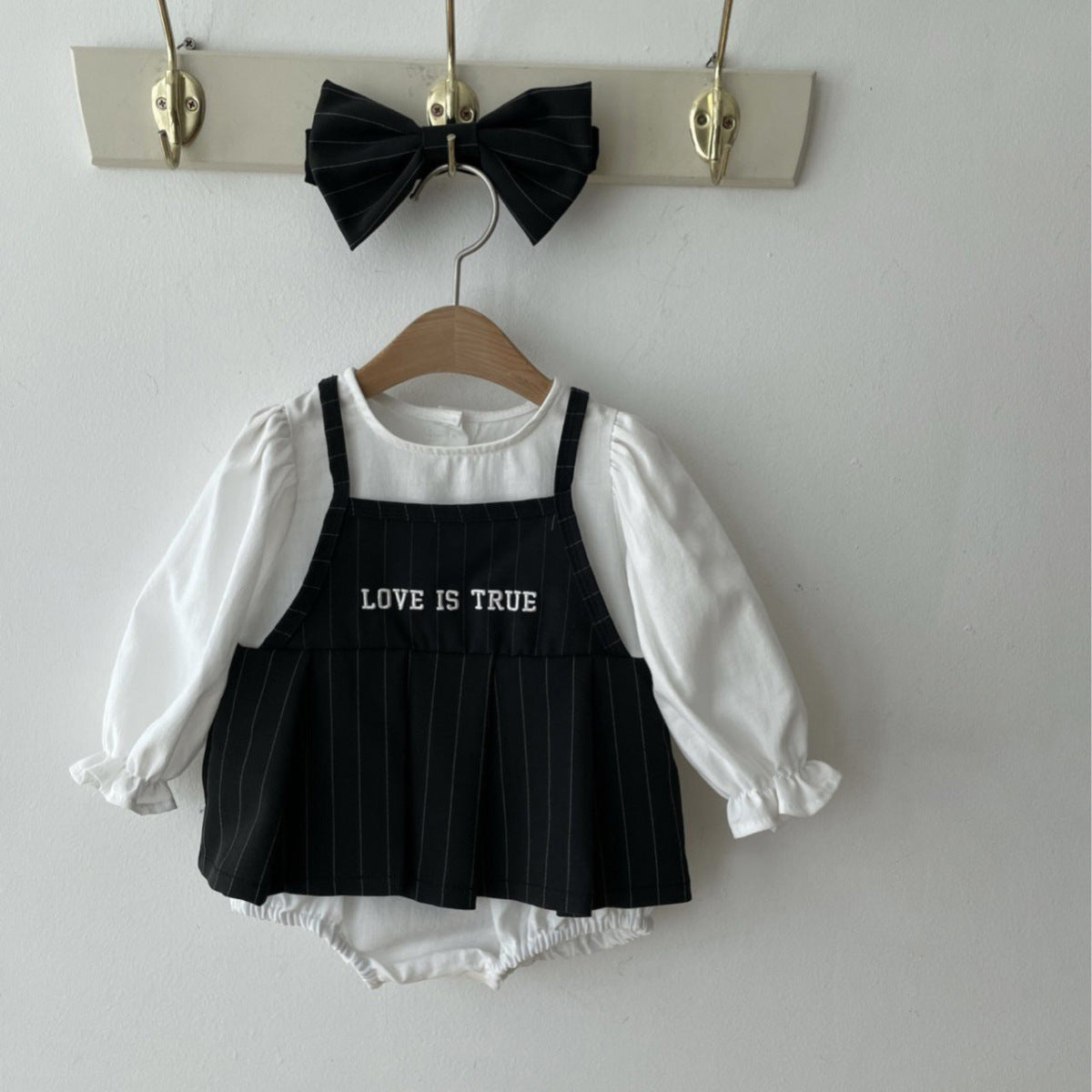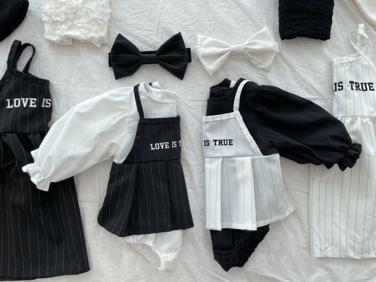 Y9581LS-春季女寶假兩件裙式連身包屁衣&髮式&兩件套