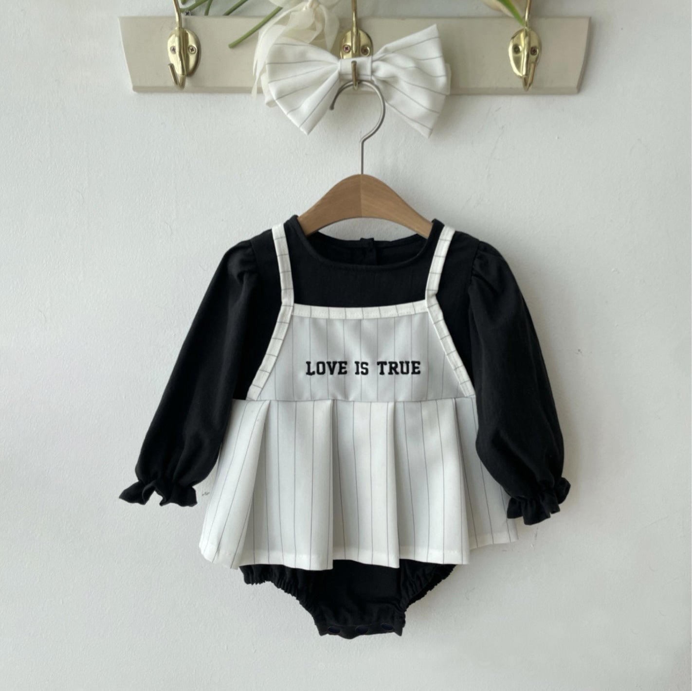 黑色套裝(連體衣+米白髮帶) / 80cm