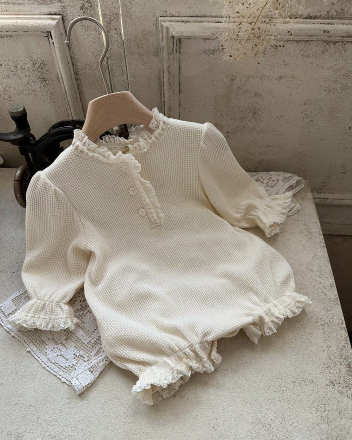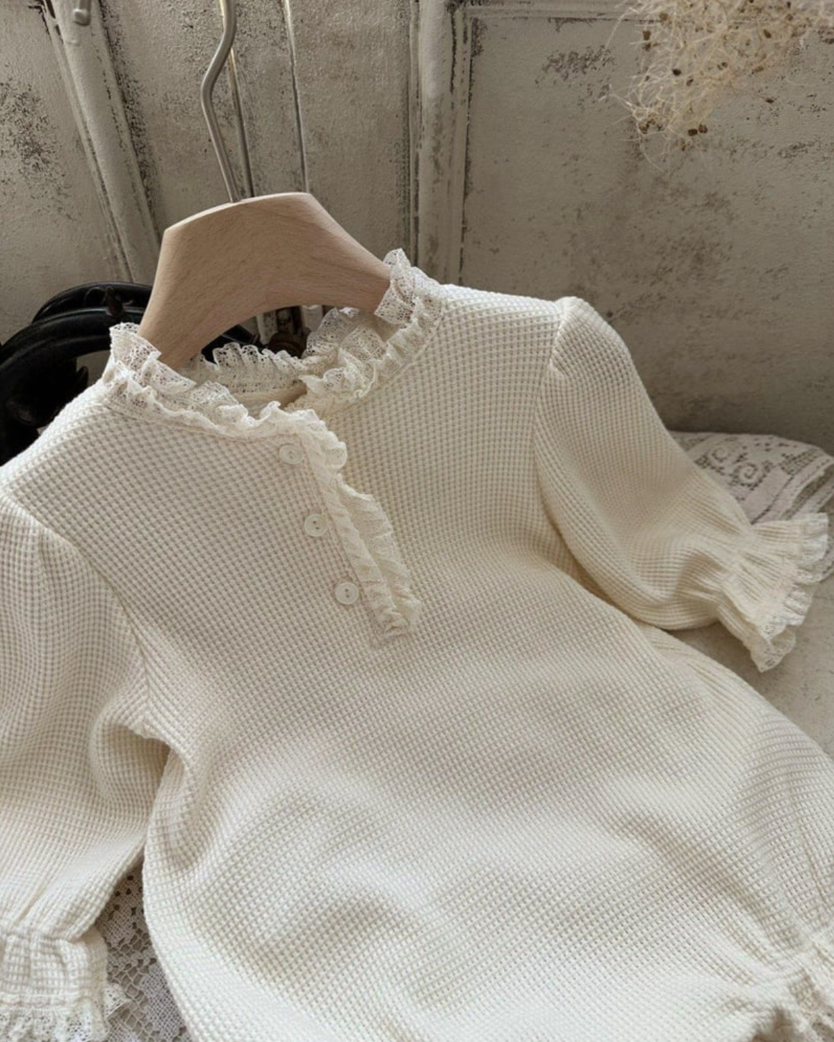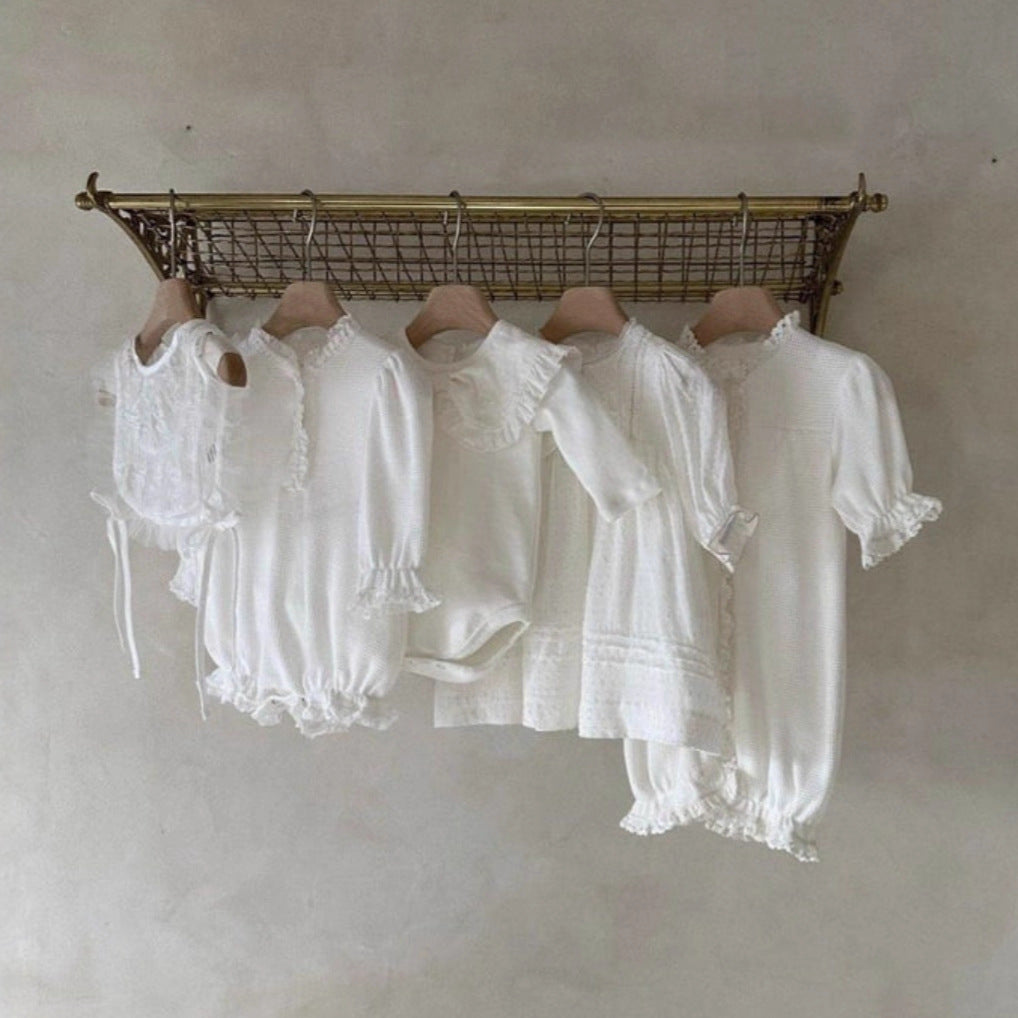 Y9603LS-春夏季嬰兒蕾絲蕾絲領三粒扣包屁衣