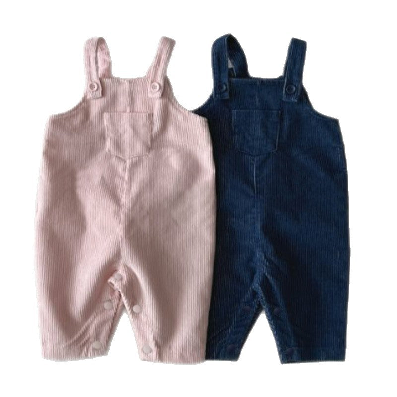 Y9613LS-春夏季嬰兒大口袋純棉燈芯絨背帶褲長爬服
