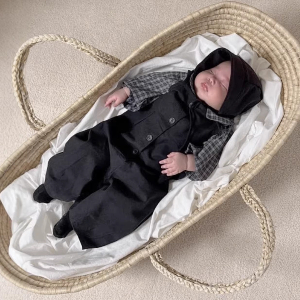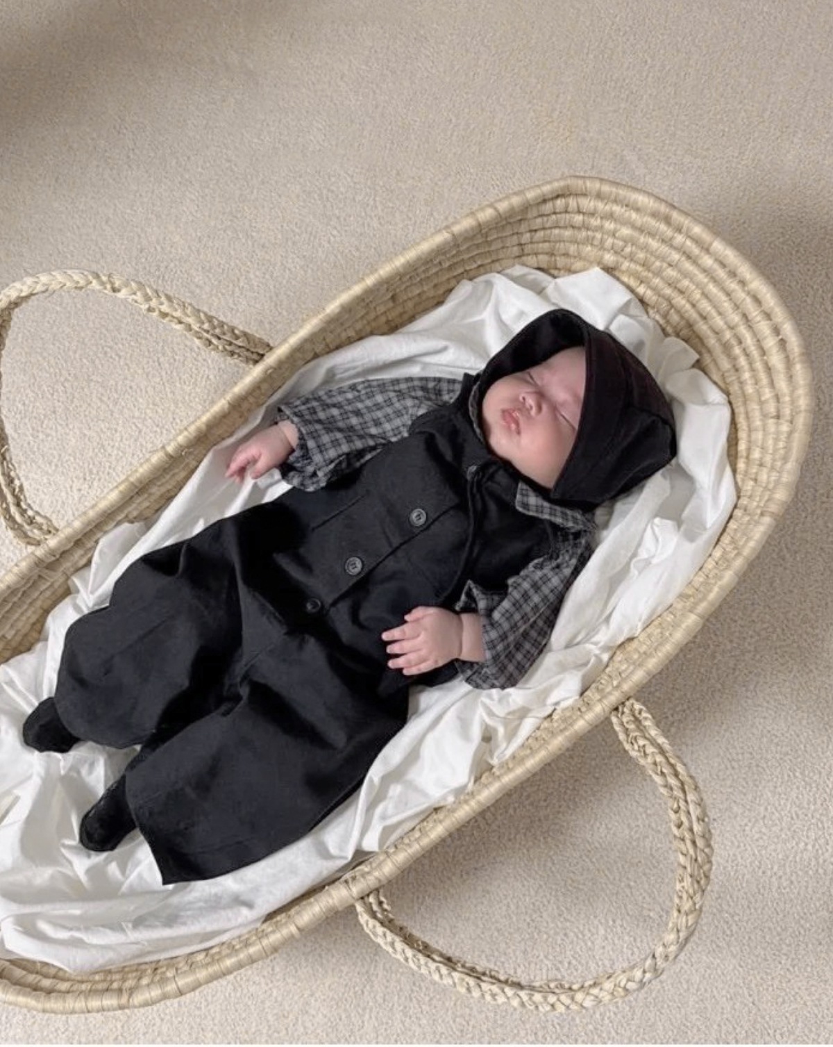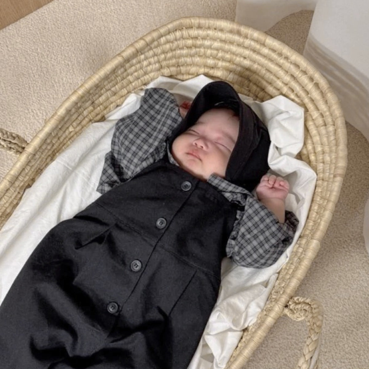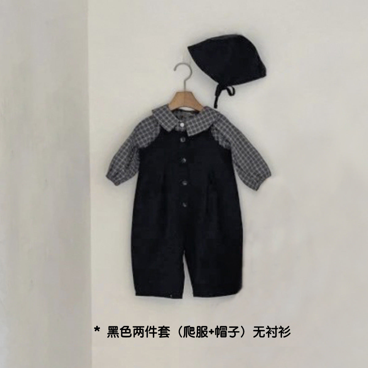 黑色三件套(爬服+藍格襯衫+帽子) / 73CM