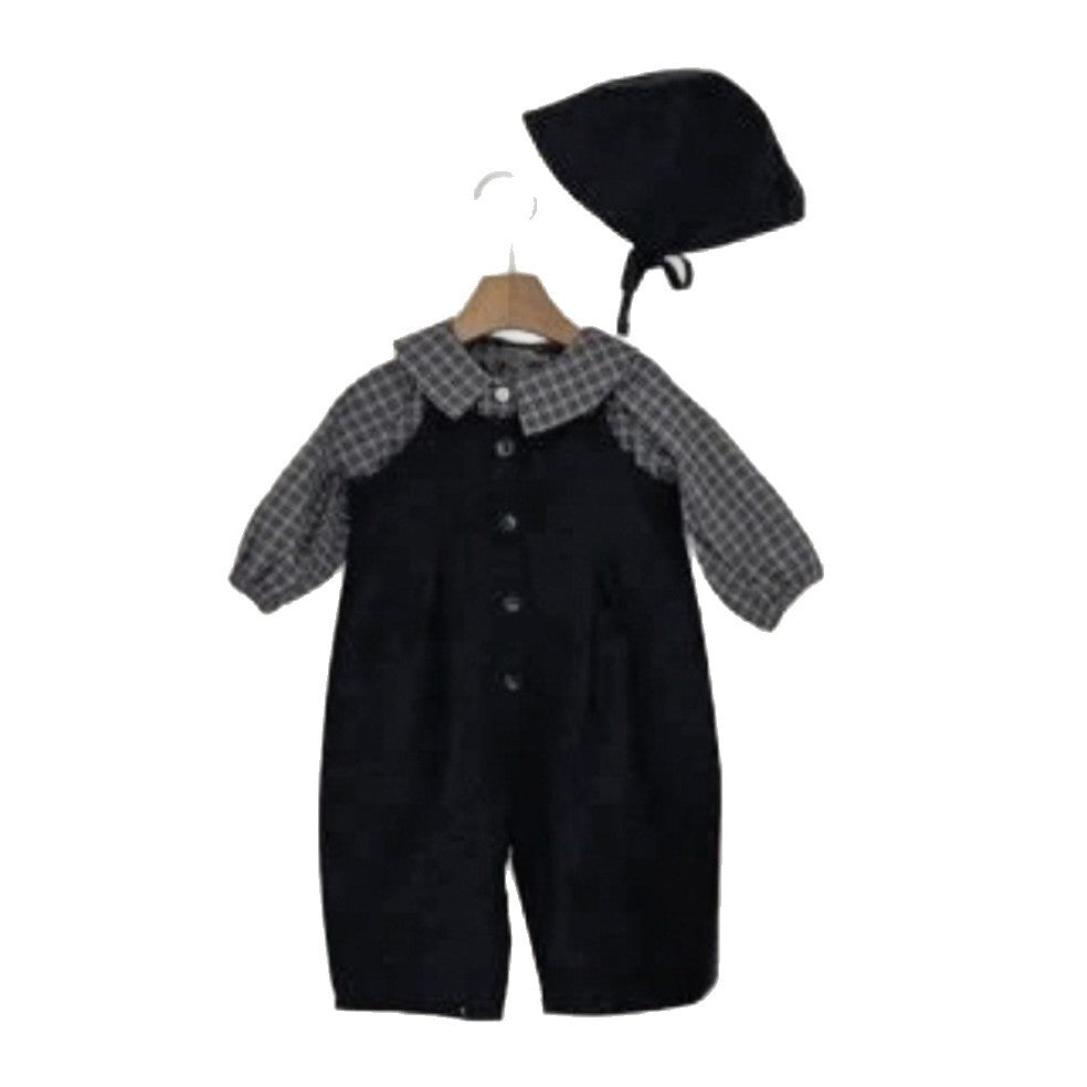 黑色三件套(爬服+藍格襯衫+帽子) / 66cm