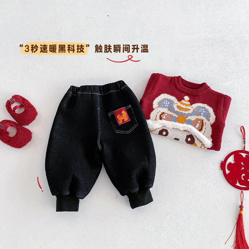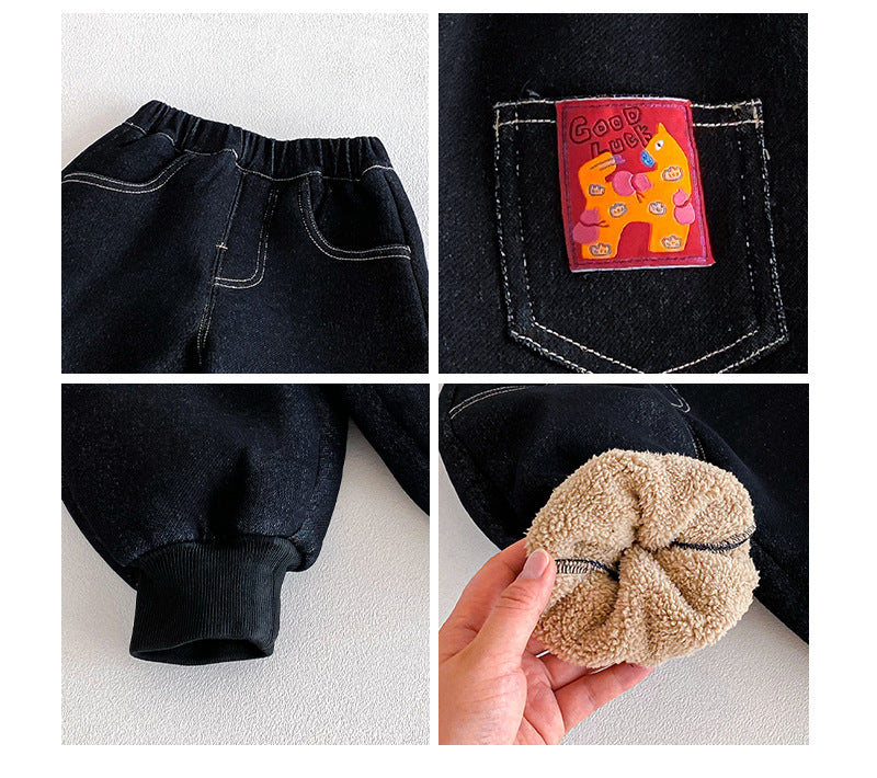 • 將圖片載入圖庫檢視器 ZDK5674PA-冬季韓版加絨束腳休閒牛仔褲