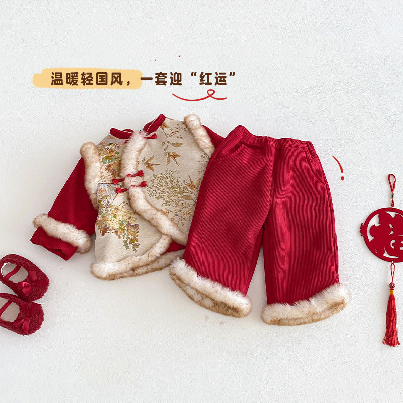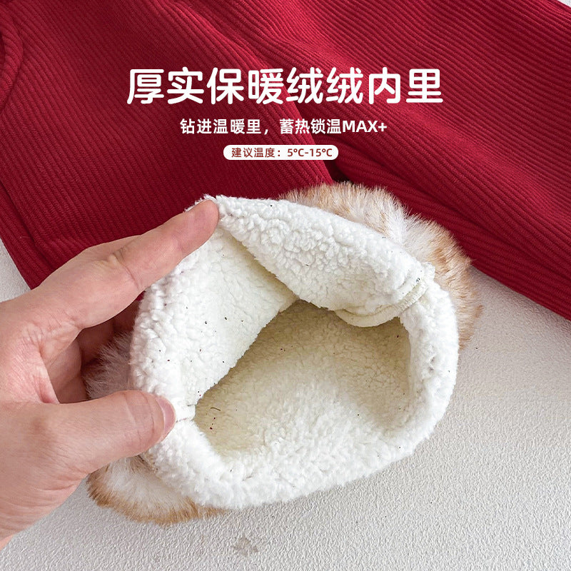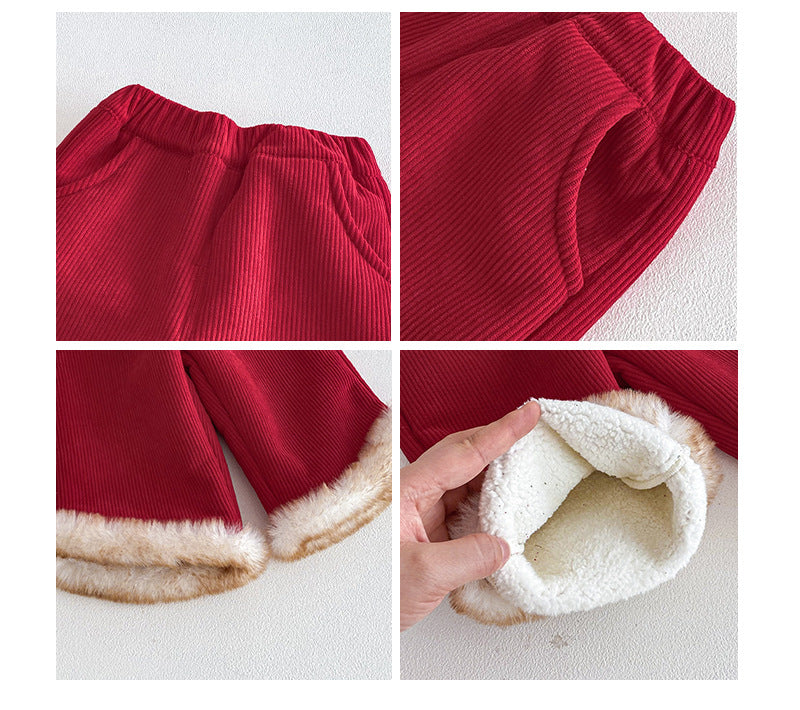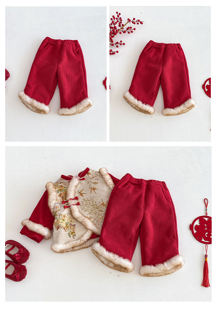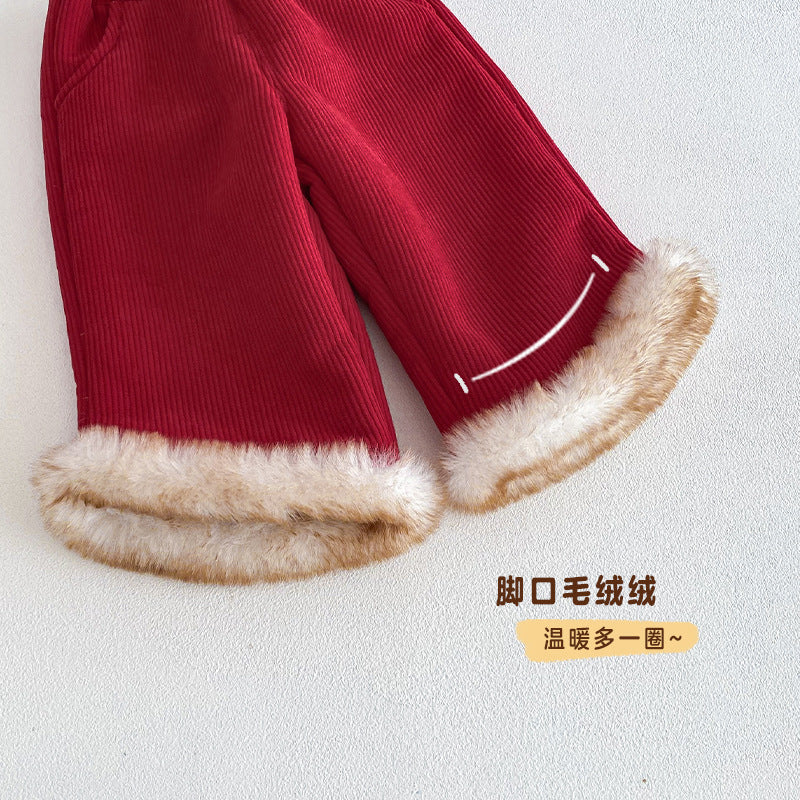 • 將圖片載入圖庫檢視器 ZDK5703PA-冬季復古拜年毛毛加絨休閒長褲