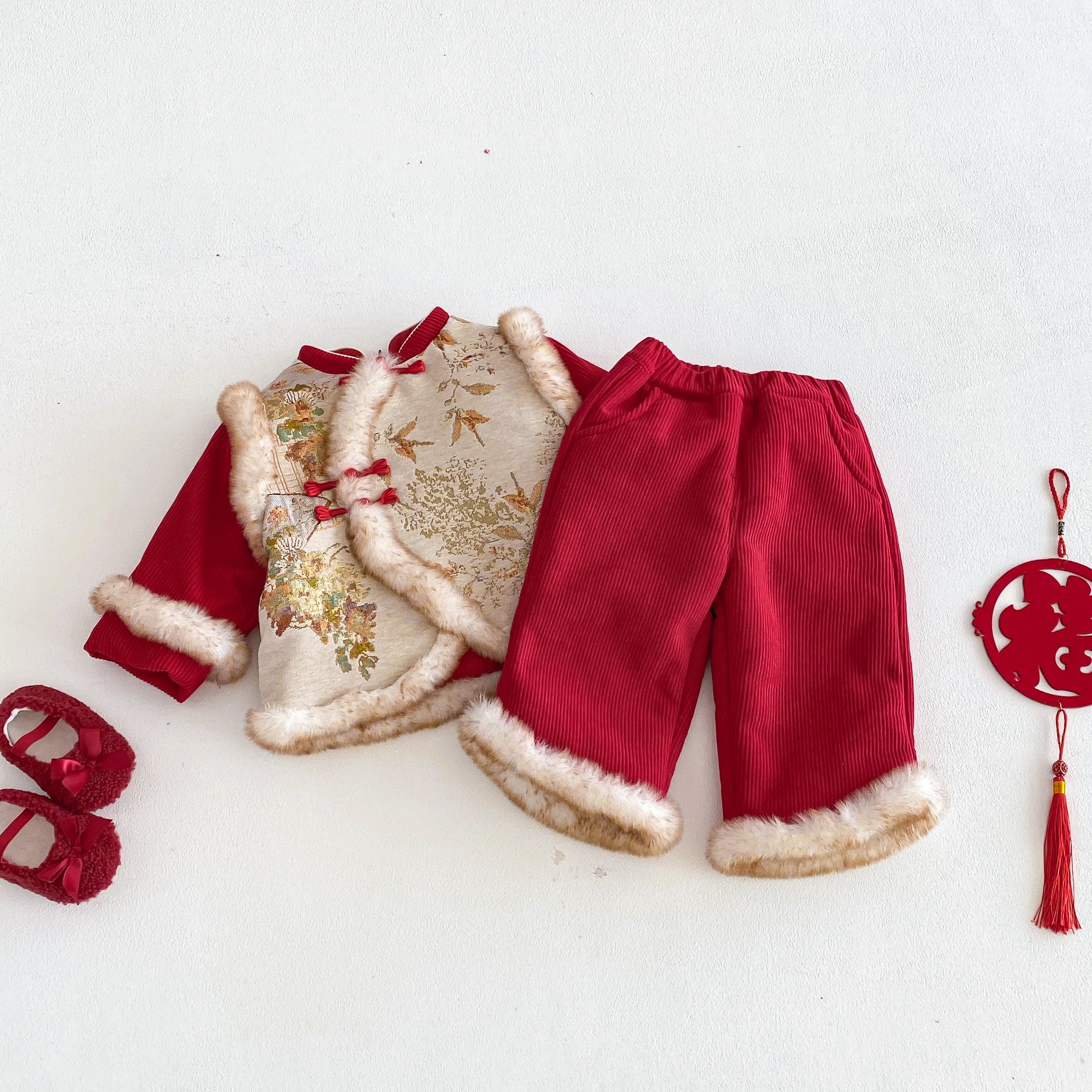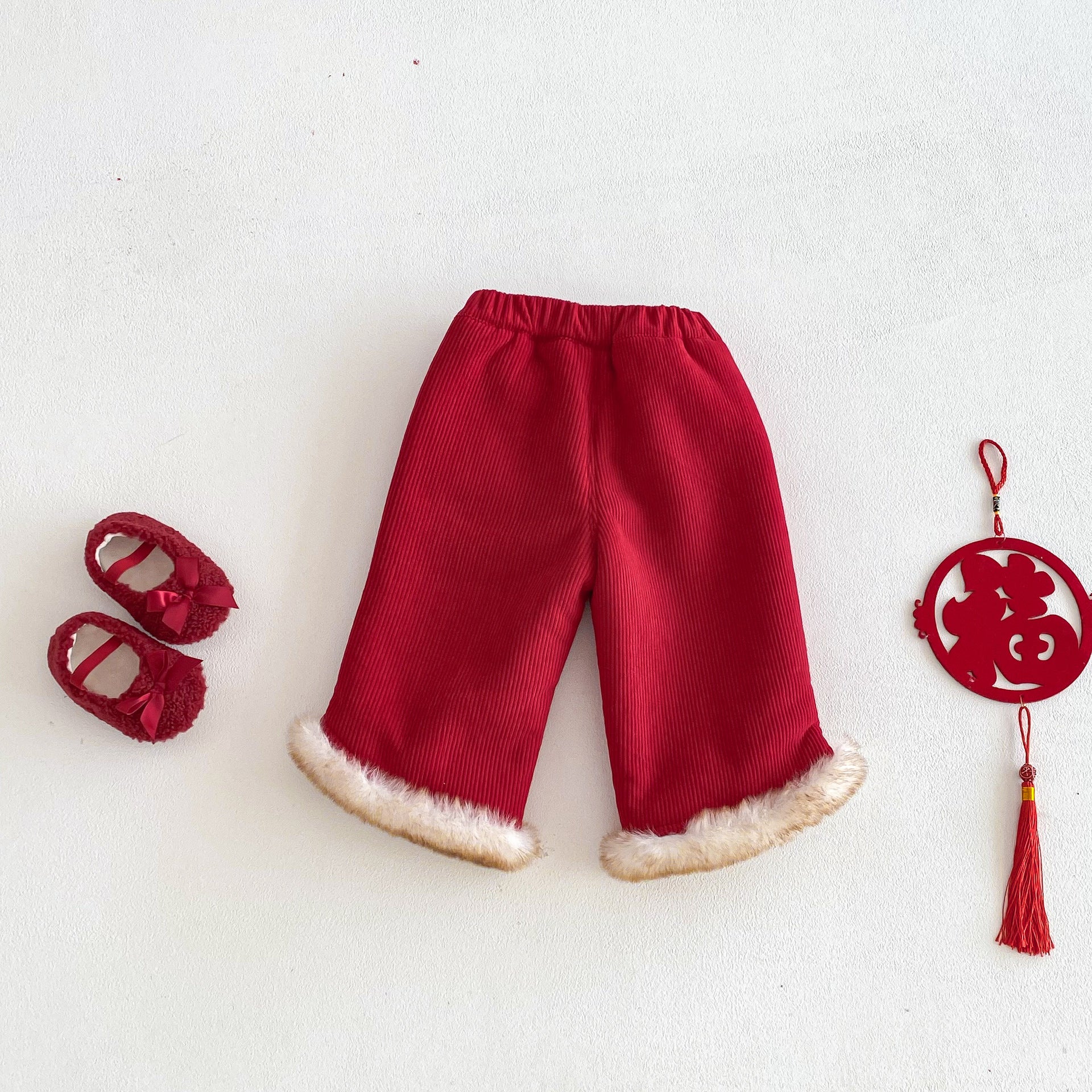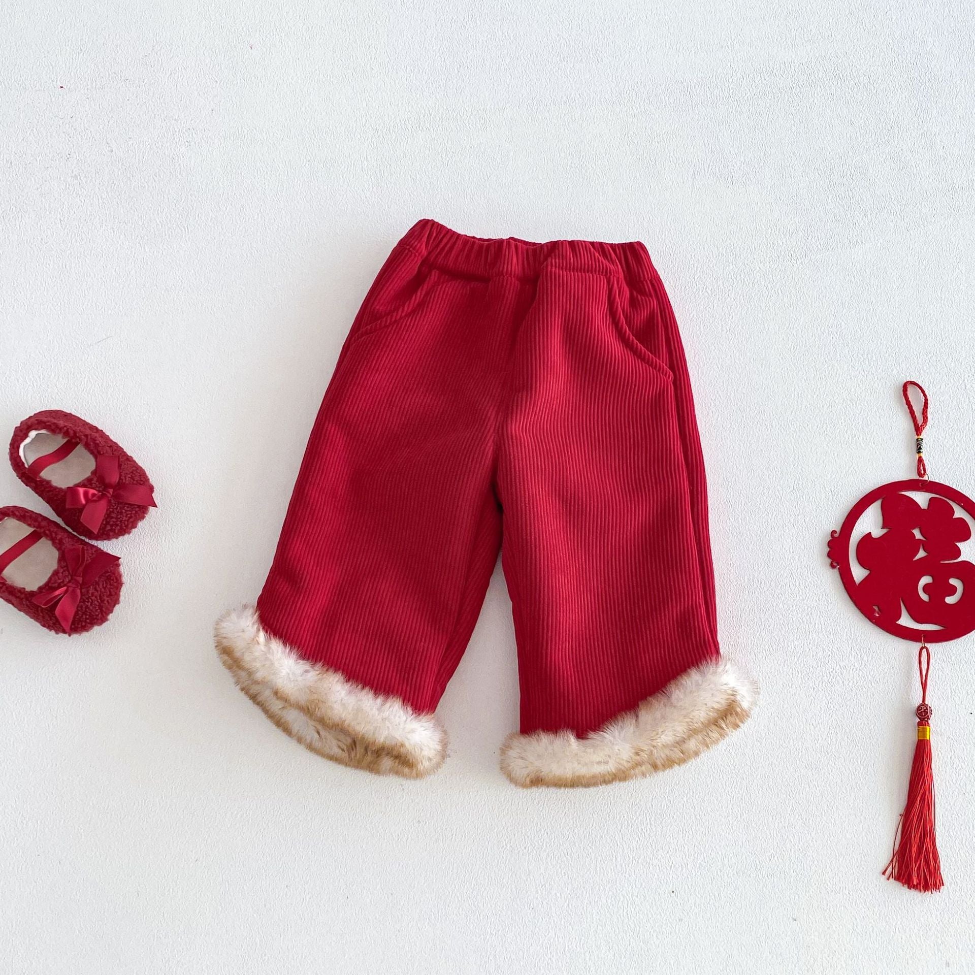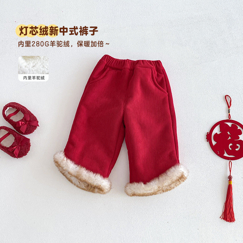ZDK5703PA-冬季復古拜年毛毛加絨休閒長褲