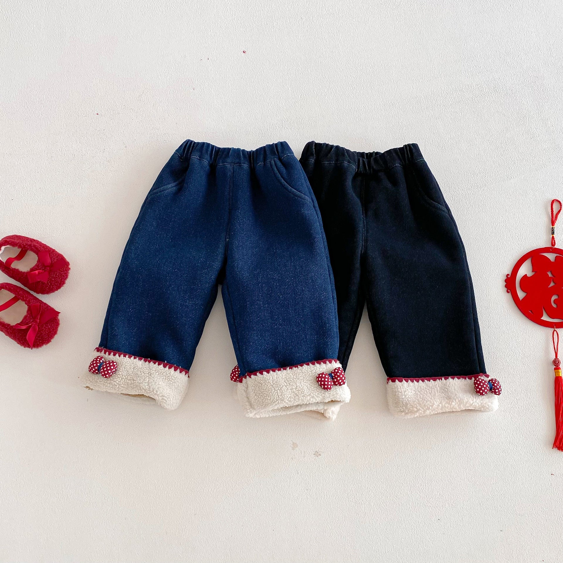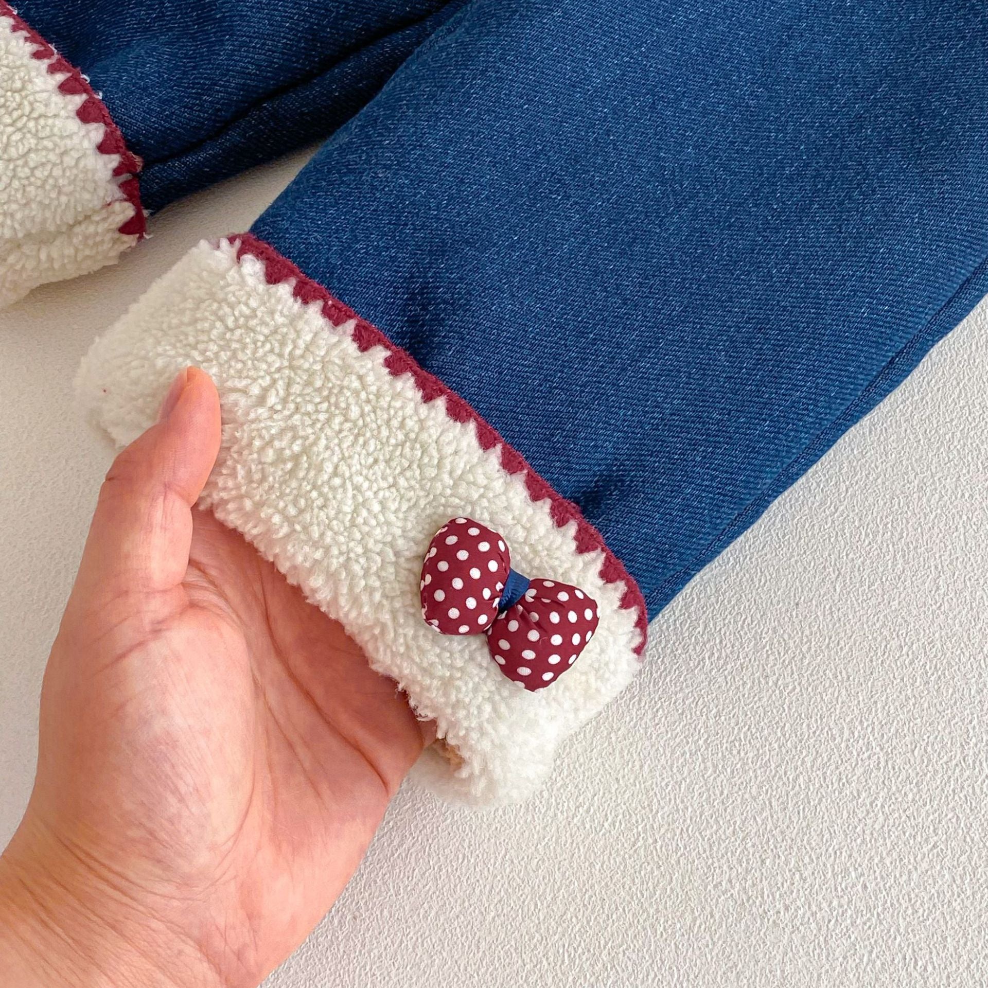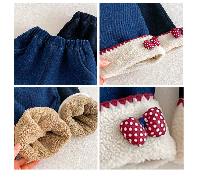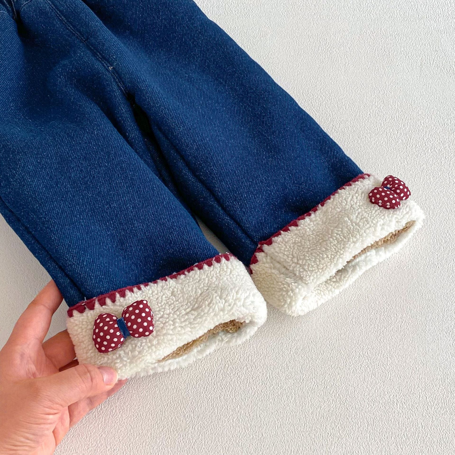 • 將圖片載入圖庫檢視器 ZDK5708PA-冬季超萌蝴蝶結加絨牛仔長褲