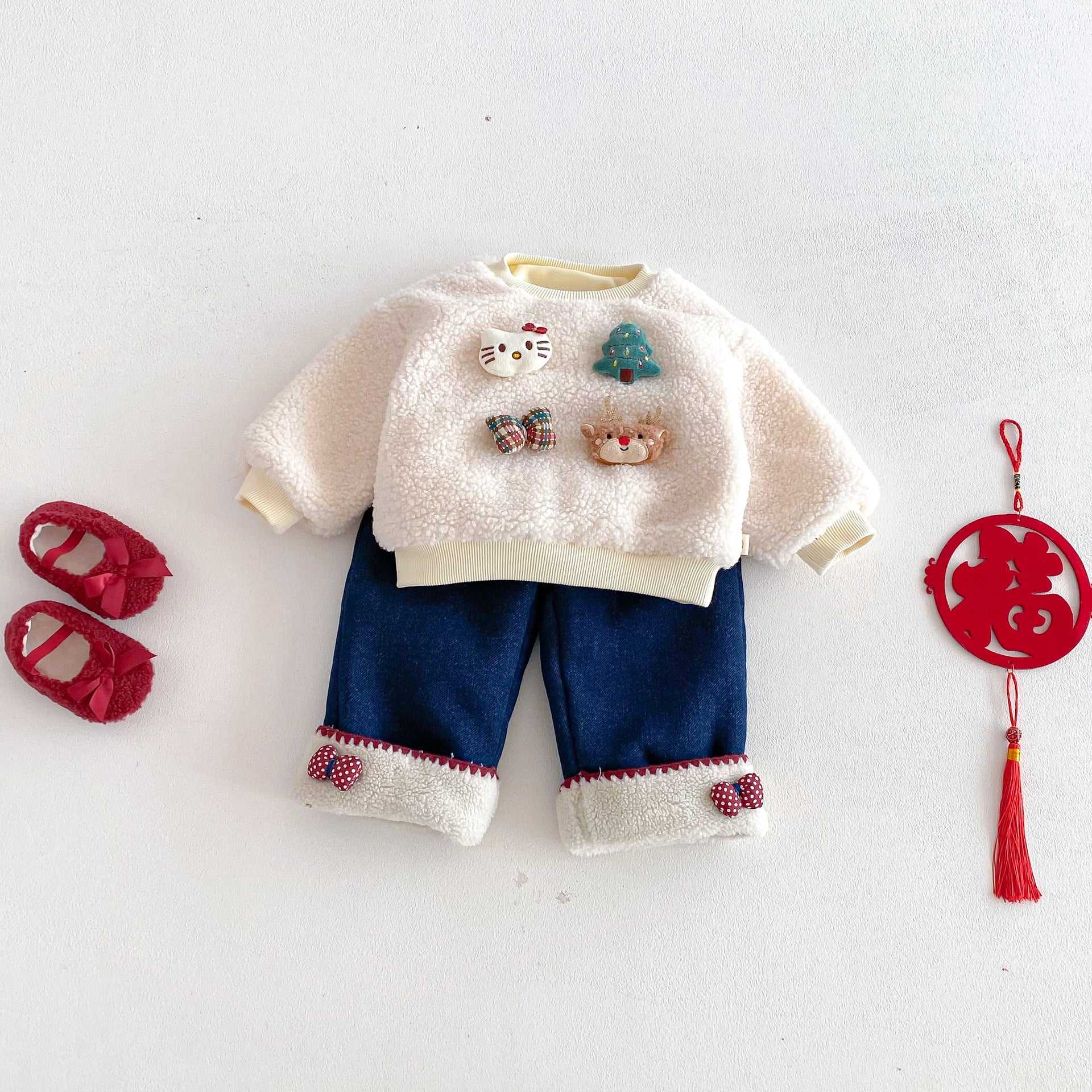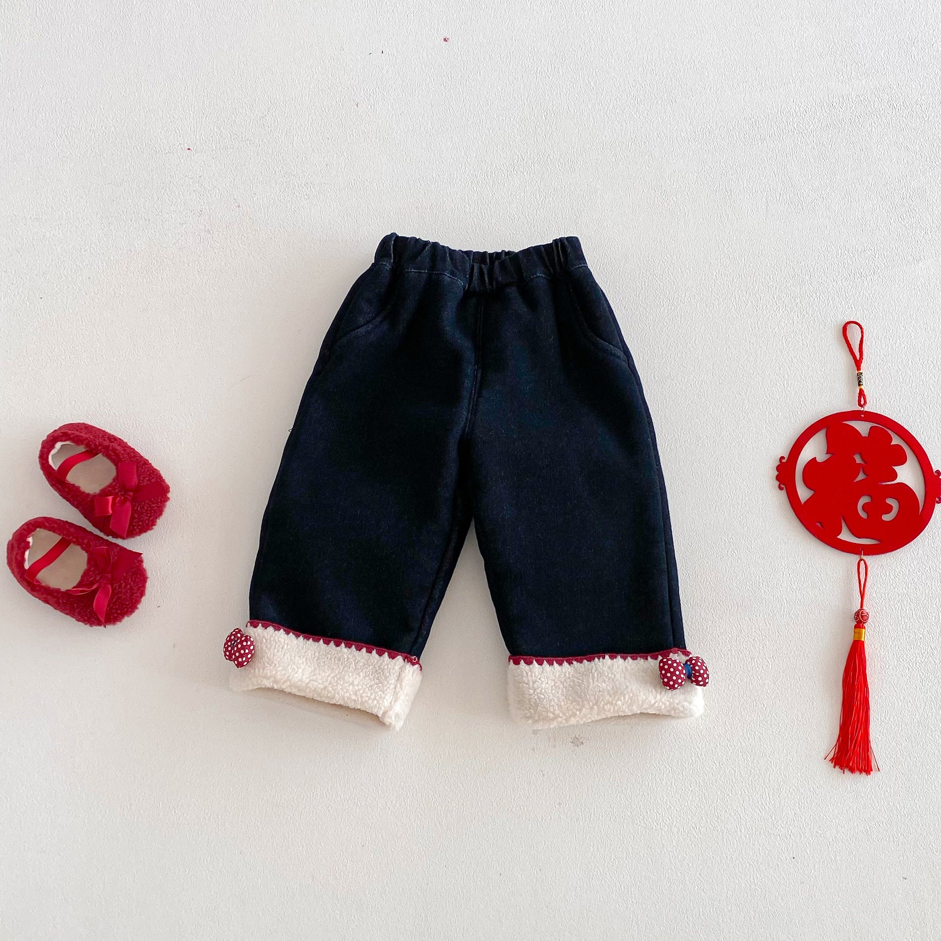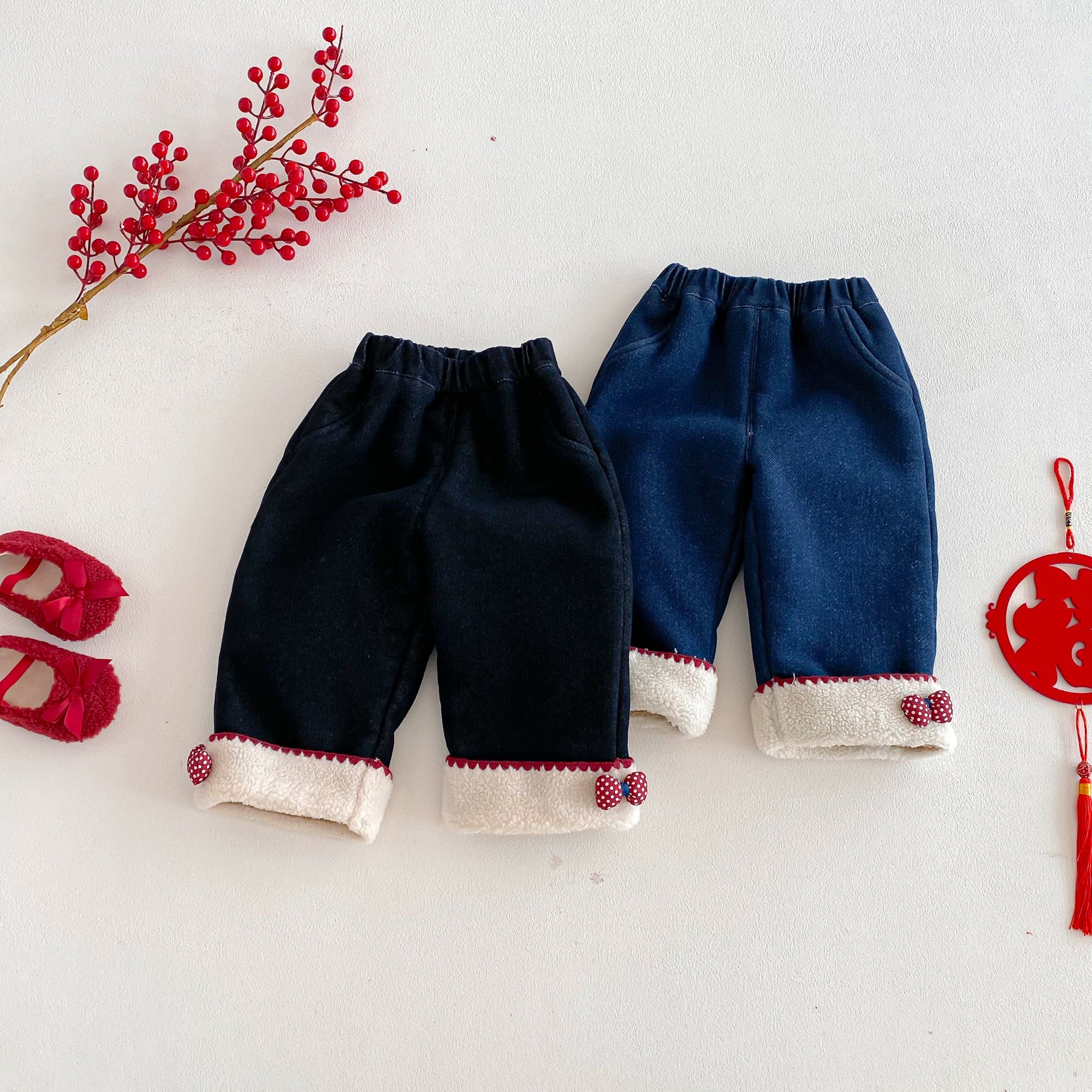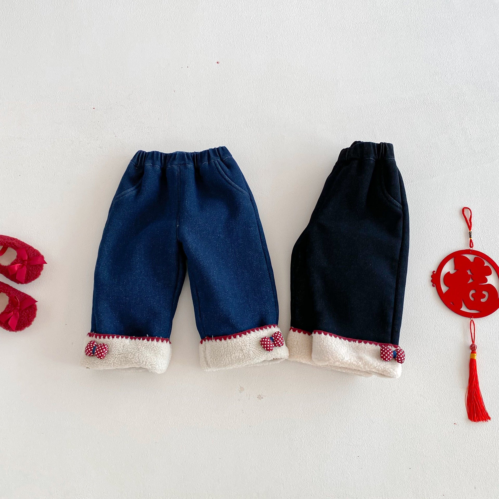 • 將圖片載入圖庫檢視器 ZDK5708PA-冬季超萌蝴蝶結加絨牛仔長褲