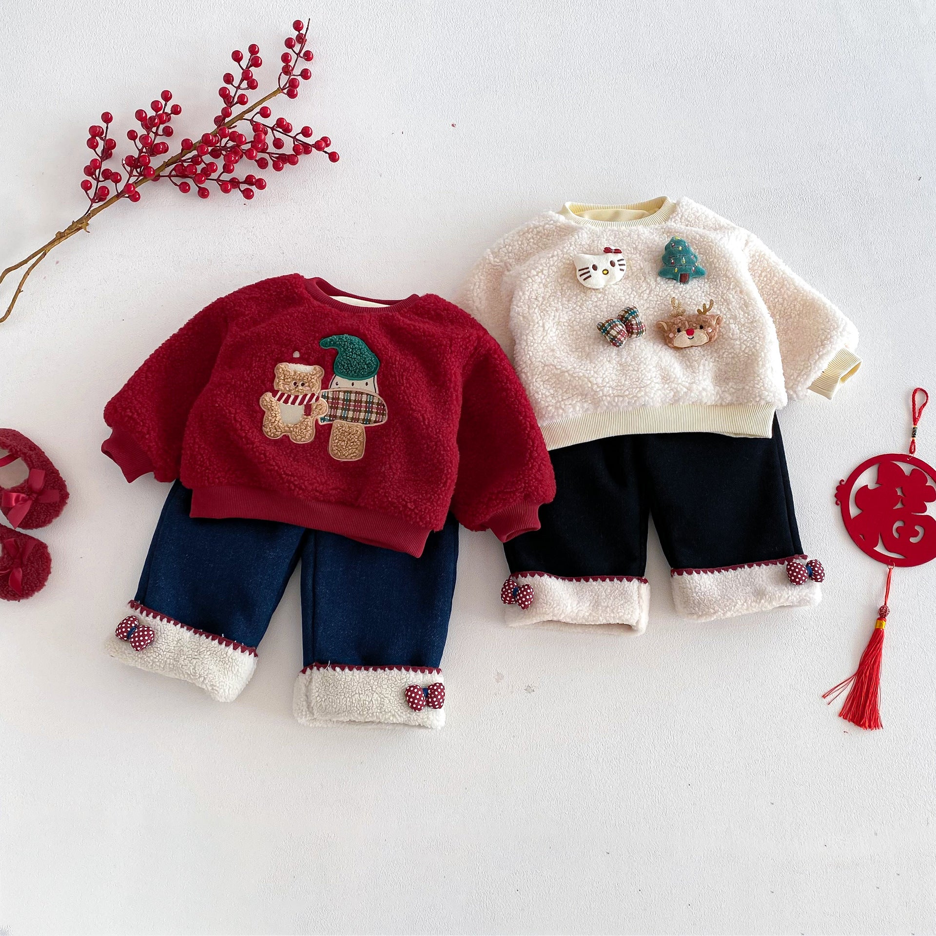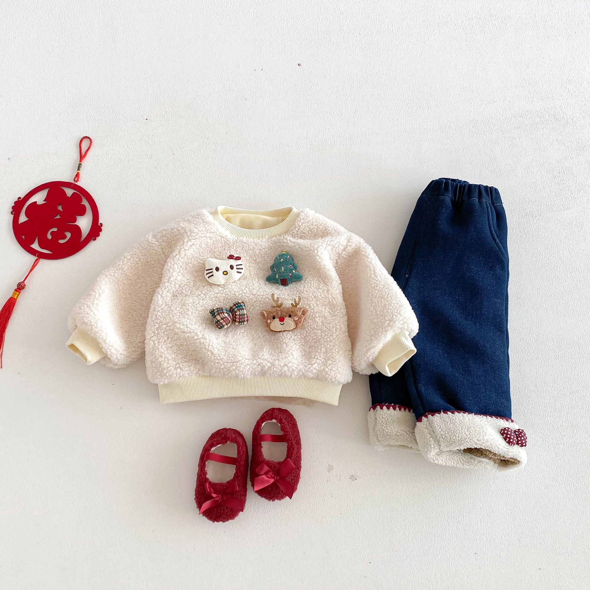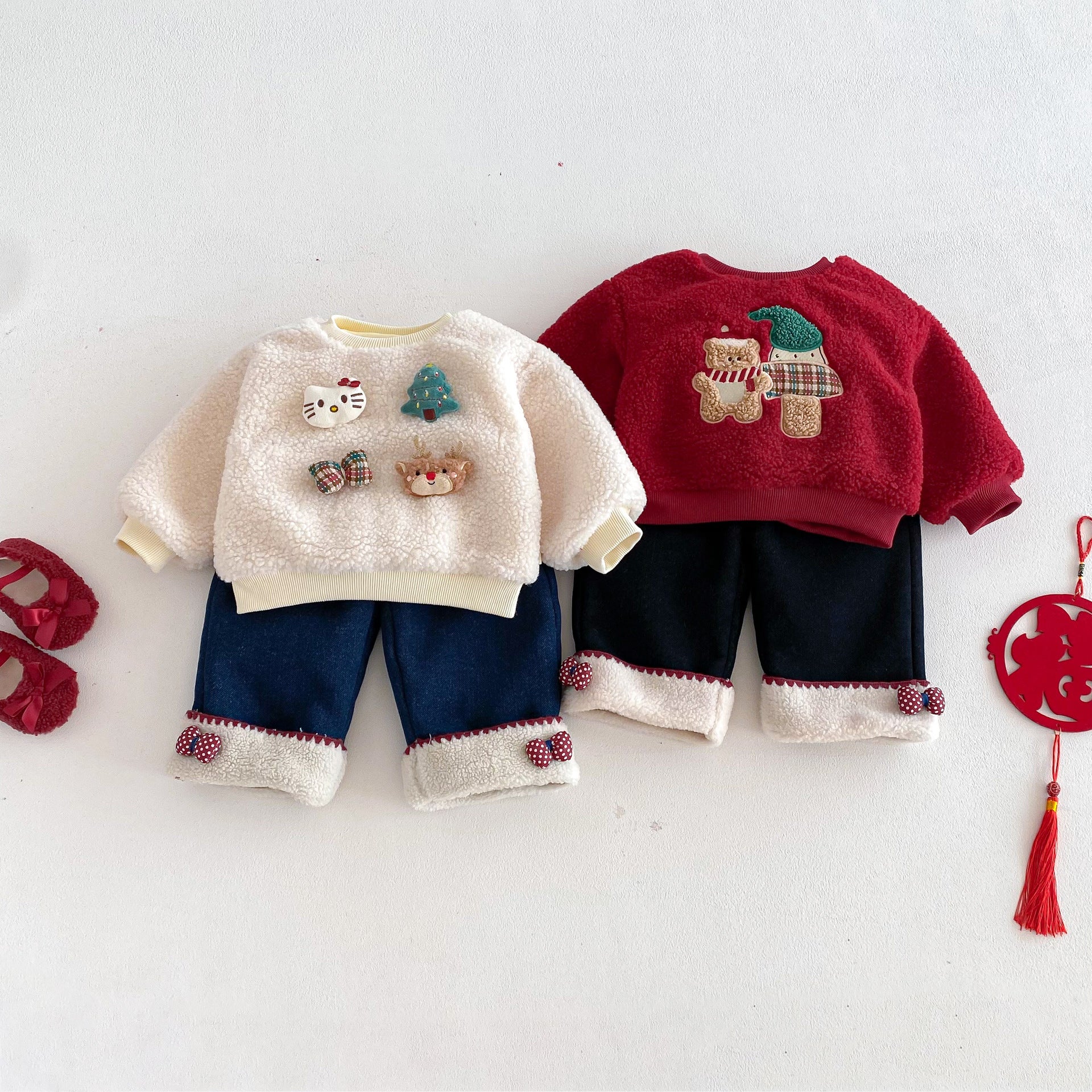 • 將圖片載入圖庫檢視器 ZDK5708PA-冬季超萌蝴蝶結加絨牛仔長褲
