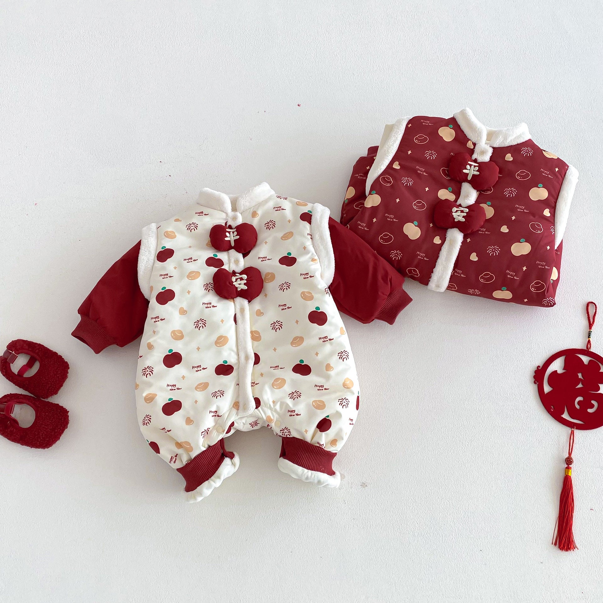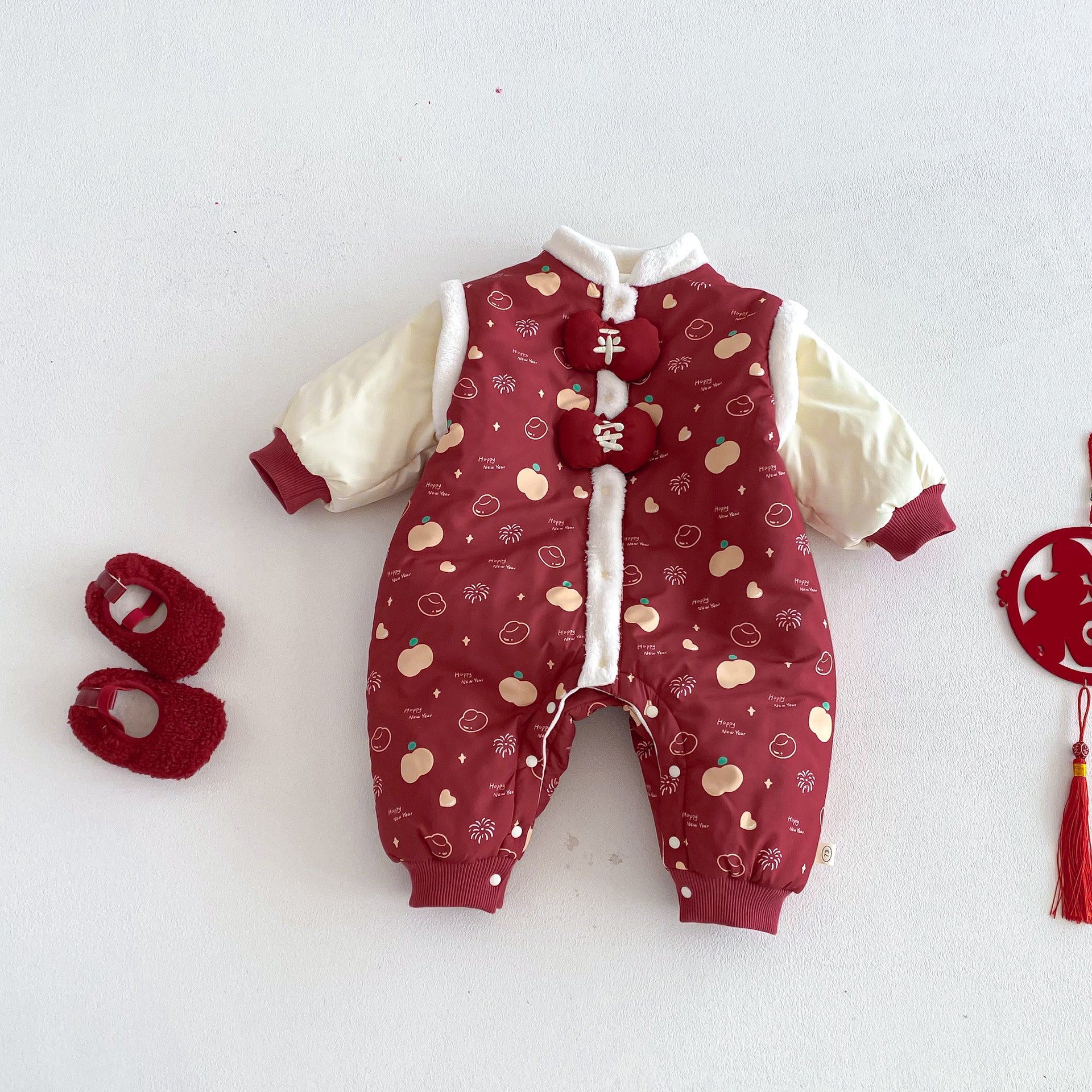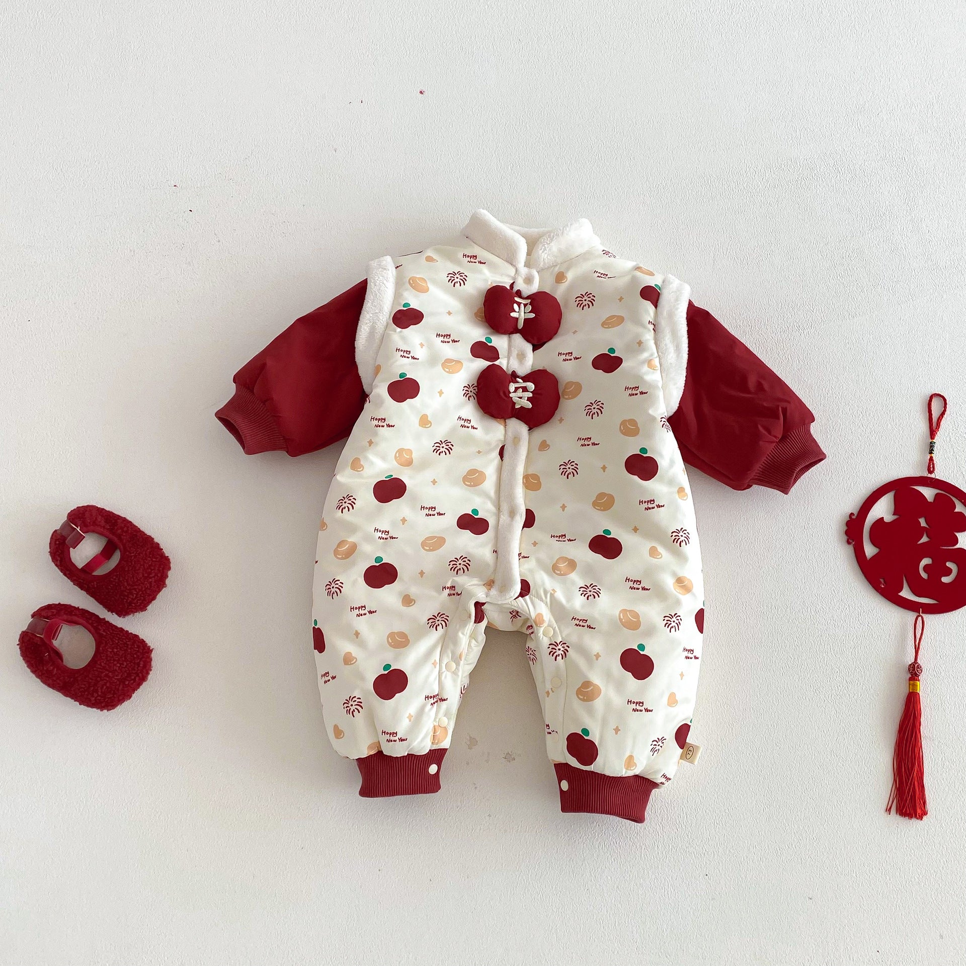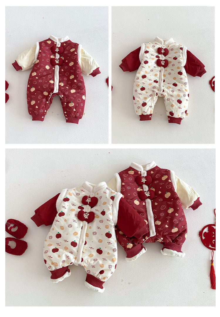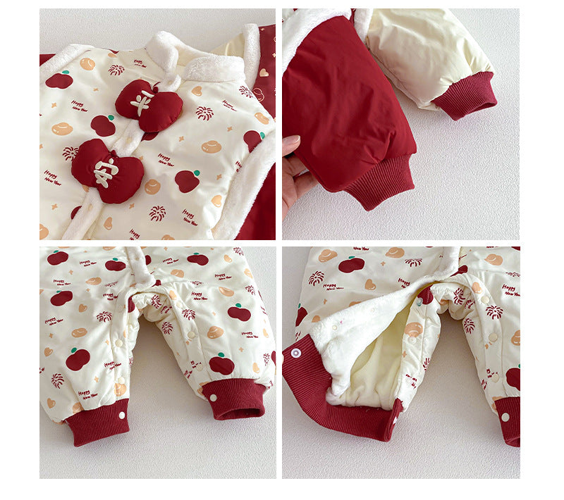 ZDL5682LS-冬季嬰幼兒喜慶中國風拼色加絨連體衣