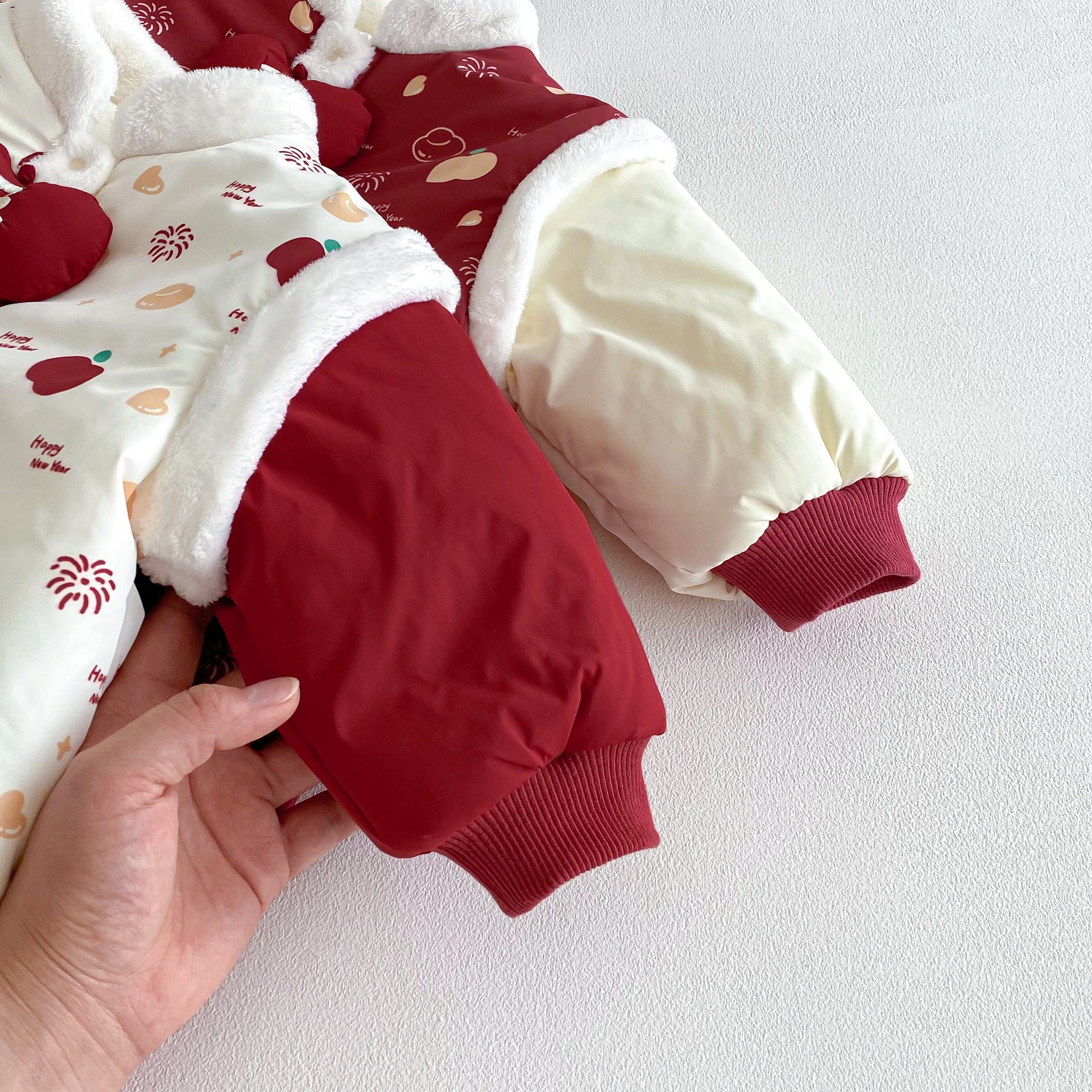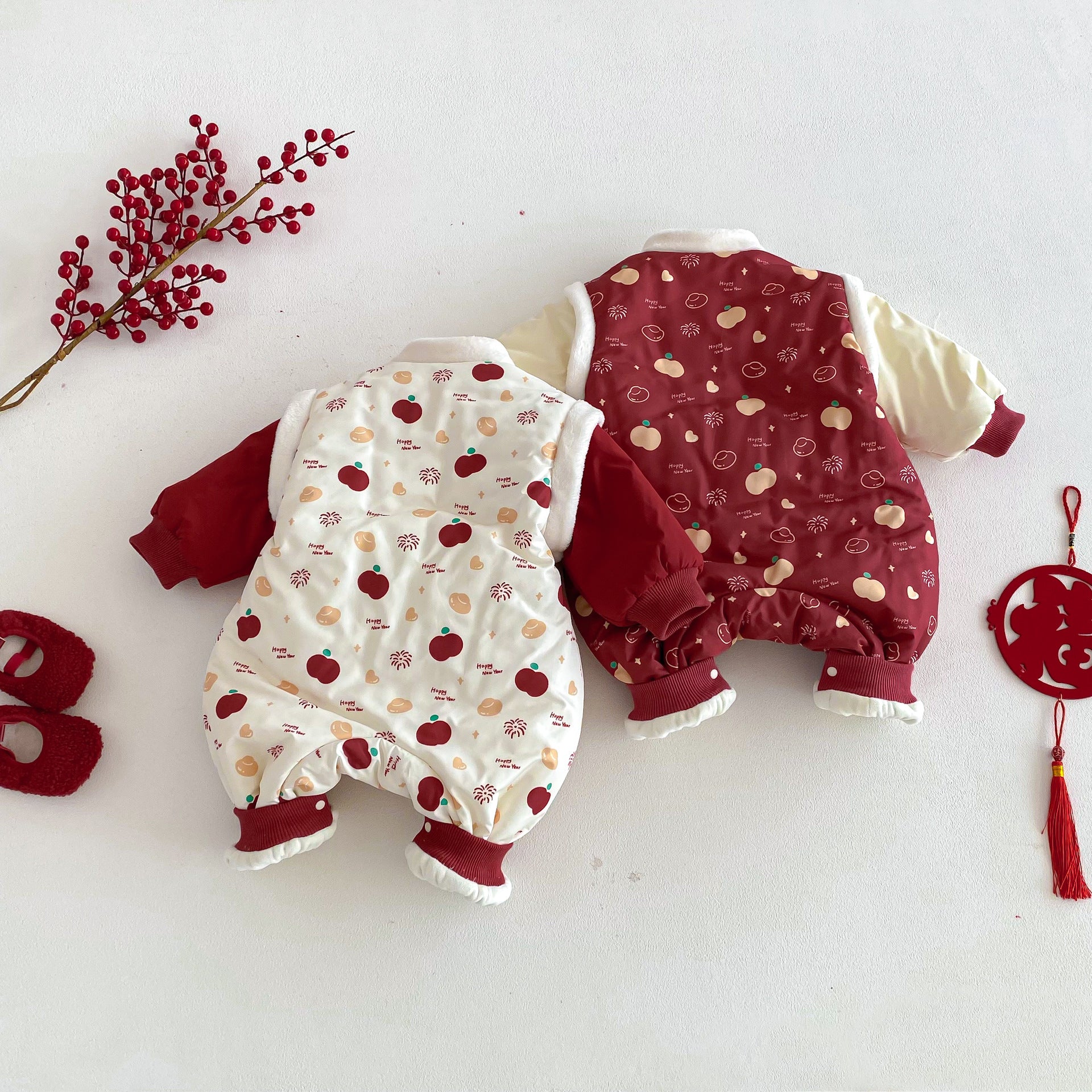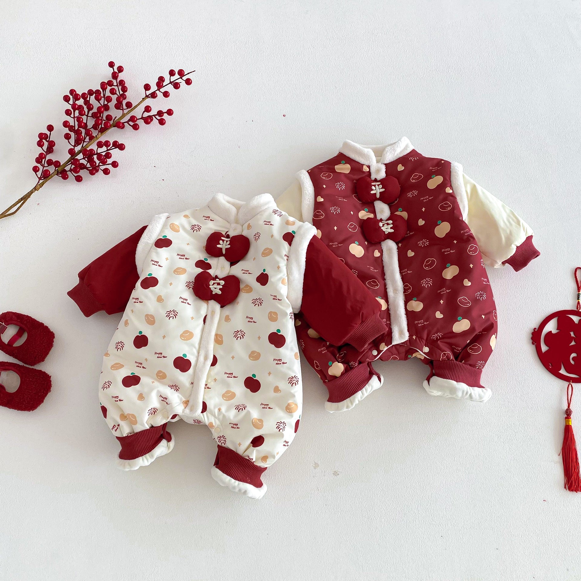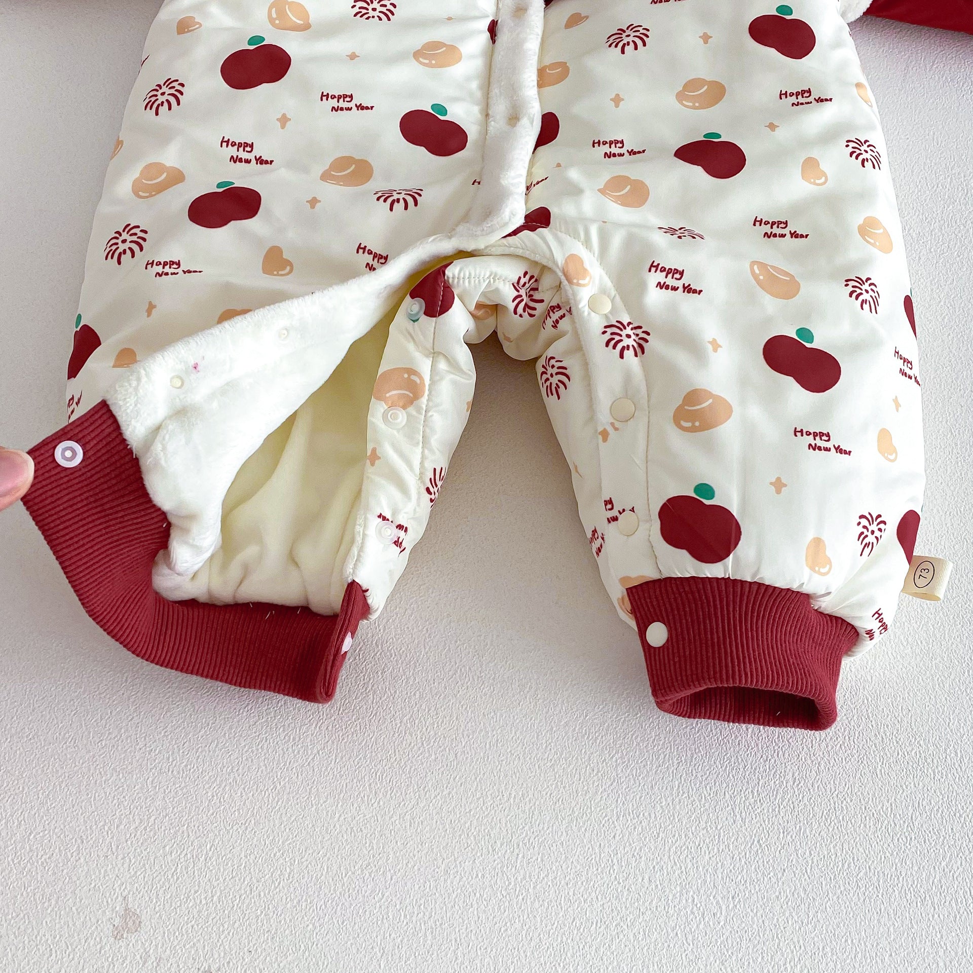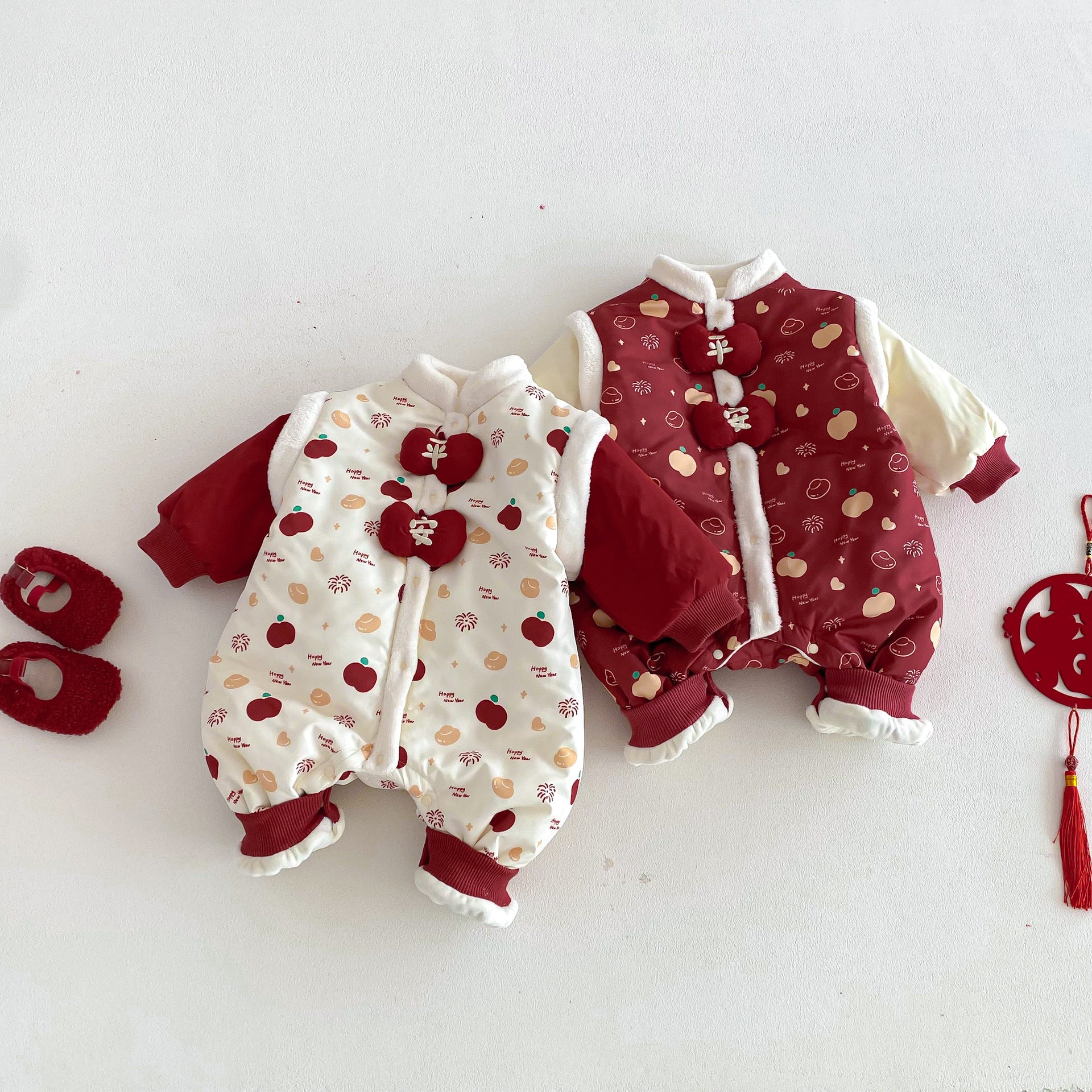 ZDL5682LS-冬季嬰幼兒喜慶中國風拼色加絨連體衣