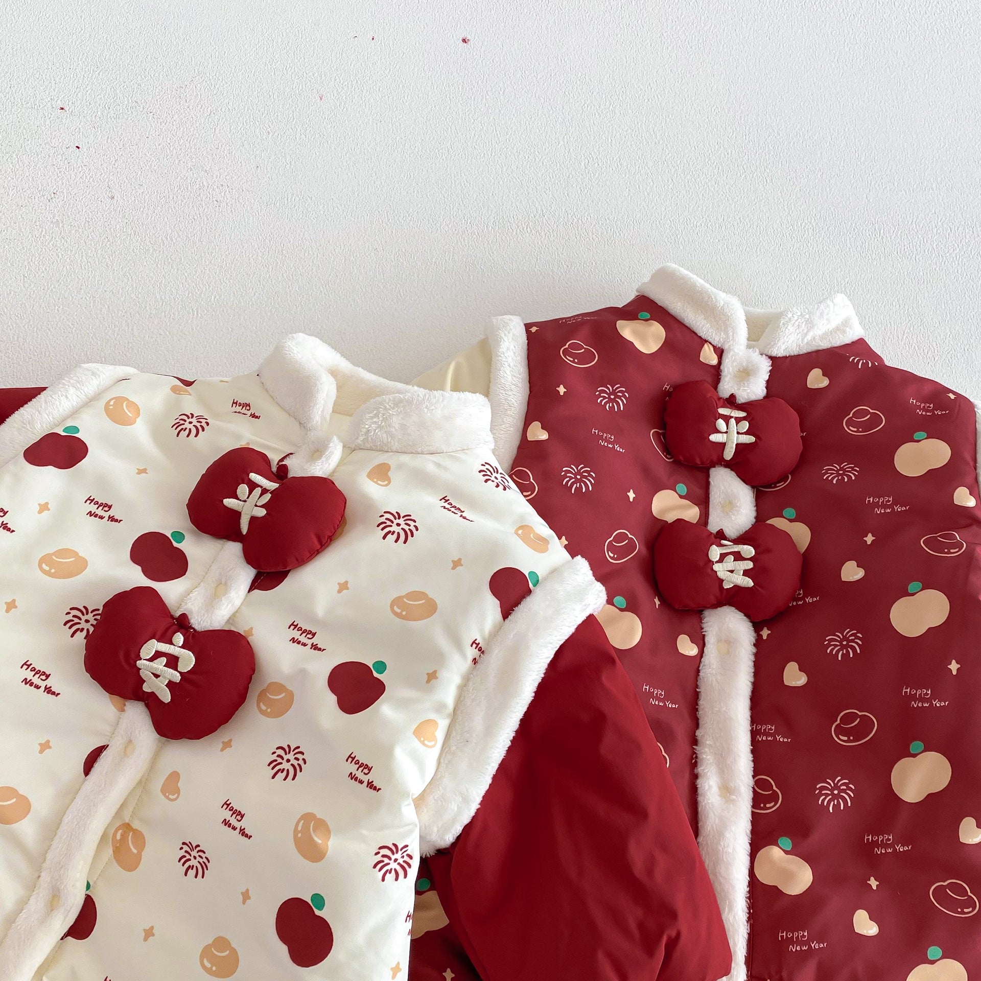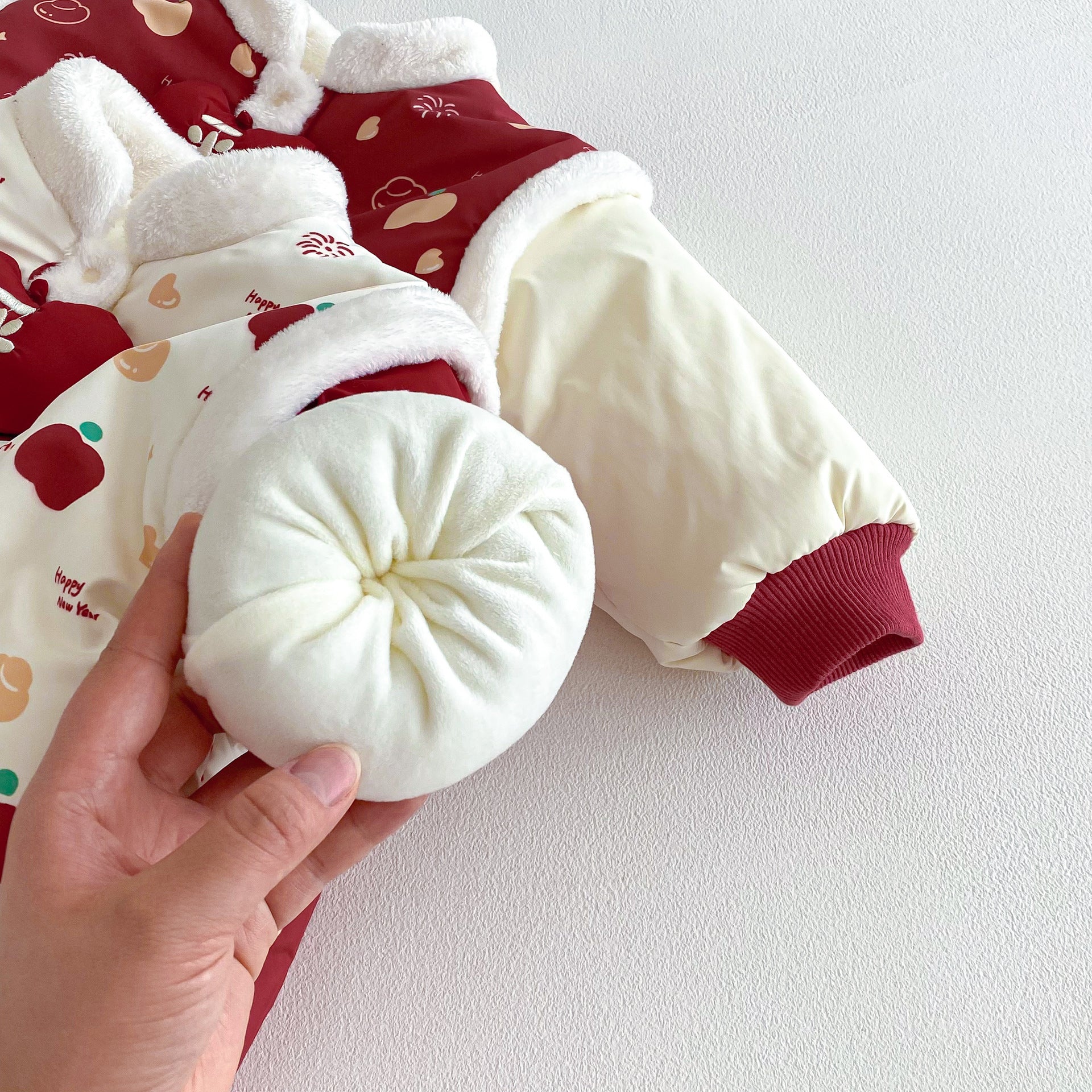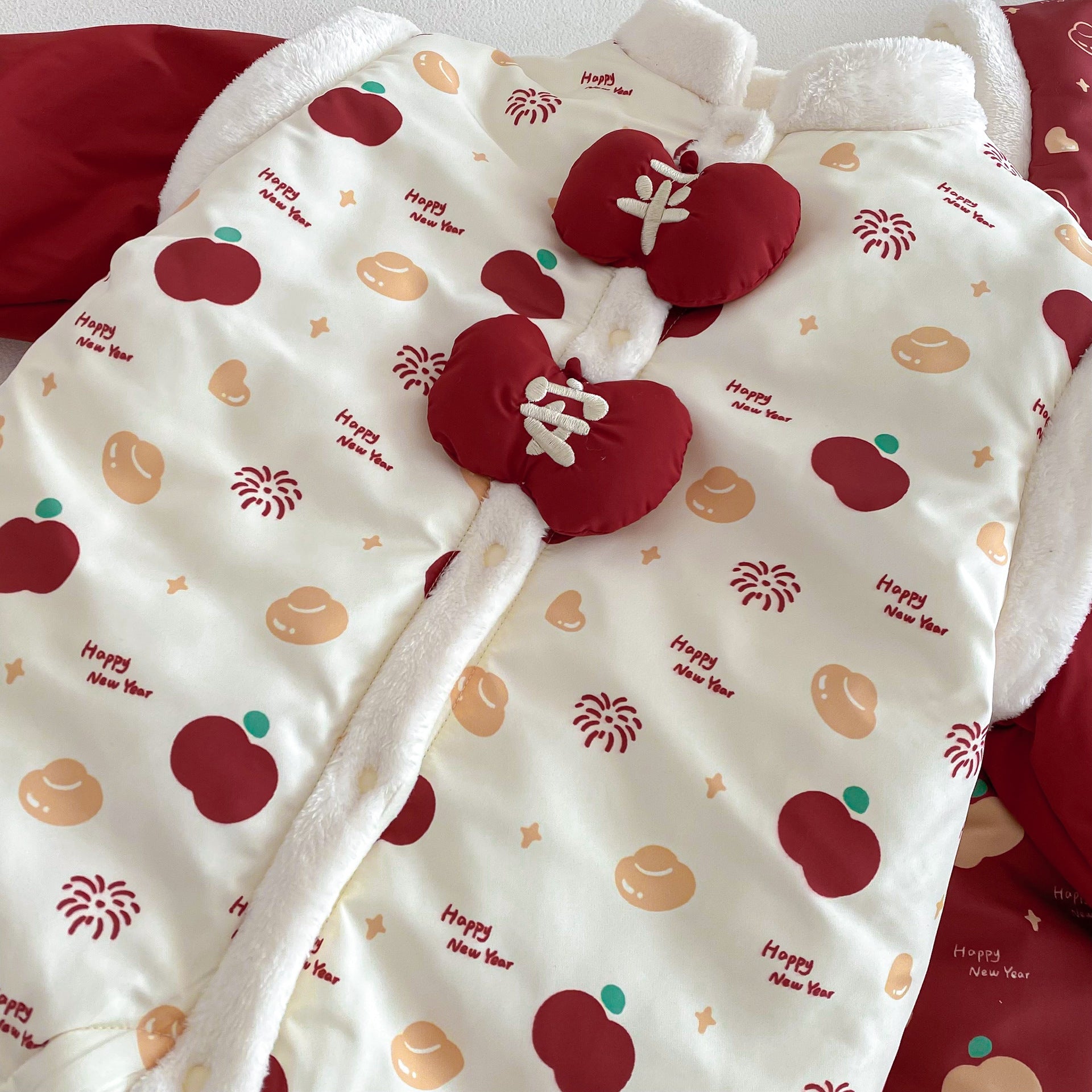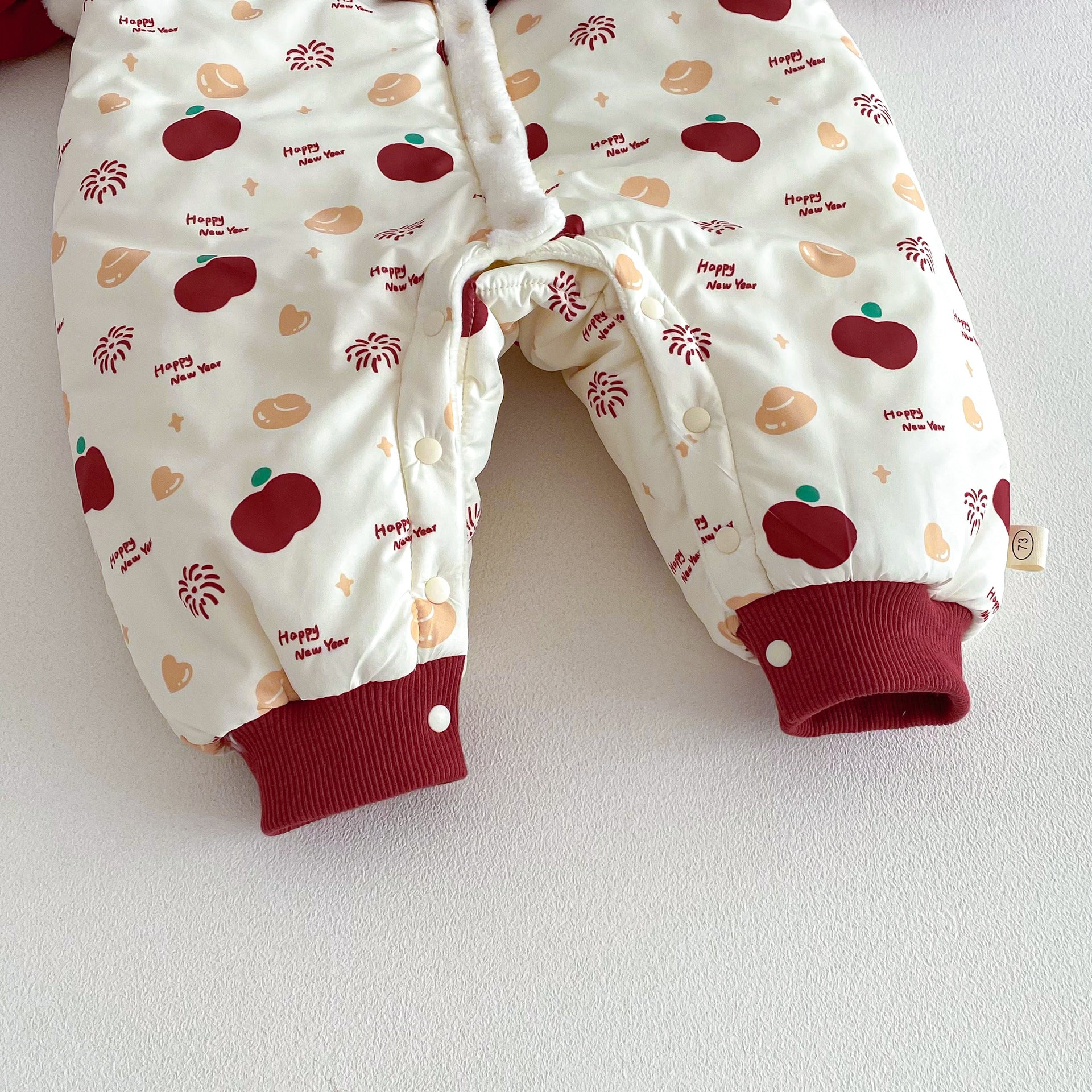 ZDL5682LS-冬季嬰幼兒喜慶中國風拼色加絨連體衣