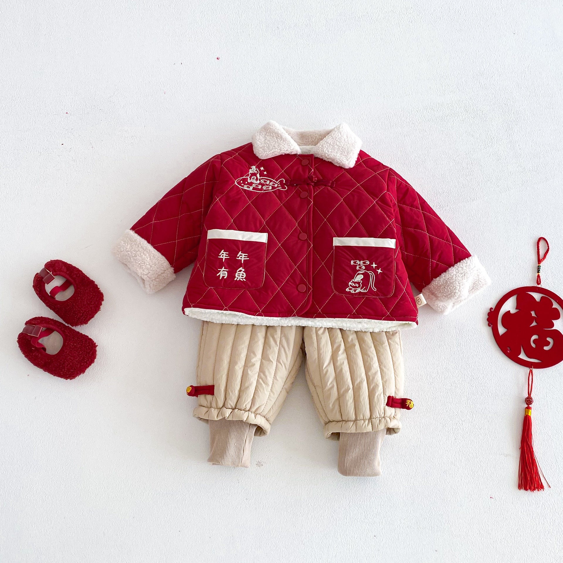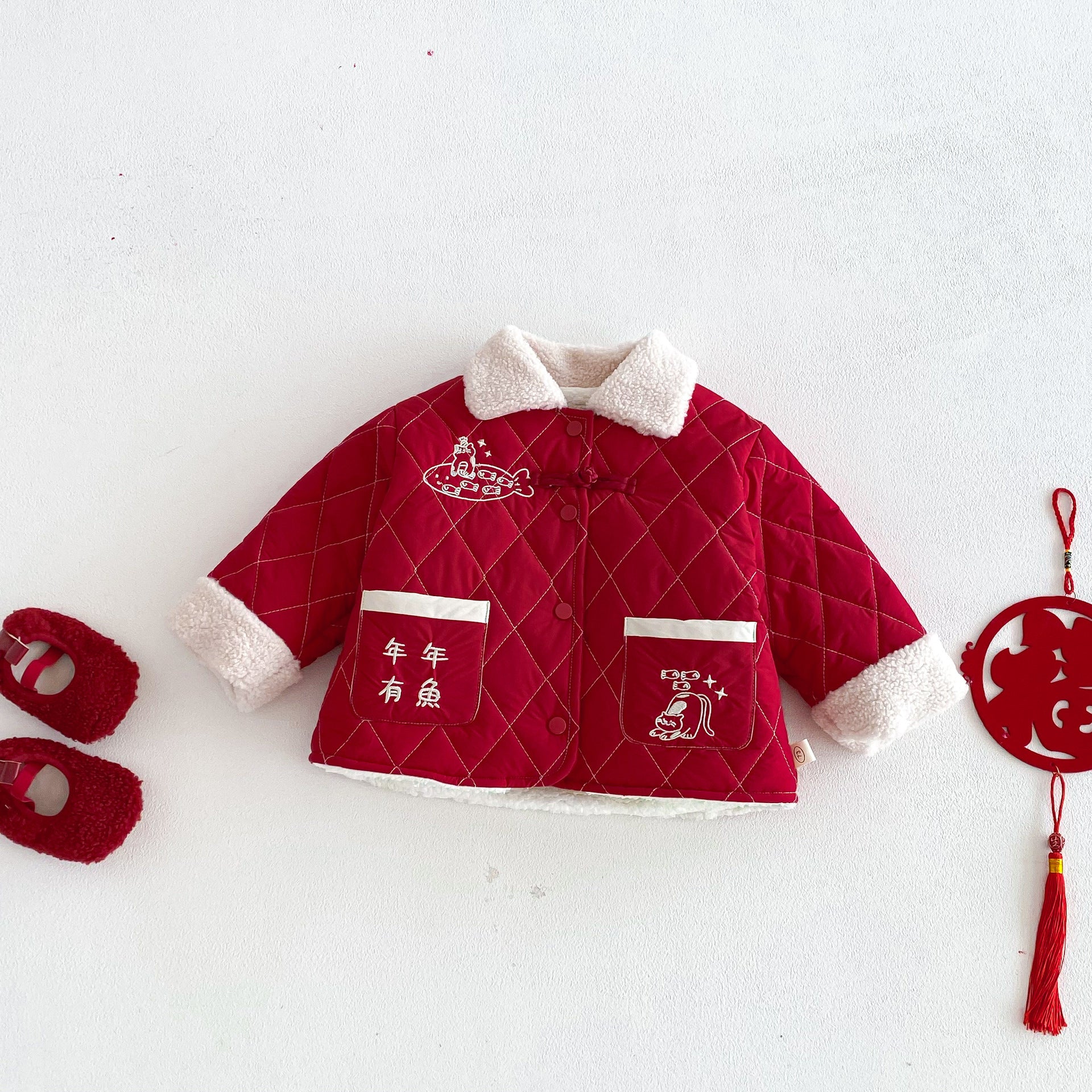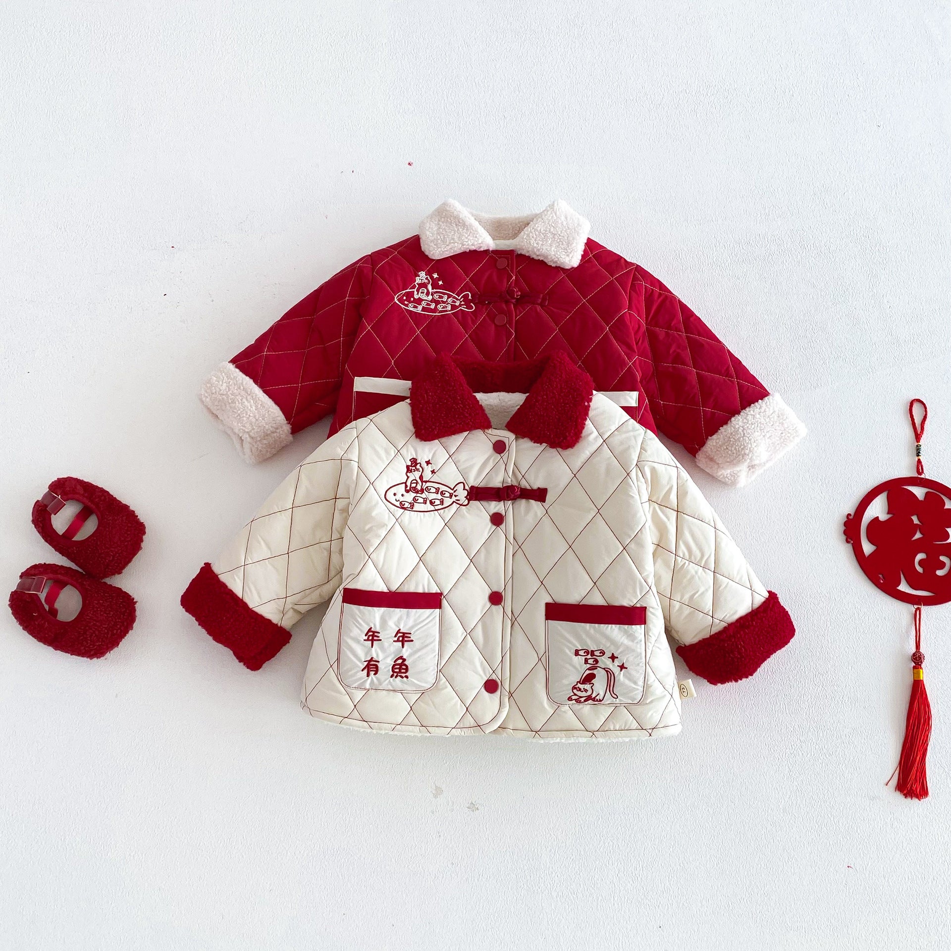 ZDW5663SE-冬季刺繡年年有魚加絨棉外套